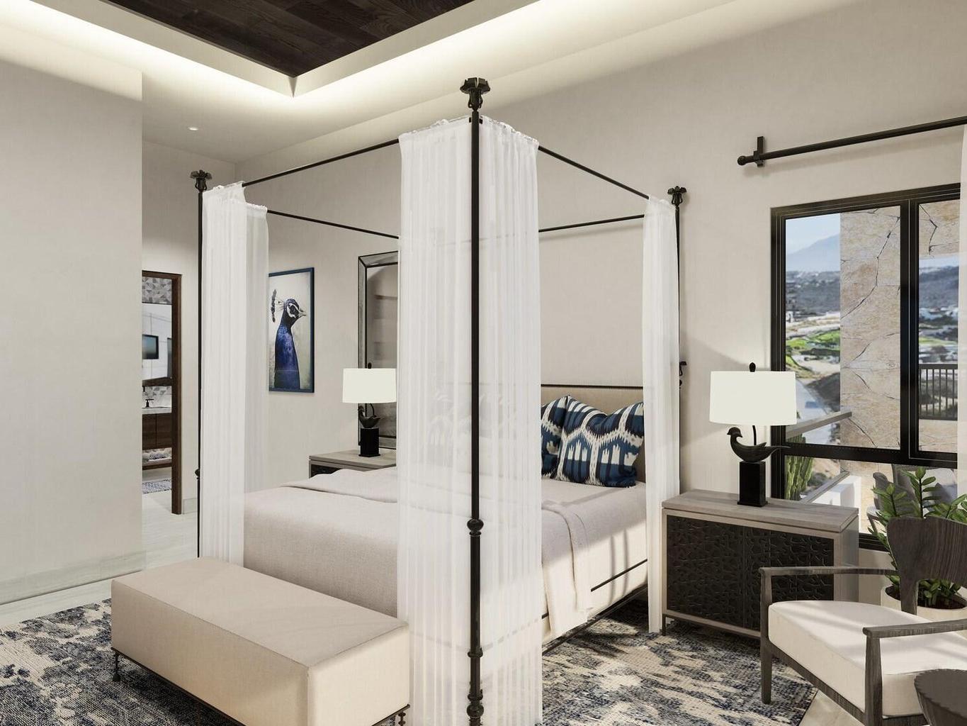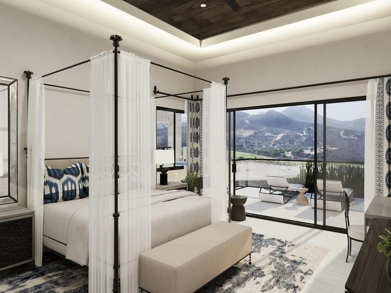 Alvar Residences at Quivira, Los Cabos, presents an exclusive opportunity to own a stunning 4-bedroom, 4.5-bath luxury condo, meticulously designed for discerning buyers. Nestled within a world-class destination, this residence offers breathtaking panoramic views of serene Pacific Ocean, city of Los Cabos, and the lush fairways of Quivira's renowned Jack Nicklaus golf course. Each spacious unit emphasizes privacy and security, ensuring a tranquil retreat from the bustling world outside. Owners are invited to personalize their space from a selection of high-end finishes, adding a touch of personal flair to the sophisticated ambiance. The inclusion of covered parking and storage adds a layer of convenience and exclusivity. Beyond the comfort of their homes, residents enjoy access
