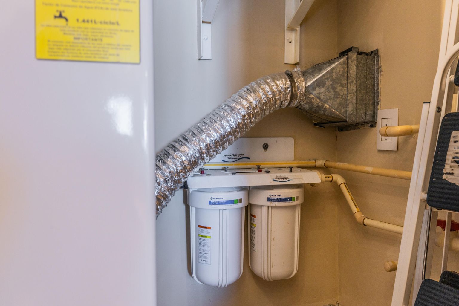 The master suite provides a tranquil retreat with ocean views, while the versatile guest bedroom can accommodate a single bed or two twins for family or friends. A fully equipped kitchen, in-unit washer/dryer, and a water filtration system add to the home's convenience and comfort.