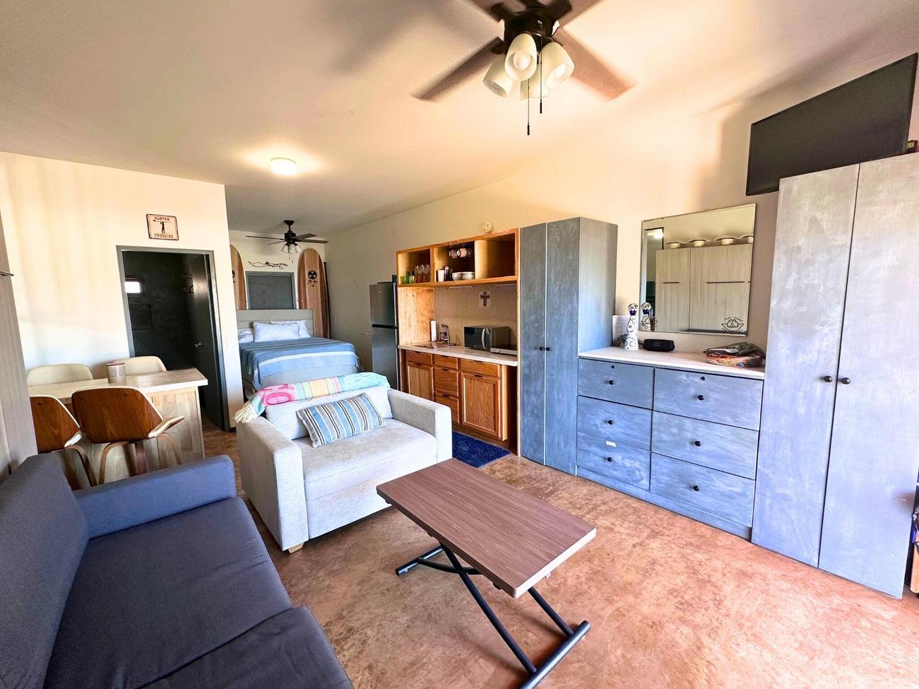 Fully updated and fully furnished studio in the desirable Desert Moon complex at Cerritos Beach. Unit 7A is a ground-floor condo just steps from the sand, offering easy access to swimming, surfing, and year-round beachfront living. Inside, enjoy a bright, open layout with ocean views and turnkey convenience. The Desert Moon community features premium amenities, including a rooftop lounge pool, on-site bar, restaurant, and spacious rooftop patio—perfect for whale watching and sunset gazing. Whether you're seeking a vacation home, rental investment, or both, this unit offers the best value in town and strong rental potential. Don't miss this rare opportunity to own in one of Baja's most popular beachfront communities. Beach front living doesn't get better than this deal!