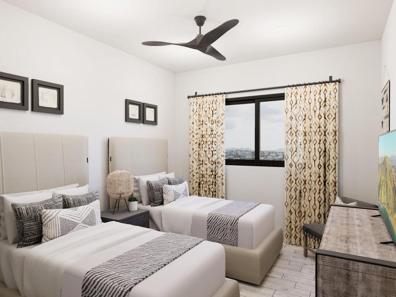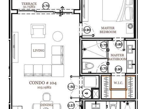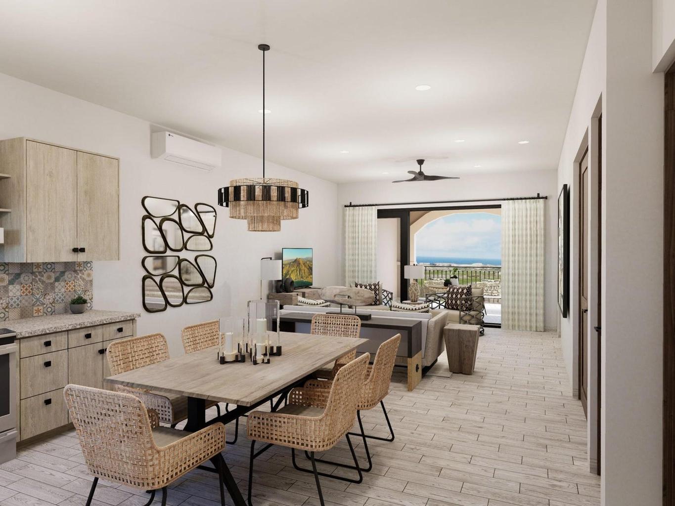 This is a top floor 2 bedroom unit with 2 baths. Each bedroom has a large window or sliding door to allow lots of light in. There is an openable window above the kitchen sink. Ceiling in living area is vaulted and gives a feel of luxury. L shape terrace is deep on living room side and can accommodate a table for 8 or even 10. All preparations ready for outdoor grilling kitchen or can be installed as an upgrade. Stylish cabinetry and contemporary flooring and paint scheme. Choice of two backsplashes and two countertops in kitchen. Comes with stainless appliances and washer and dryer. Inverter mini-split AC's ensure hassle free efficient cooling. Attractive hand fabricated steel railings on terrace from the view of 6 Nicklaus Signature fairways.