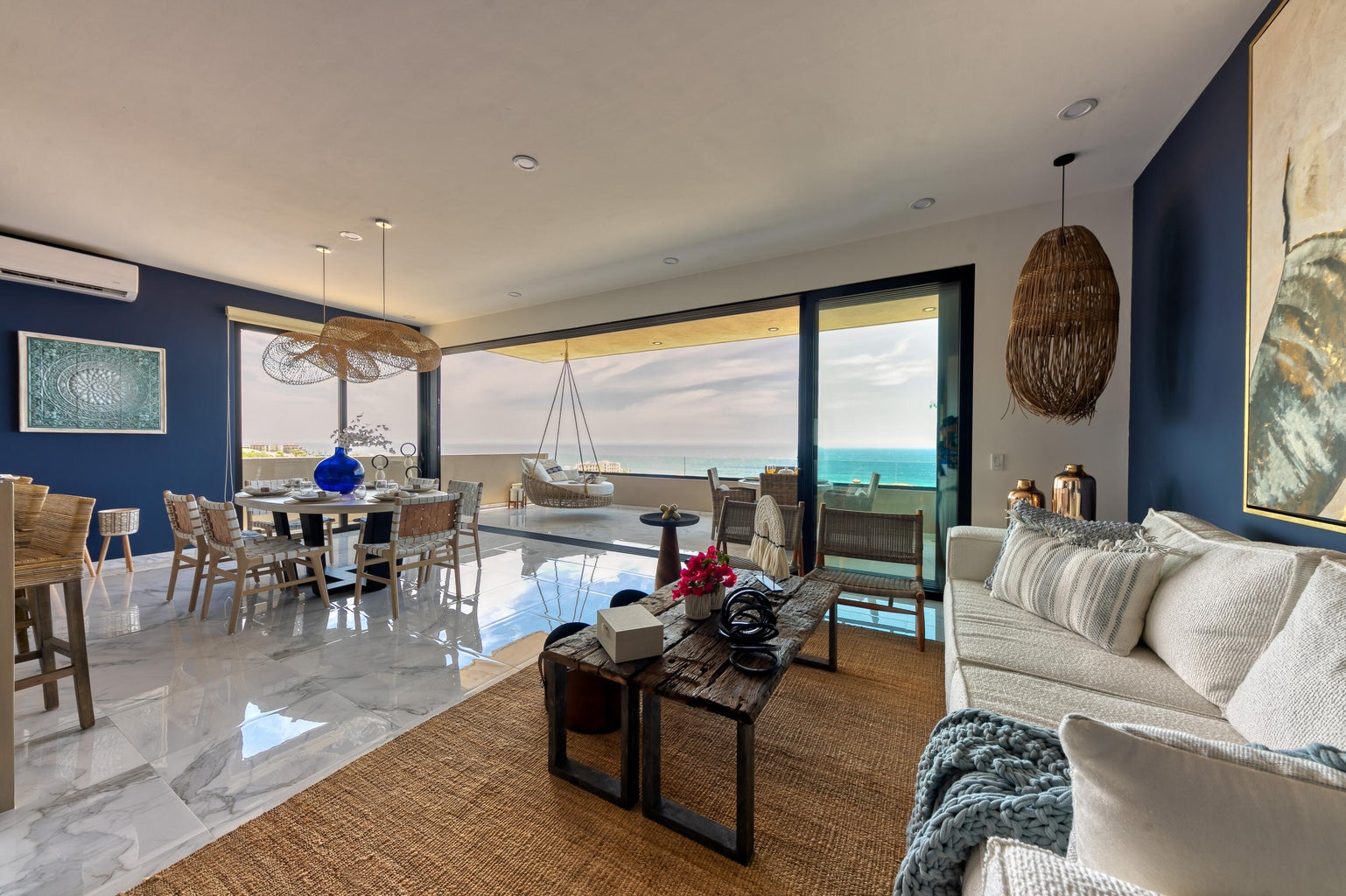 Discover coastal elegance in turnkey 3-bedroom, 2.5-bath condo in Pacific Bay 2B Los Cabos. Nestled in an exclusive low-density tower of just 7 residences, this home offers unobstructed ocean and sunset views, all within walking distance to a pristine and secluded beach. High ceilings and expansive windows bathe the interior in natural light, while the spacious balcony invites outdoor entertaining with BBQ Grill and stunning vistas. Enjoy the convenience of an underground garage with 2 assigned parking spaces, proximity to fine dining, and a short drive to downtown Cabo San Lucas and the marina. Ideal for short or long-term rentals, this property combines luxury living with exceptional investment potential.