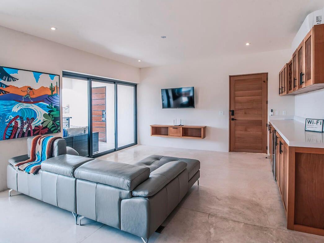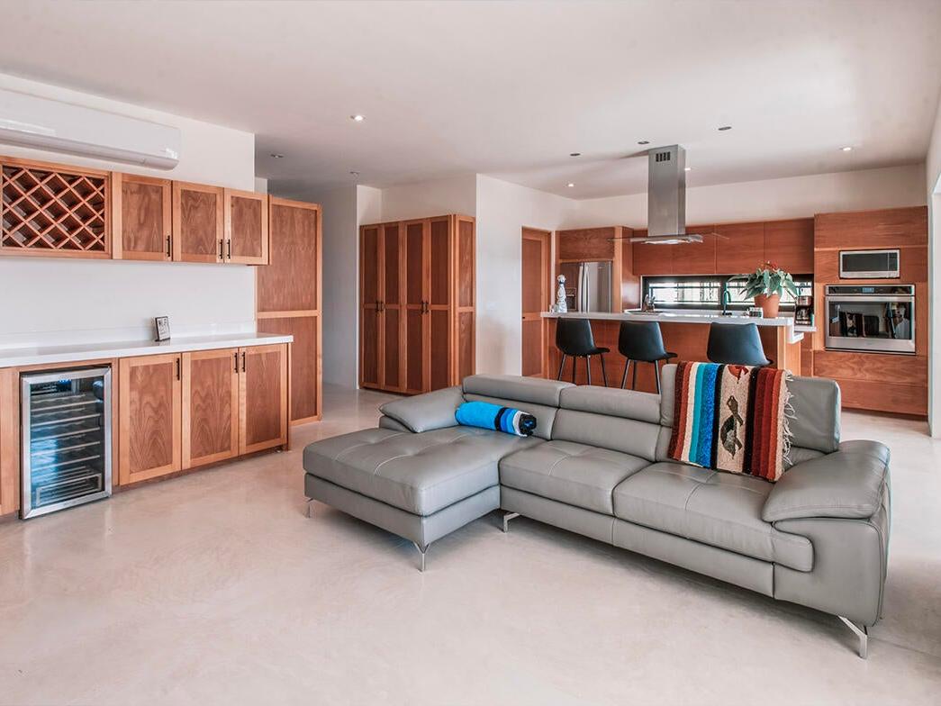 The open-plan interior flows seamlessly onto a large, private covered terrace—perfect for enjoying the stunning views of the Pacific Ocean. Featuring a relaxed coastal décor and inviting atmosphere, this property offers everything you need for a peaceful retreat or an unforgettable beachside getaway.