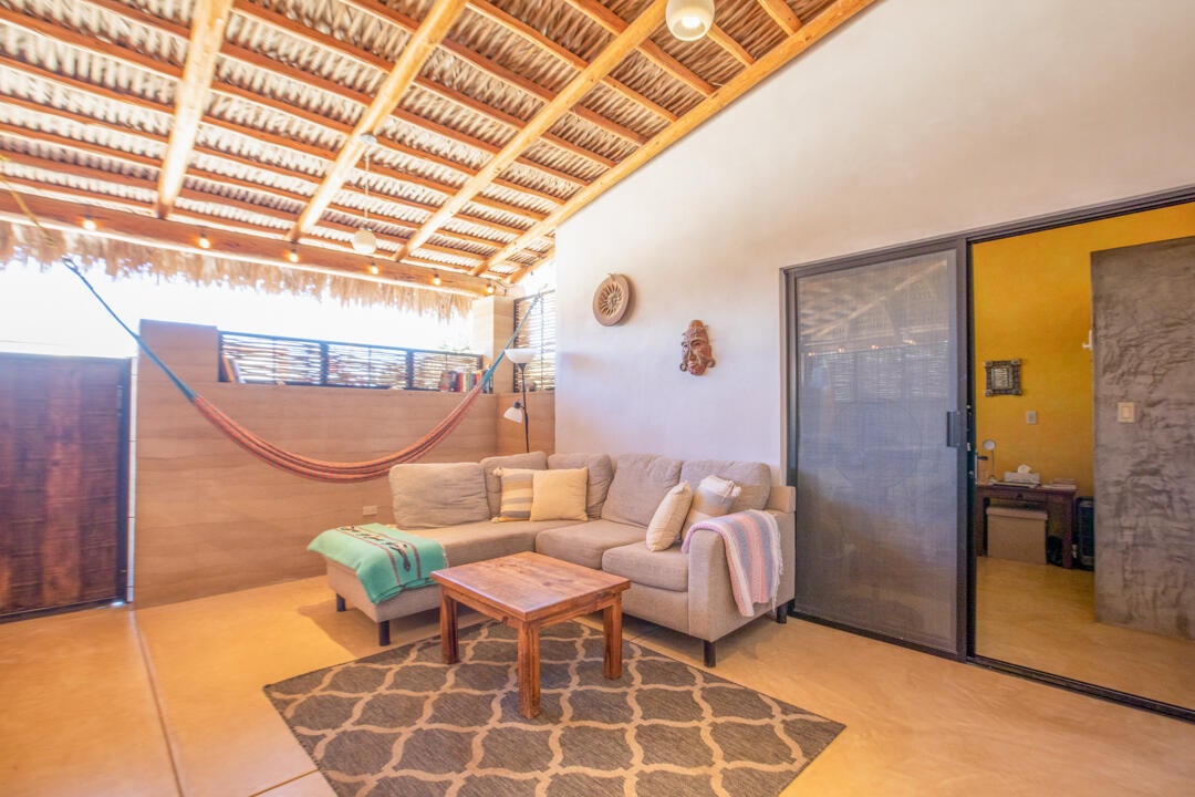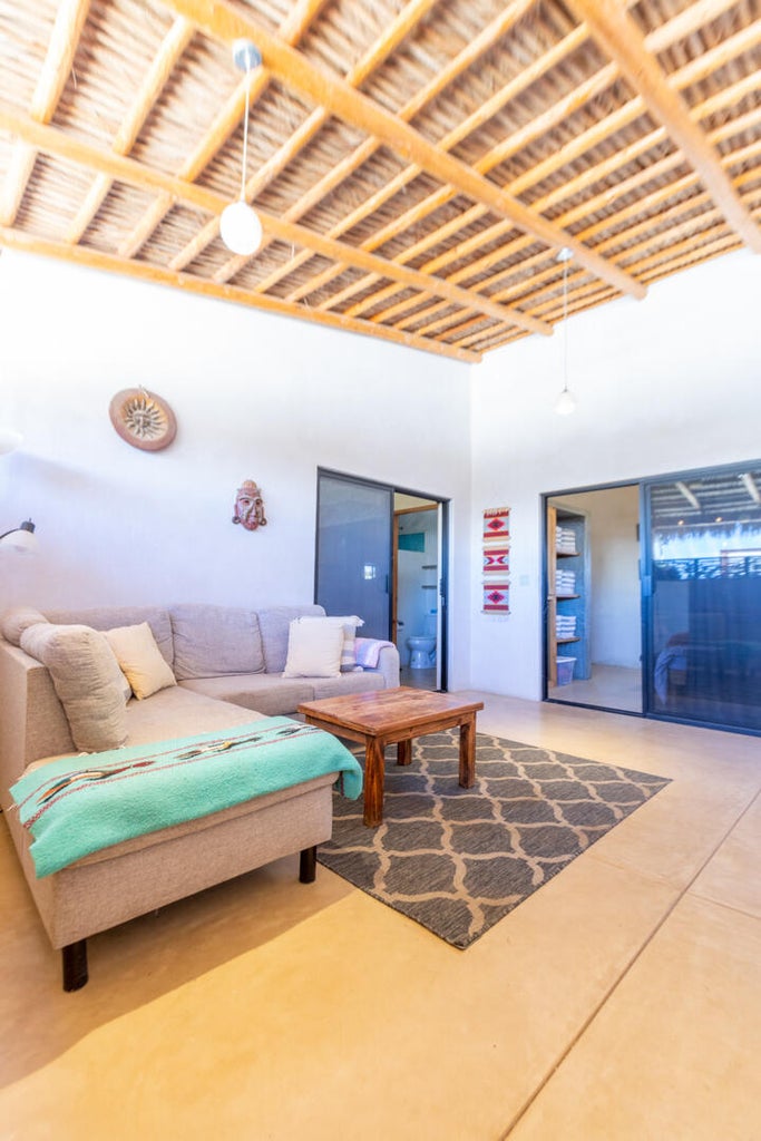 Discover Casa Tierra y Cielo (Casita 61), a beautifully crafted 2-bedroom, 2-bathroom home located in the sought-after community of Villas de Cerritos Beach. Just minutes from the pristine shores and world-class surf of Cerritos Beach, this inviting residence offers 947.11 sq. ft. of thoughtfully designed living space, seamlessly blending comfort, style, and functionality.