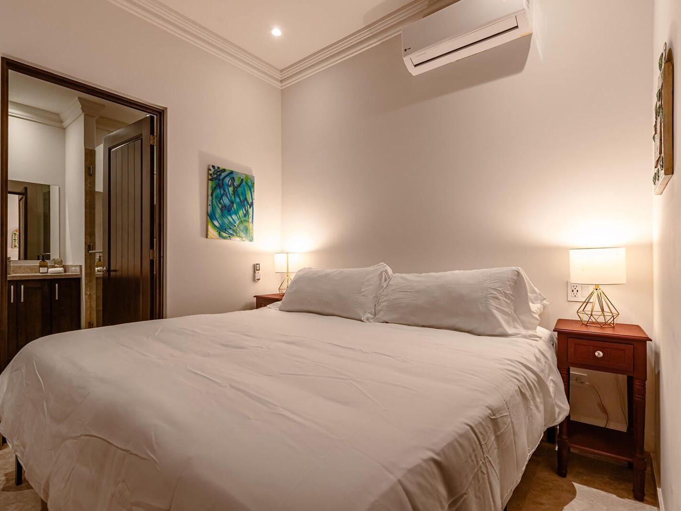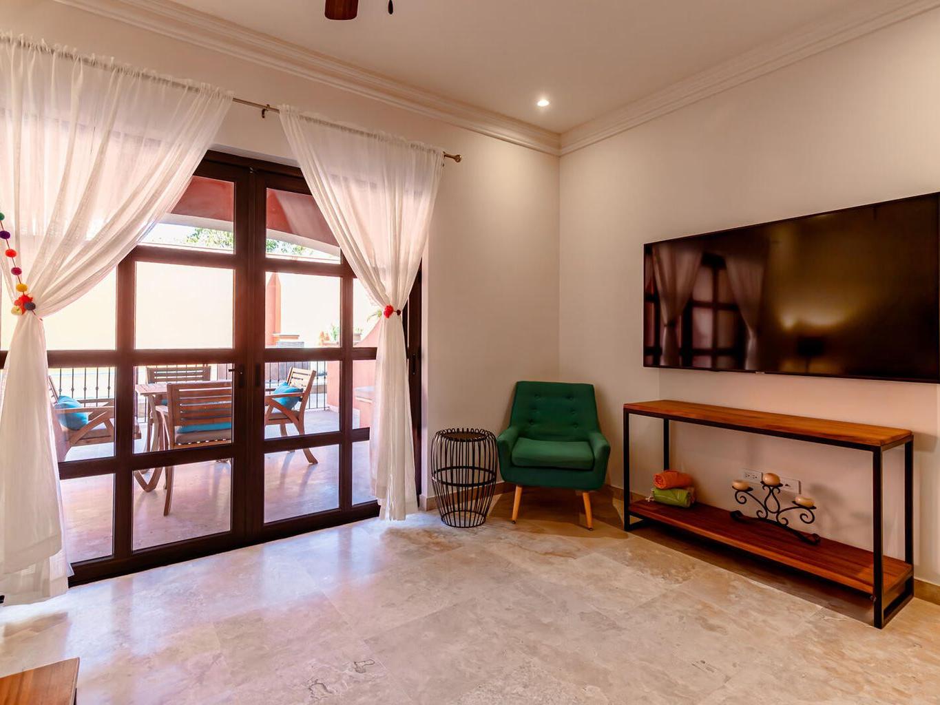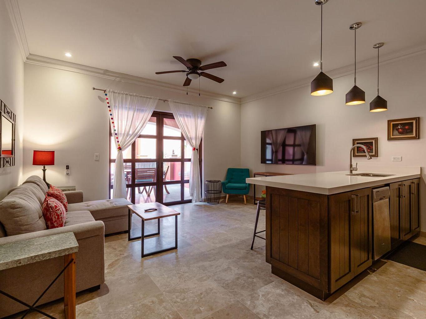 Welcome to this charming 1-bedroom, 1-bathroom ground-floor condo located in the heart of downtown Todos Santos. This unit offers more room than the average 1-bedroom condo, providing a comfortable and relaxing space to call home. The open-concept living area flows effortlessly into a private outdoor patio, perfect for dining al fresco or soaking up the warm Baja sunshine. Enjoy the added luxury of a pool, jacuzzi, and convenient underground parking. With an unbeatable location, you're just steps away from Todos Santos' top restaurants, shops, and galleries, all while enjoying the tranquility and privacy of this delightful condo.