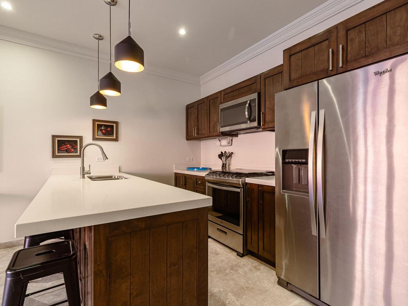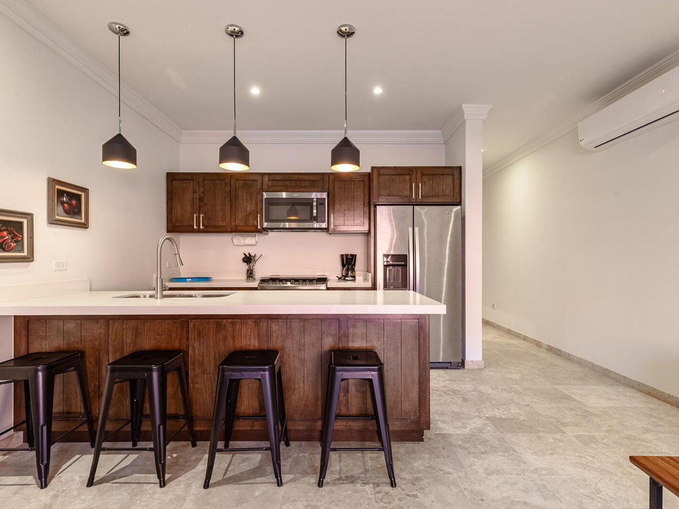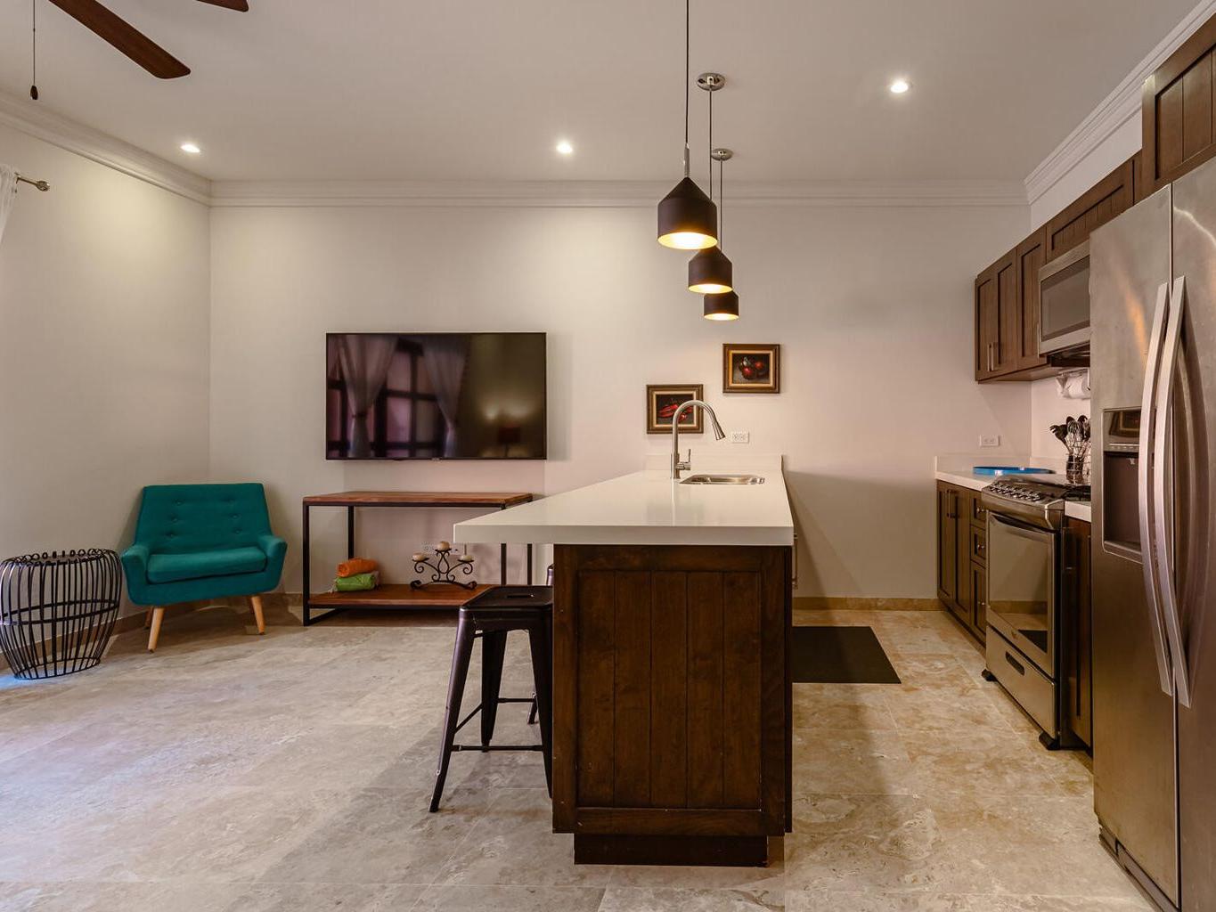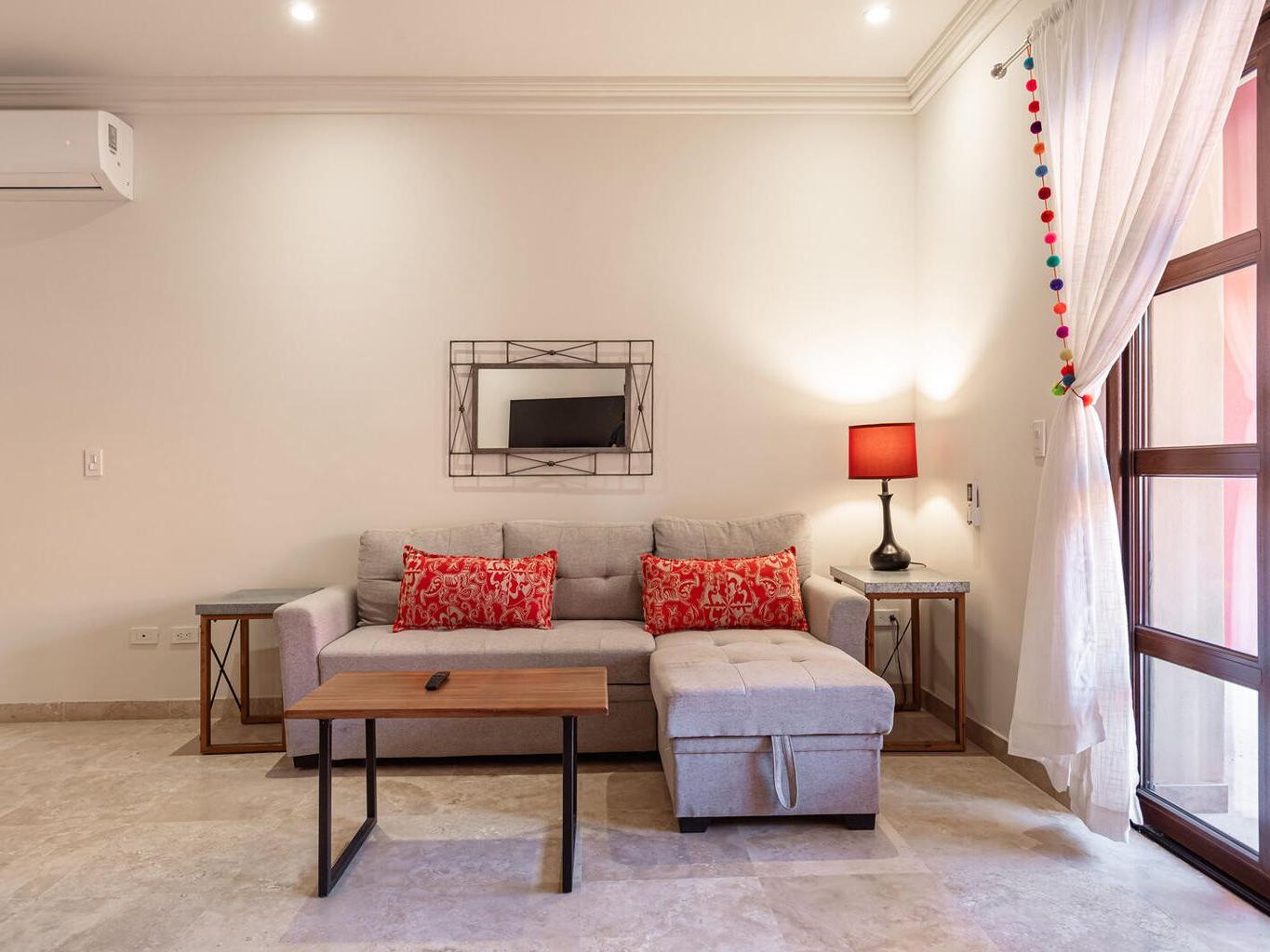 Welcome to this charming 1-bedroom, 1-bathroom ground-floor condo located in the heart of downtown Todos Santos. This unit offers more room than the average 1-bedroom condo, providing a comfortable and relaxing space to call home. The open-concept living area flows effortlessly into a private outdoor patio, perfect for dining al fresco or soaking up the warm Baja sunshine. Enjoy the added luxury of a pool, jacuzzi, and convenient underground parking. With an unbeatable location, you're just steps away from Todos Santos' top restaurants, shops, and galleries, all while enjoying the tranquility and privacy of this delightful condo.