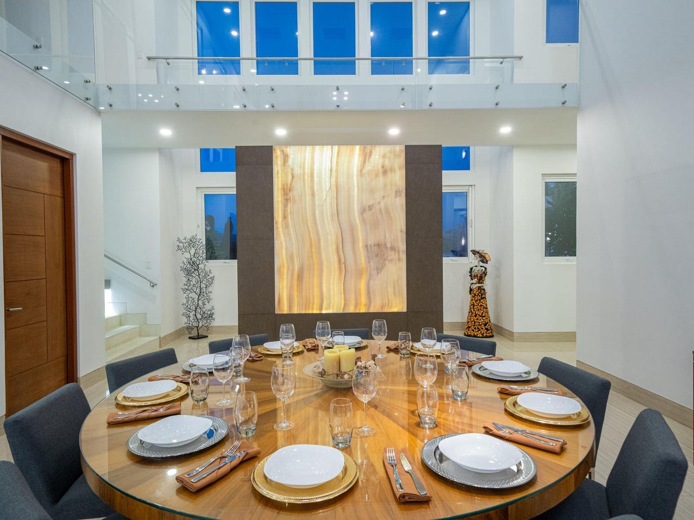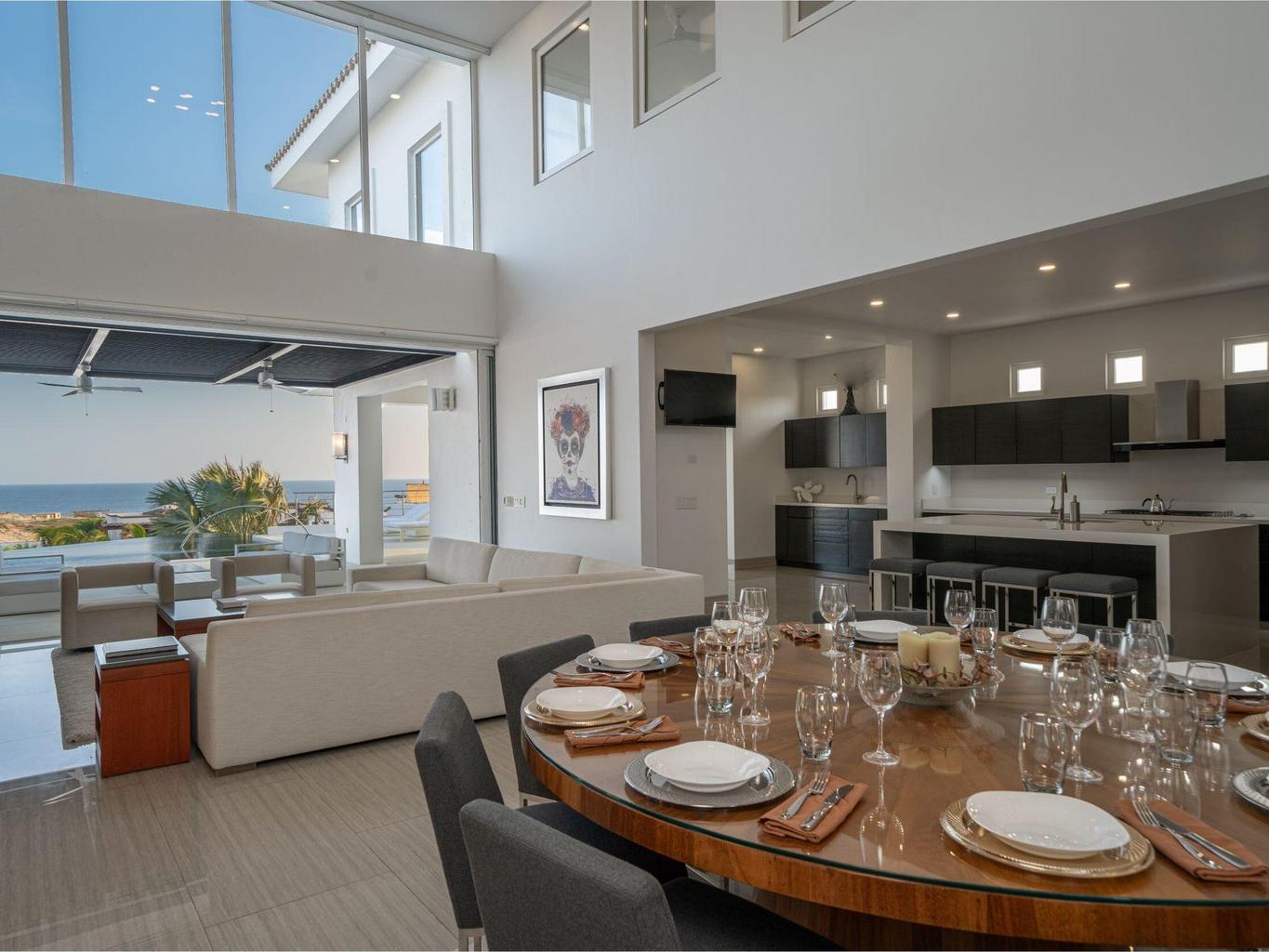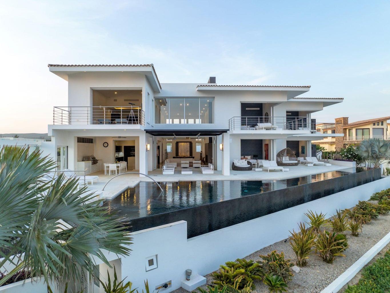 Luz de Diamante is perfectly situated just a short walk from the beach and nestled within the prestigious Diamante community positioned between the 5th and 16th holes of the Dunes Course designed by Davis Love III. Spanning approximately 20,000 sqft, this magnificent residence, built in 2017, seamlessly blends modern design with Mexican accents. The estate boasts four spacious master bedrooms, each providing stunning ocean views and luxurious accommodations. A detached casita adds to the property's allure, offering a fully self-contained apartment with a bedroom, bathroom, kitchen, living area, and outdoor patio. Additionally, a versatile game room in the main house includes a full ensuite bathroom and has the potential to be converted into a sixth bedroom if needed.