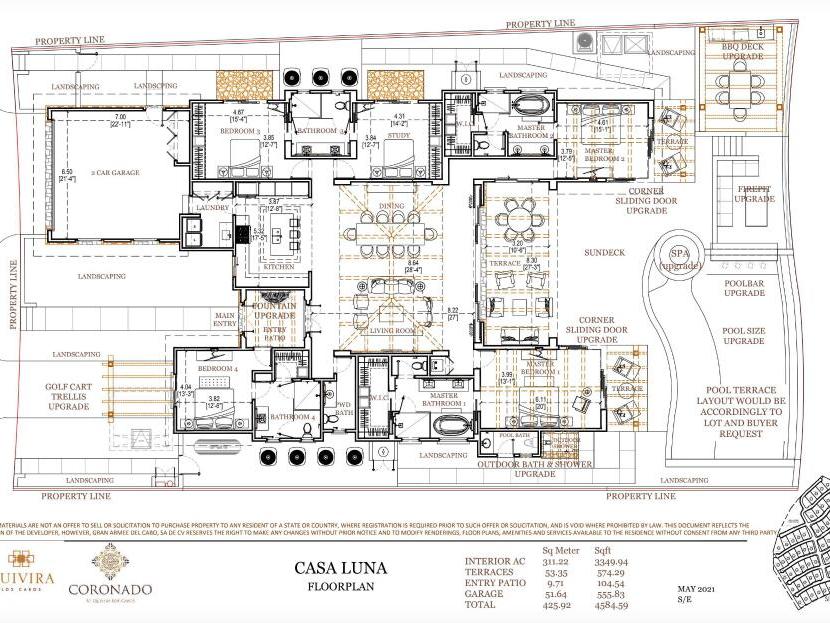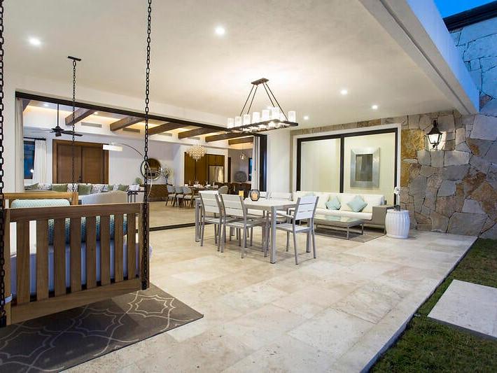 Beautiful single-level villa with panoramic views of the golf course and the Pacific Ocean. This stunning property features 5 bedrooms, 4.5 bathrooms, a spacious kitchen with a granite island, a laundry room, two enclosed parking spaces, and an additional parking space for a golf cart. There are also various options for improvements such as an infinity pool, a barbecue area, a fire pit, and more.The listed price is applicable for a finance purchase, where 50% of the total amount should be paid during the construction phase, which spans over a period of 13 months. The remaining balance can be financed directly from the developer for a duration of up to 15 years.