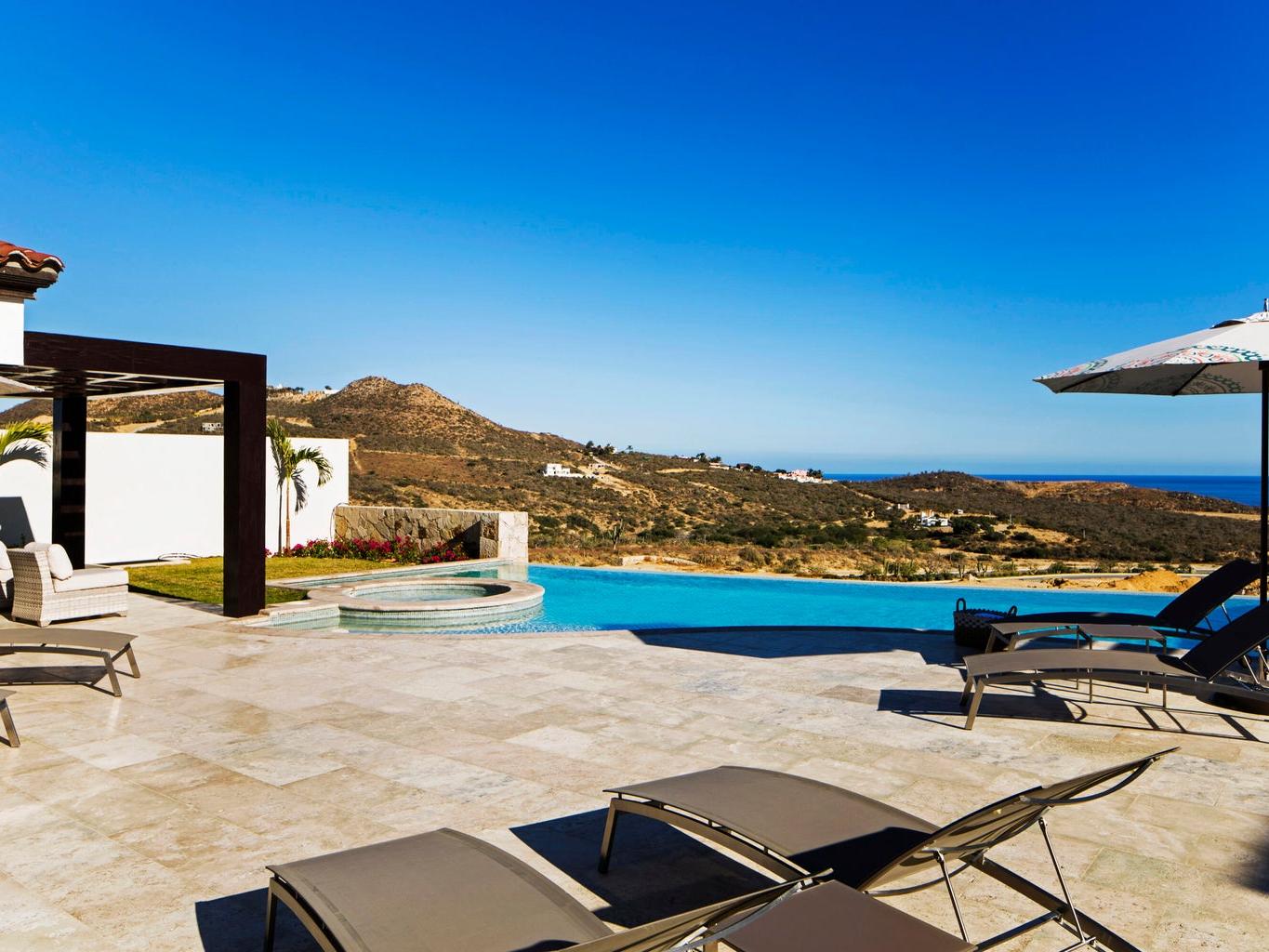 This is the financed price for the Espejo 4 bed home plan. The floor plan boasts a great room with vaulted ceilings over the living/dining/kitchen area which looks out over the large covered terrace and the hand-made infinity edge pool beyond. The chefs kitchen with huge island with seating boasts Wolf and Sub-Zero appliances. The master and guest master have large ensuite baths w/ shower and tubs, and also both have ocean views. Guest rooms off entrance courtyard. Owners select all of their finishes from the contemporary catalog. Home comes with all finishes, cabinetry, appliances, pool. Upgrades from catalog: jacuzzi, grill, fire pit, wine cave, rain showers, fountain, fireplace, ice maker, pool bath, etc.