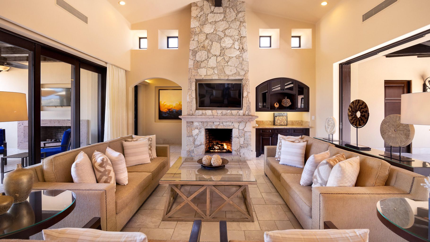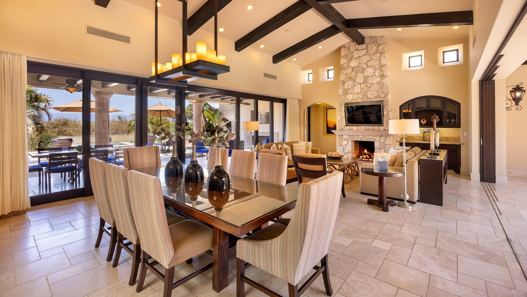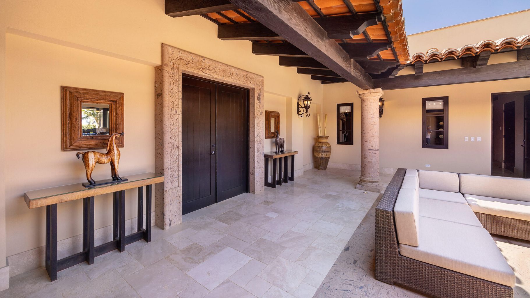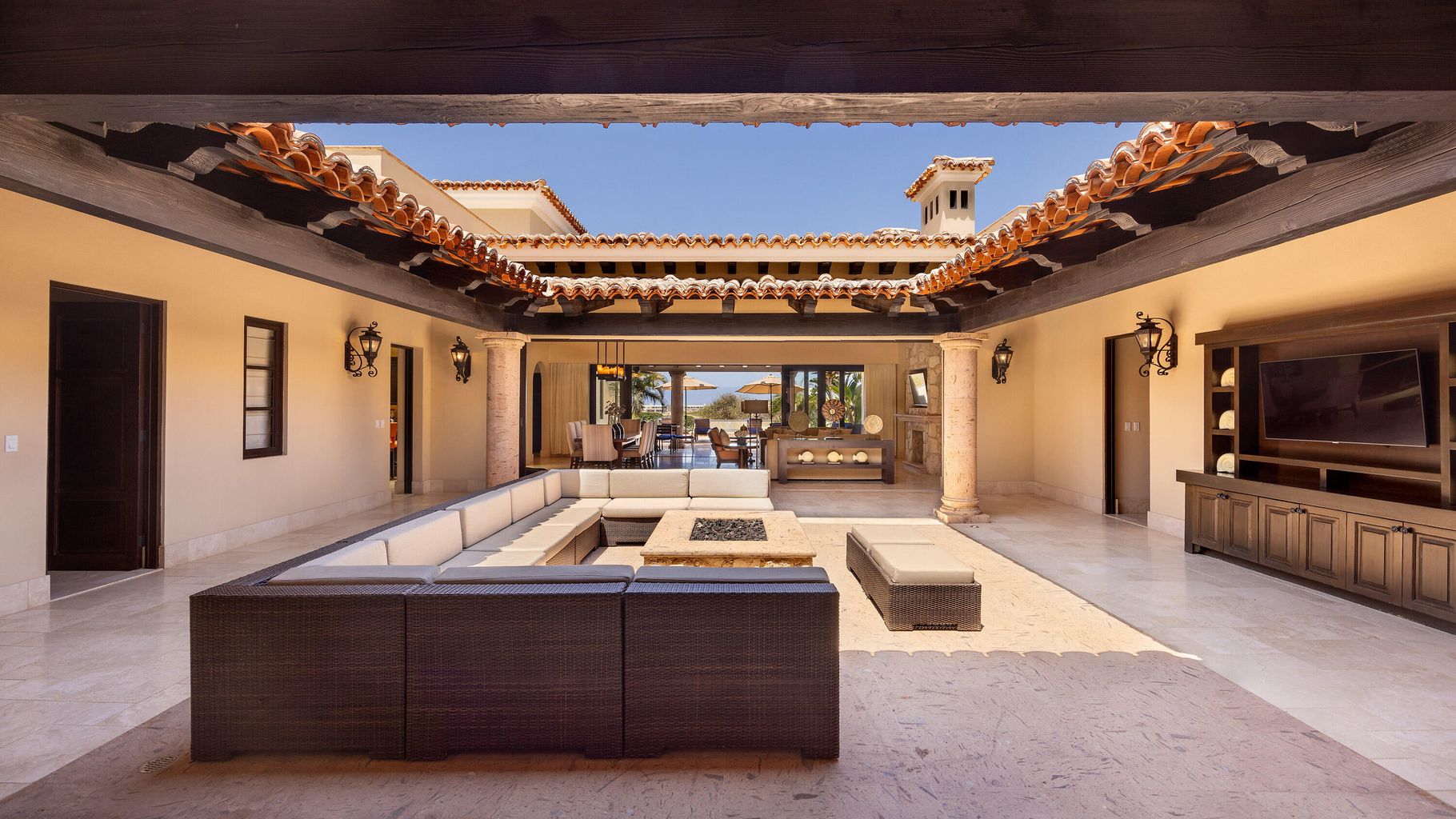 Step into luxury at Diamante Cabo San Lucas! Golf Villa 25 is a stunning ocean view property that combines grandeur with practicality. This residence captures the essence of Mexican haciendas with its open courtyard layout. The centerpiece of the villa is the great room, which connects the terrace and courtyard, creating a seamless transition between indoor and outdoor spaces. Featuring a fully furnished interior, this turnkey villa has a state-of-the-art gourmet kitchen with top-of-the-line appliances in both indoor and outdoor kitchens and can comfortably accommodate up to 12 guests in its five spacious bedrooms and five bathrooms, including two master suites. The soaring vaulted ceilings add an extra touch of sophistication to the already