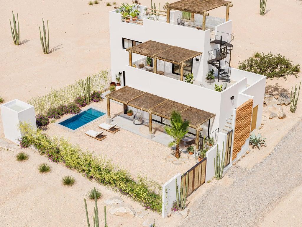 True to its name, Casa Mango is located in the beautiful organic farms of El Pescadero! This well designed Contemporary Baja Style home with a spacious open concept floor plan that focuses on outdoor spaces is what everyone is looking for in Baja! This home offers Ocean Views of San Pedrito Beach and the community of Huerta Hermosa is one of the most desirable in all of the Pacific Coast. This 3 bed 2 bath house offers horizontal living with 2 bedrooms on the first floor and a full suite on the second floor that could be converted into a lock off unit if so desired.