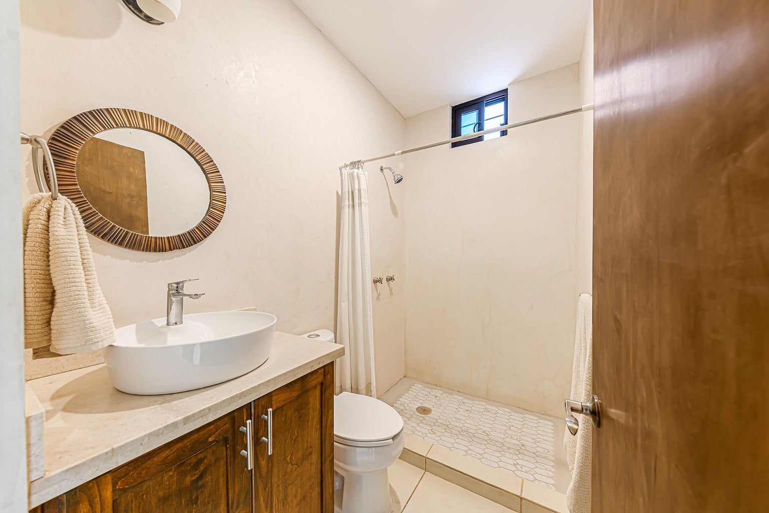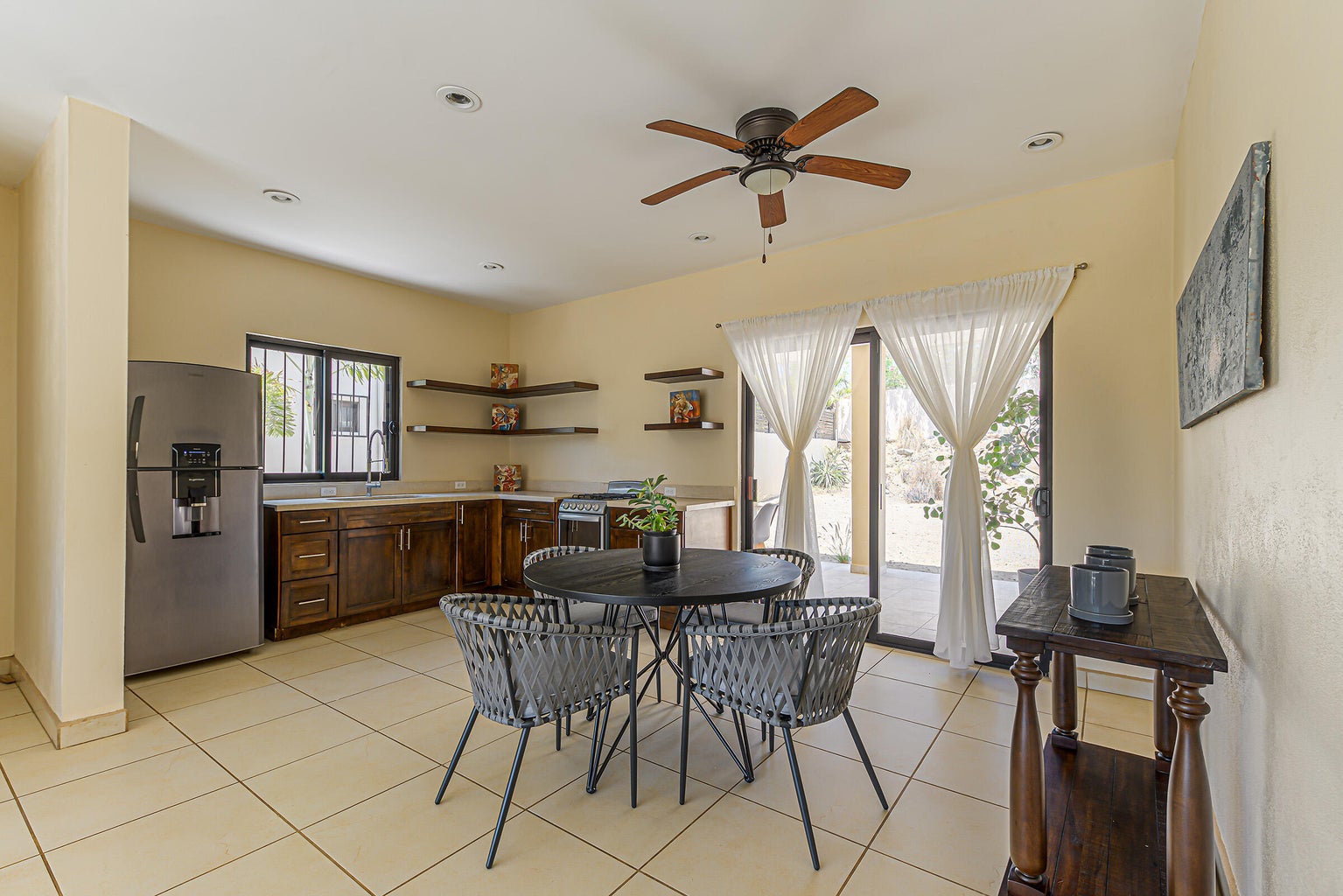 Located at the entry to El Otro Lado and down the street from the immensely popular La Esquina Cafe, Cuatro Vientos Yoga Studio and Mercado Ranchero, Casa Horizonte offers a great location, room for a backyard full of amenities, two bedrooms and three full baths. Open concept living/dining and kitchen lead to patio space on both sides of the house offering shaded spots for coffee in the morning and winding down cocktails early evening. Bedrooms each have patio doors leading to the outside allowing cross ventilation throughout the house during most of the year. Third bath is in the covered carport, perfect for rinsing off when coming back from the beach.