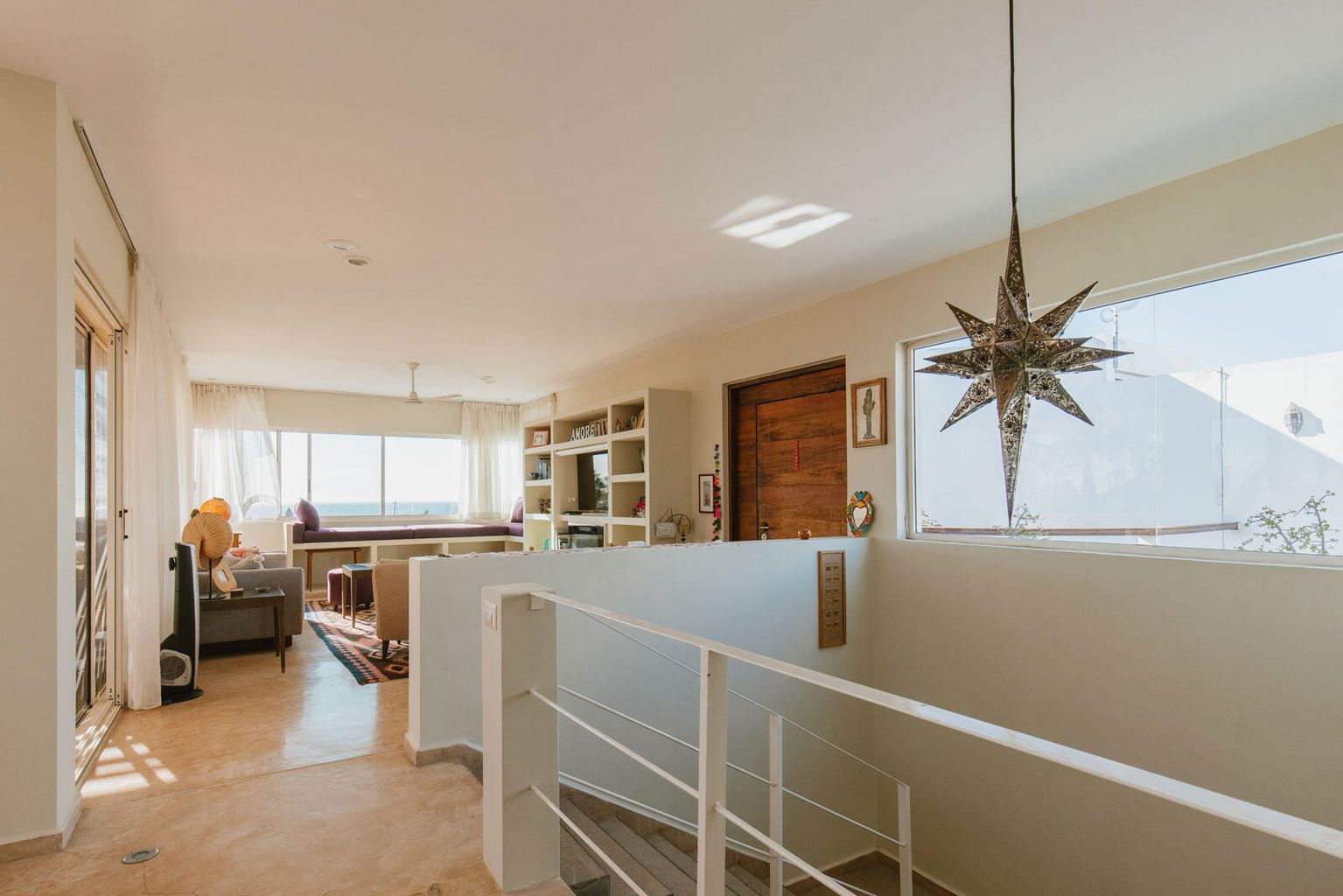 The property features a spacious master bedroom, 2 guests bedrooms with their own kitchenette and 2 versatile studios, perfect for hosting guests, working remotely, or creating personalized spaces. The two beautifully designed two-story structures are connected by an architectural wooden walkway, harmonizing the indoor and outdoor living experience.