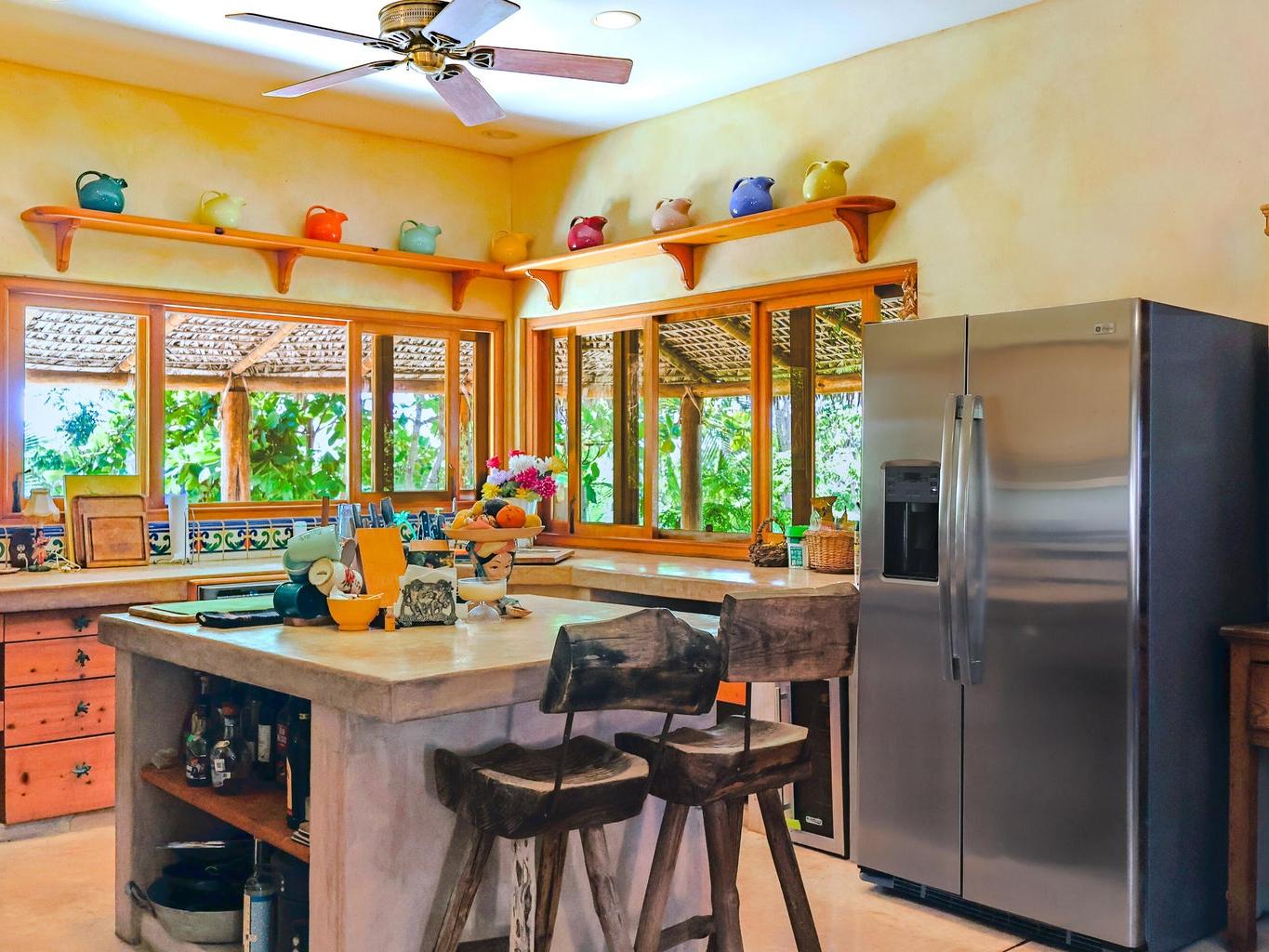Beyond the gates, it is a tropical sanctuary. Towering palms and vibrant gardens wrap around the resort-style pool with a waterfall jacuzzi. Three distinct homes, each with its own charm, frame panoramic Pacific views and invite endless possibilities for hosting, living, or generating income.