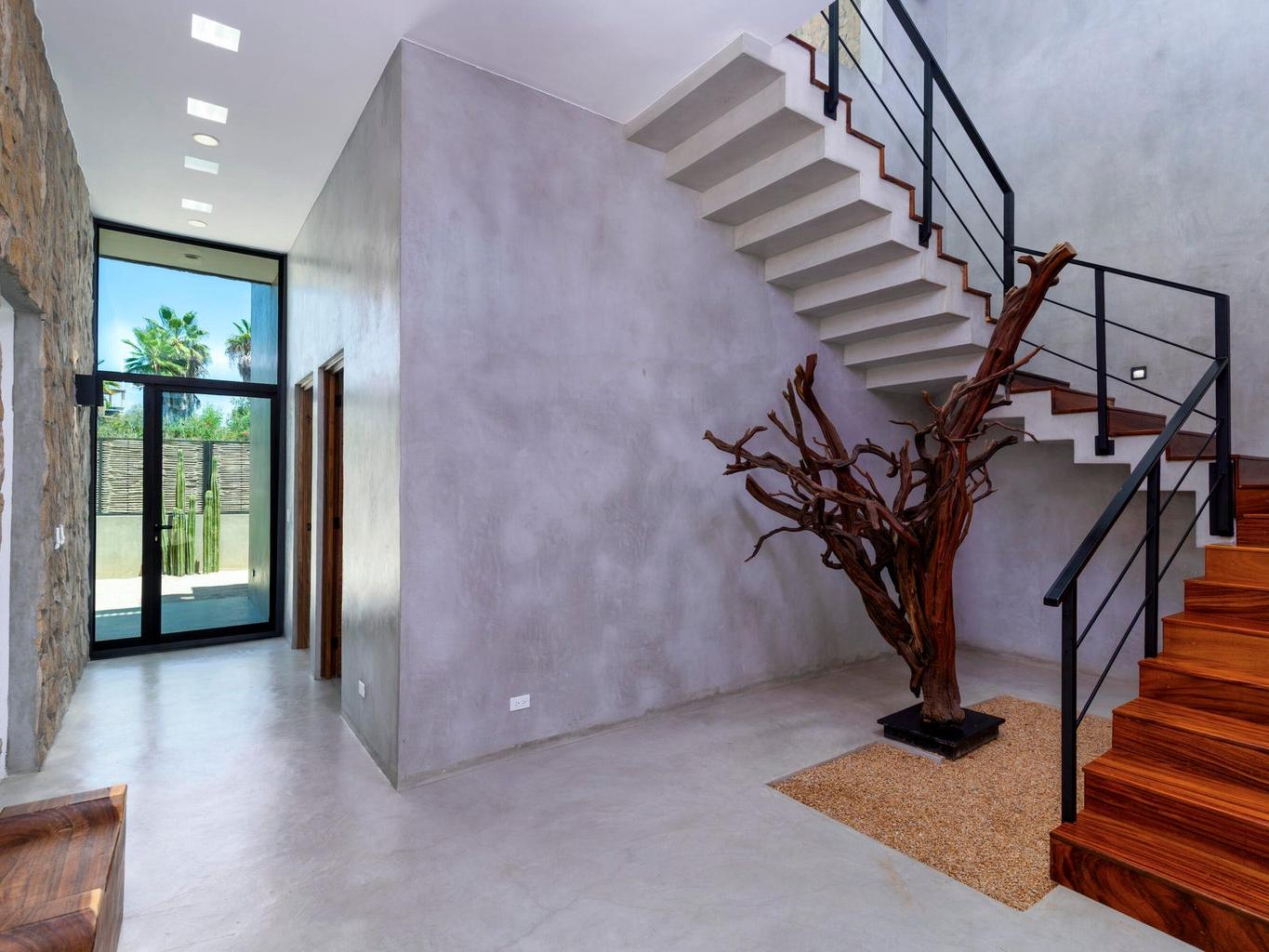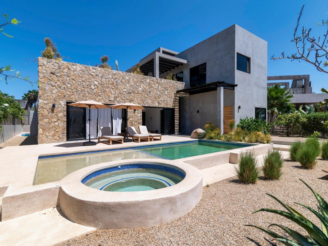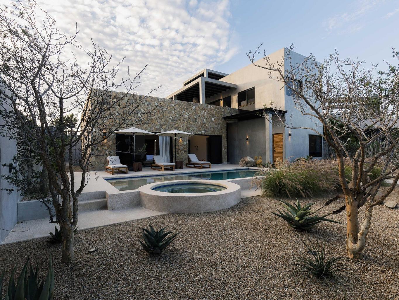 Designed by architect Diana Zavala and built by Baja Integrity Builders, the home ensures both functionality and quality. Outdoor amenities include a pool, jacuzzi, and a zen garden with a torote tree centerpiece. Set on Camino de los Jardines, a quiet cul-de-sac street in Las Tunas.