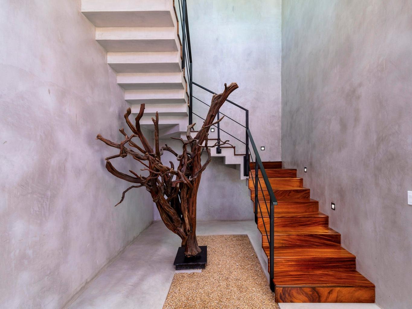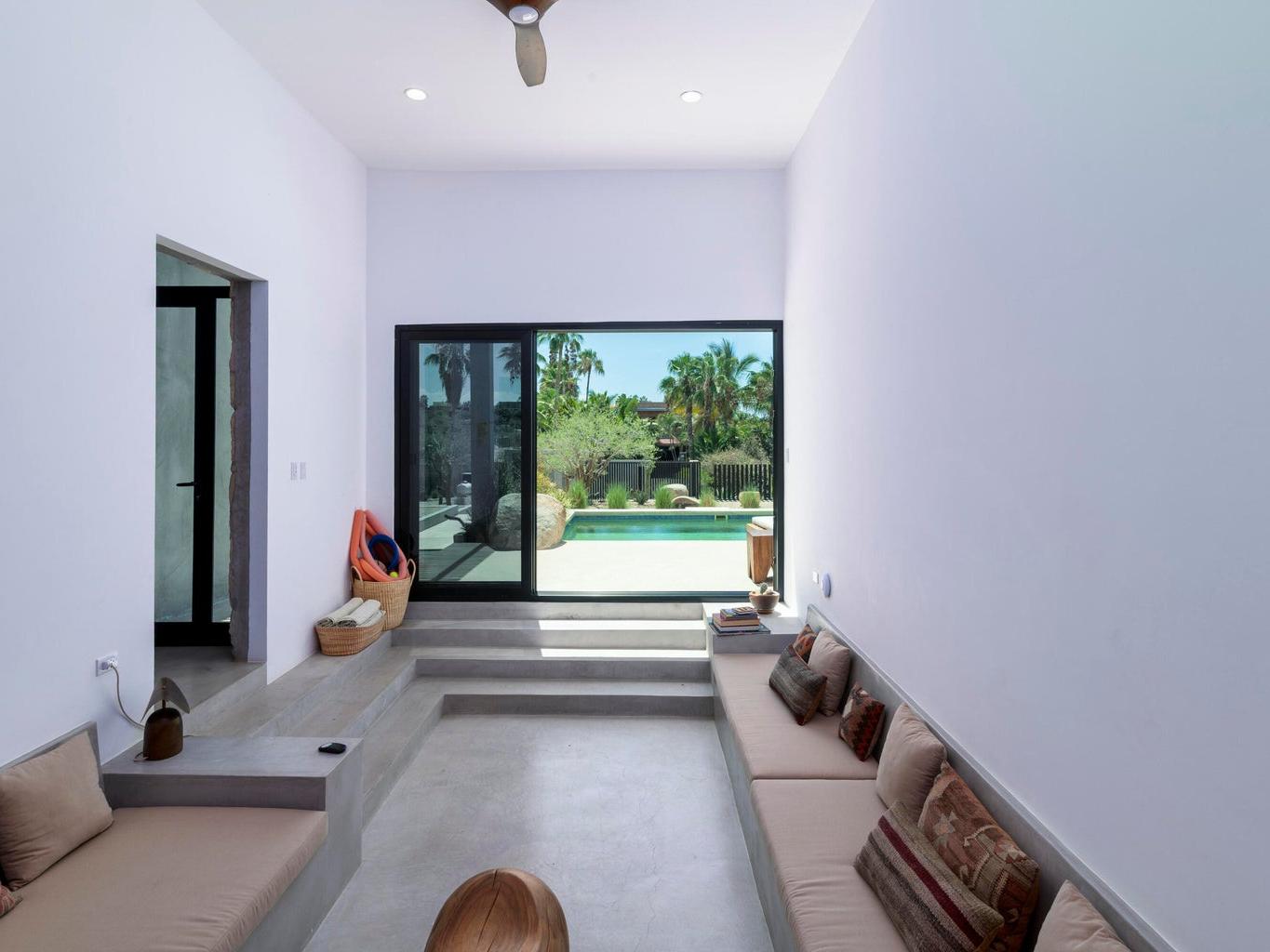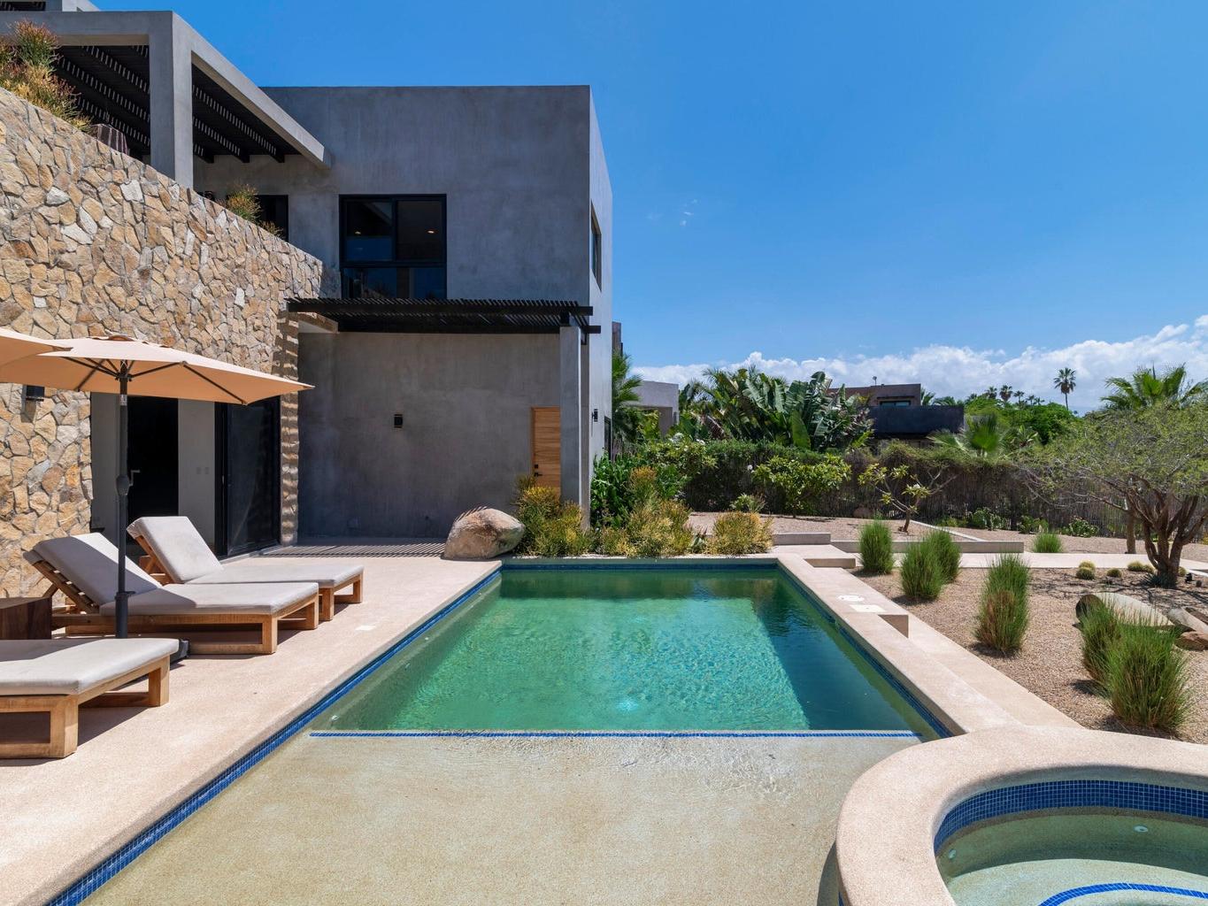 Designed by architect Diana Zavala and built by Baja Integrity Builders, the home ensures both functionality and quality. Outdoor amenities include a pool, jacuzzi, and a zen garden with a torote tree centerpiece. Set on Camino de los Jardines, a quiet cul-de-sac street in Las Tunas.