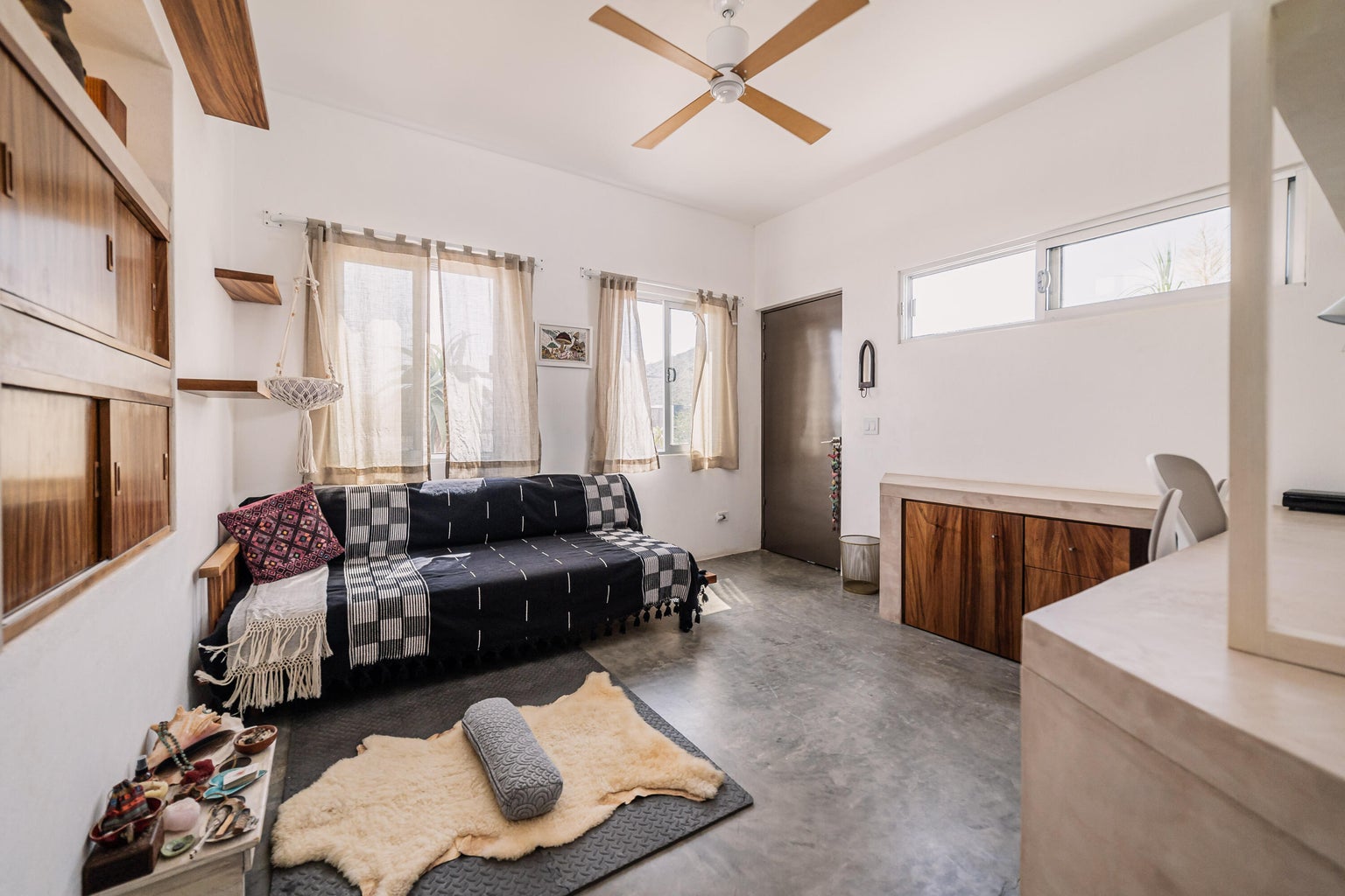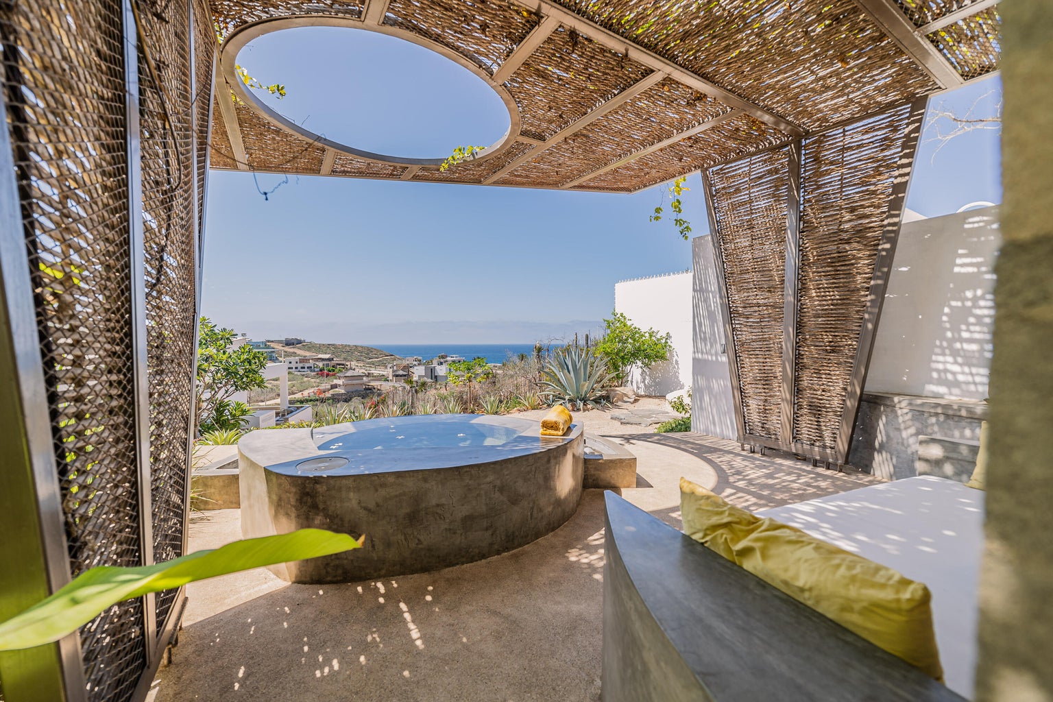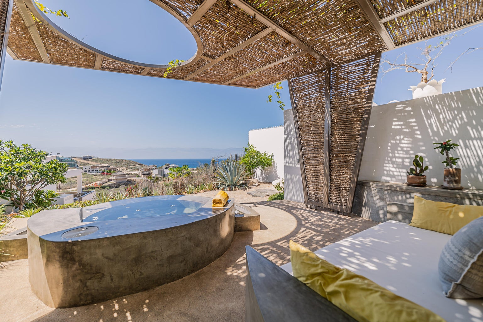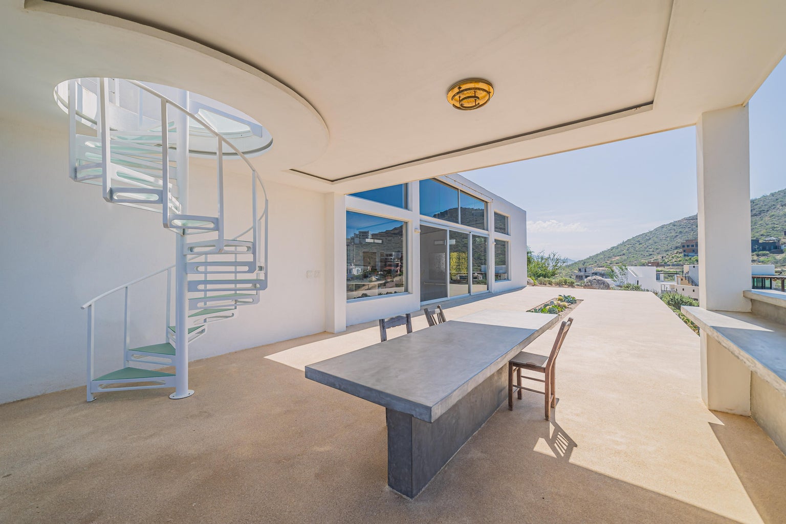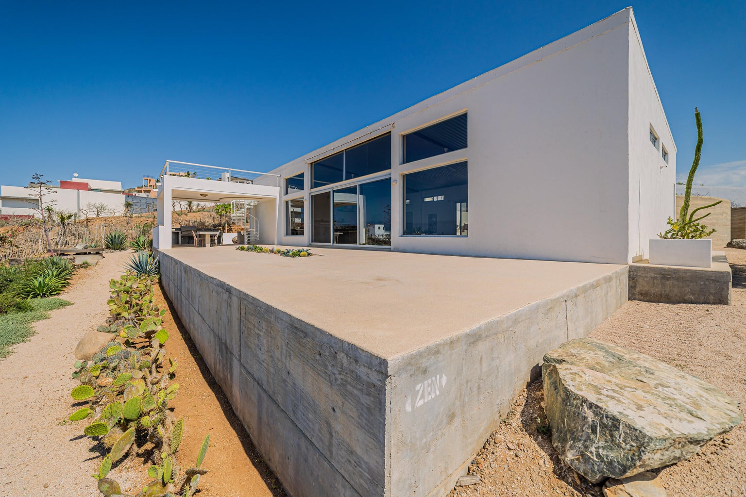 Welcome to Baja Zen, located in the exclusive Gavilan neighborhood of El Pescadero, just 2 km from Cerritos and 1 hour from SJD Airport. This 2,000 m² property consists of 3 separate buildings The main building has an open floor plan with high ceilings and floor-to-ceiling windows for breathtaking ocean views from every angle. Currently used as an artist studio, this versatile space previously hosted yoga and wellness retreats, utilizing the large yoga area and gourmet kitchen. Outside, a serene Zen Garden filled with native cacti provides the perfect setting for relaxation. An outdoor staircase leads to two private bedrooms, each with its own bathroom. Baja Zen holds the possibility of becoming a boutique hotel, wellness center, artist studio, or a cozy family residence.
