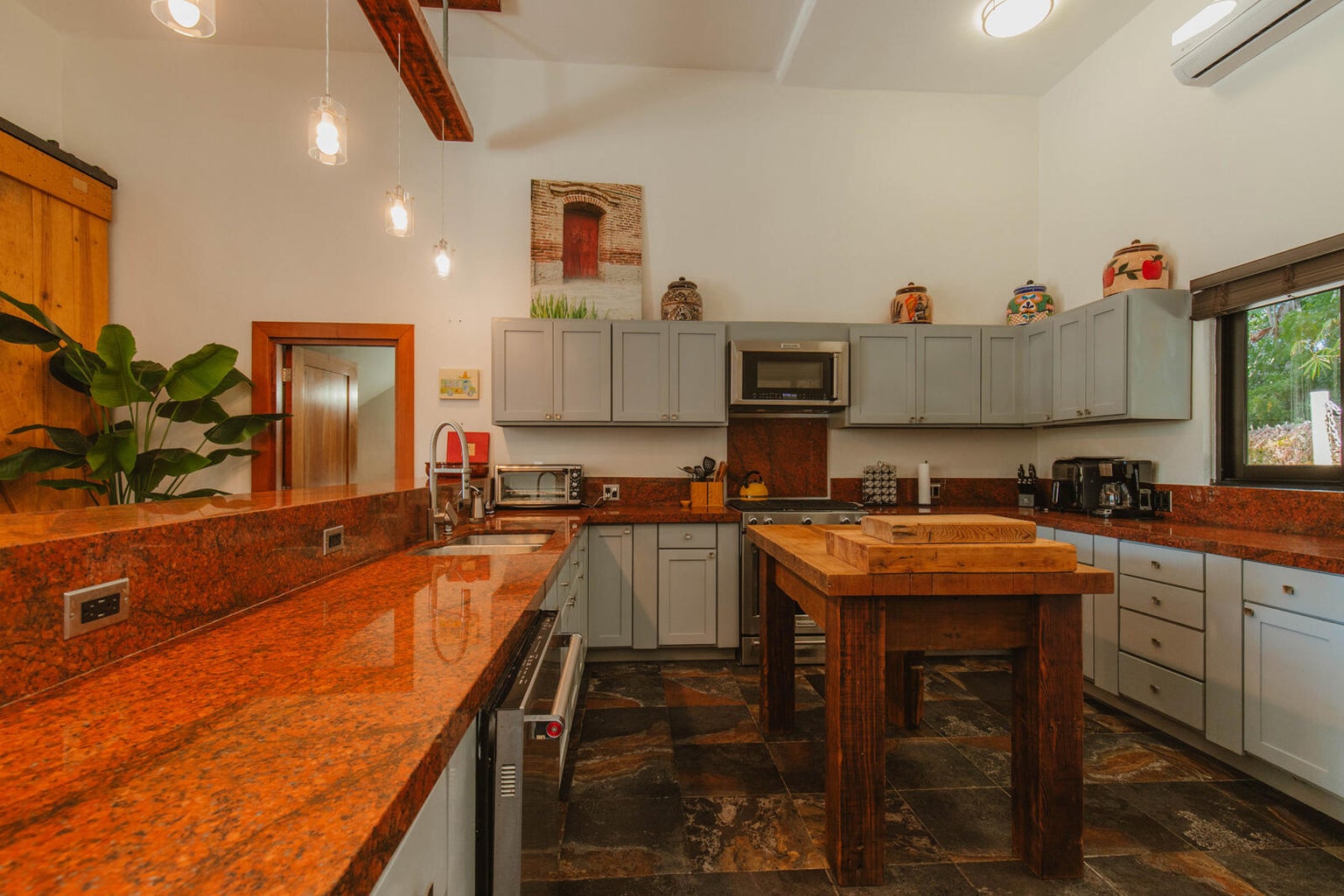 Beautifully designed 5-bedroom home with amazing ocean views, this thoughtfully laid out property in Pescadero is an oasis on the Pacific side of Baja. Located within minutes to a spectacular walking beach and right between two surfing beaches, San Pedrito and Cerritos, the property is well positioned for all levels of surfers and beach goers. After a day at the beach or exploring nearby Todos Santos relax in the heated saltwater pool and hot tub, enjoy fresh fruit from the garden, games on the lawn, plenty of outdoor furniture to lounge on and more! The fully furnished home offers AC and heating, internet, shuffleboard, outdoor lighted horseshoe court, a modern professional kitchen, two high-quality BBQ's, two living rooms -one outdoor and one indoor, separate laundry room and much more.