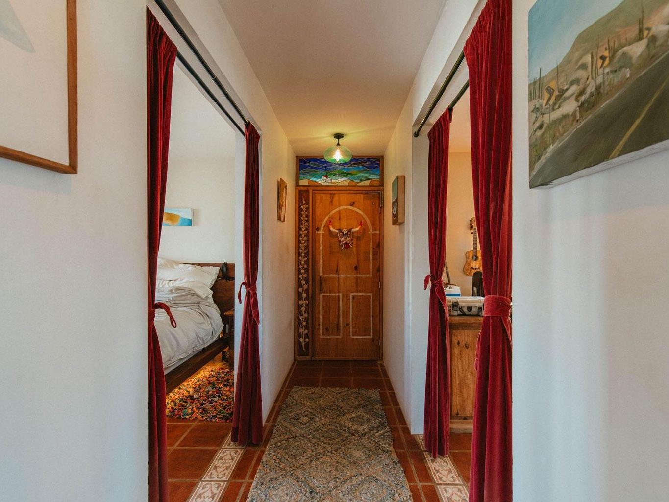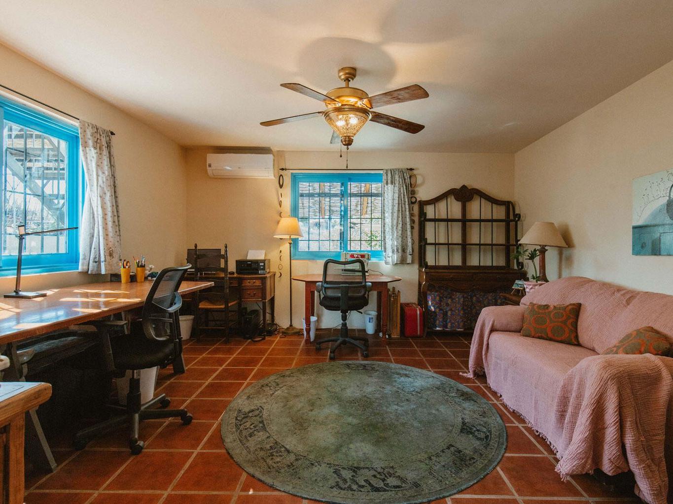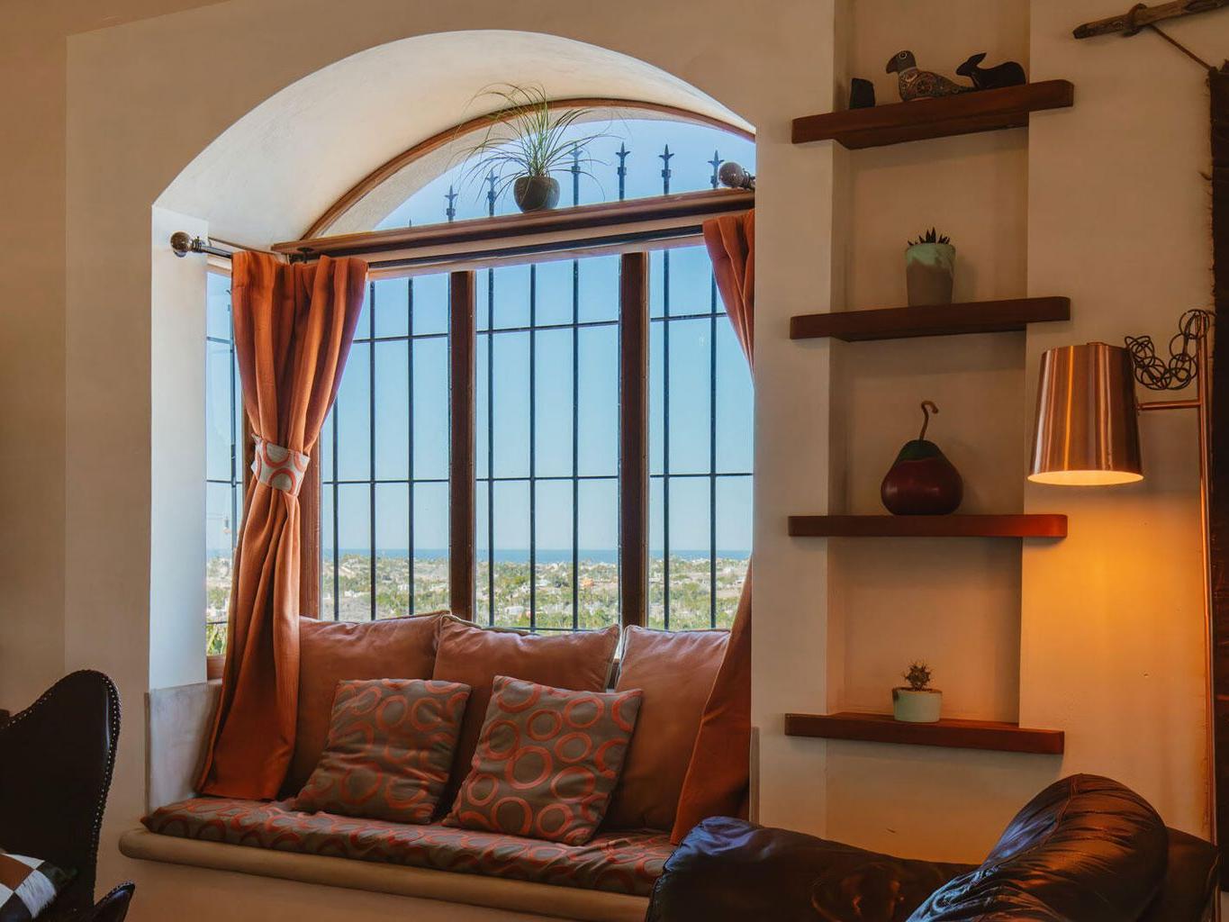 This majestic 2 bedroom 1 bath home sits atop a very private hill offering unparalleled 360 degree views of sunsets over the ocean, moon rises over the mountains, and the entire lush green huerta. Located just a quick drive or walk to downtown, 5 minute drive to the nearest beach, and within 15 minutes to both Cerritos surf spot in the South and La Pastora surf spot in the North, this thoughtfully crafted and cared for home captures everything one hopes to find in Todos Santos! Beautifully landscaped, this spacious property has mature date and fan palm trees, mango, neem, and pistachio trees, a BBQ area, four furnished patio spaces, remote controlled gated access, and plenty of storage.