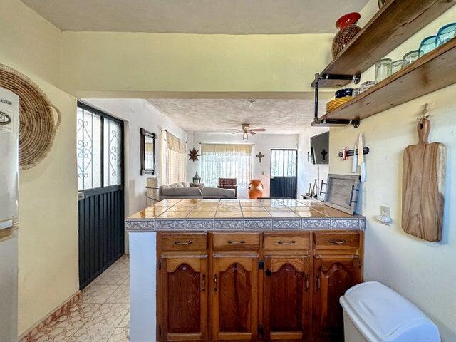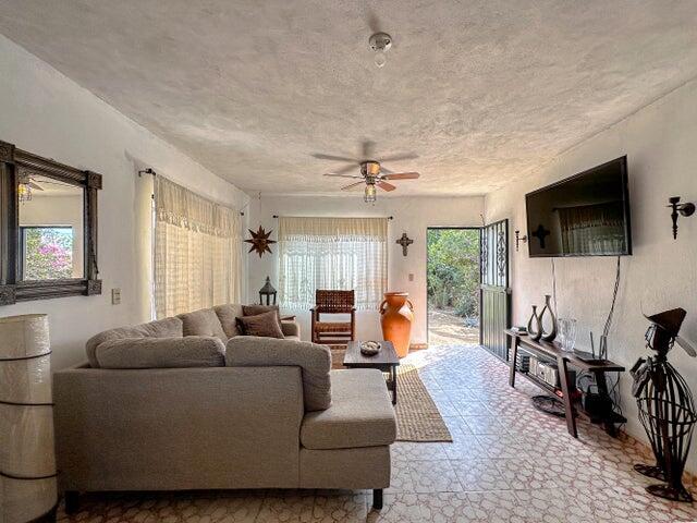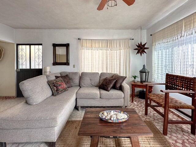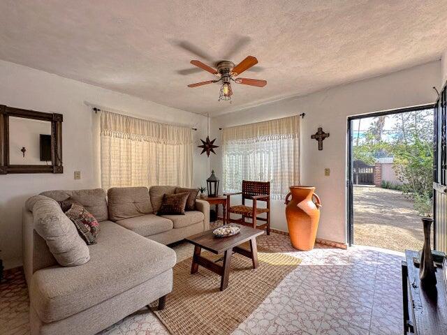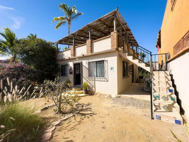 This charming 3 bedroom 3 bath home in the Heart of Todos Santos offers 2bedrooms 2 baths with an additional room for den, office or create a large master suite on the main level with a separate 2nd story bedroom and bath with private entry. Great family home or vacation rental. Two upper balconies with views. Mature landscaping and walled and gated. Excellent location. Right off the main road and within walking distance to shopping, restaurants and entertainment. Established neighborhood.