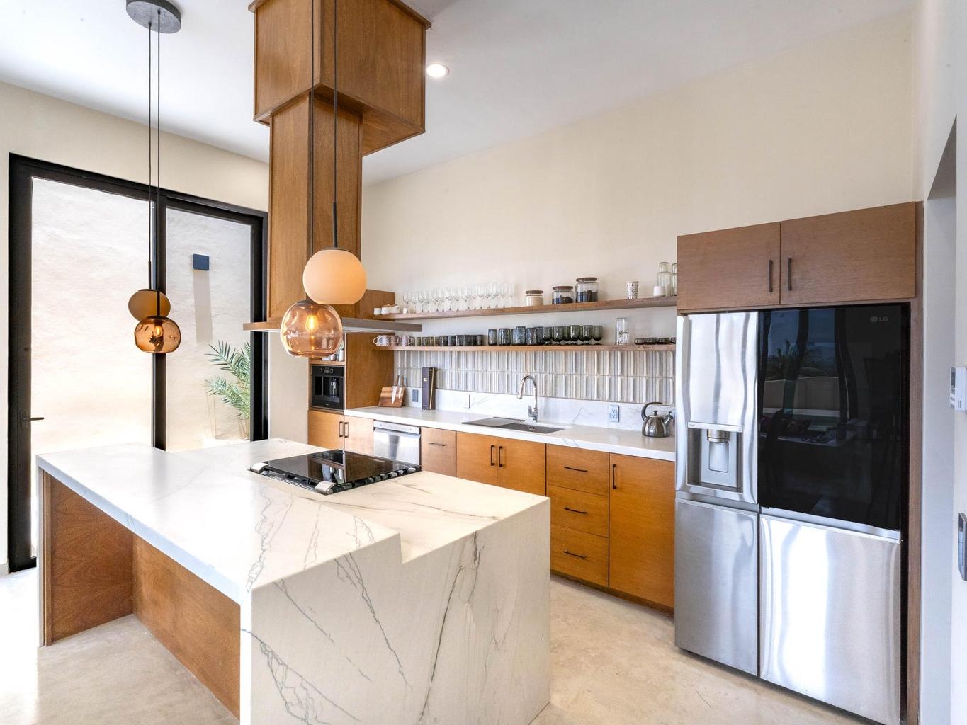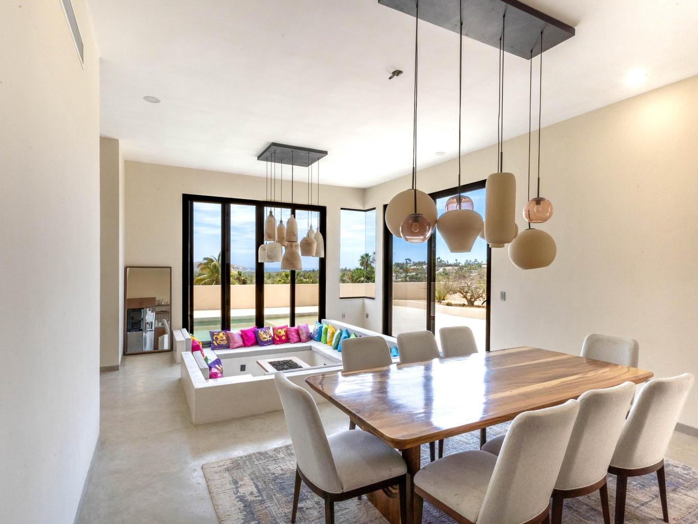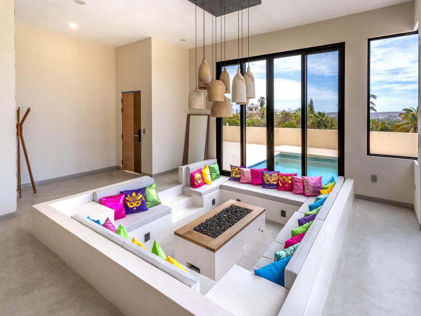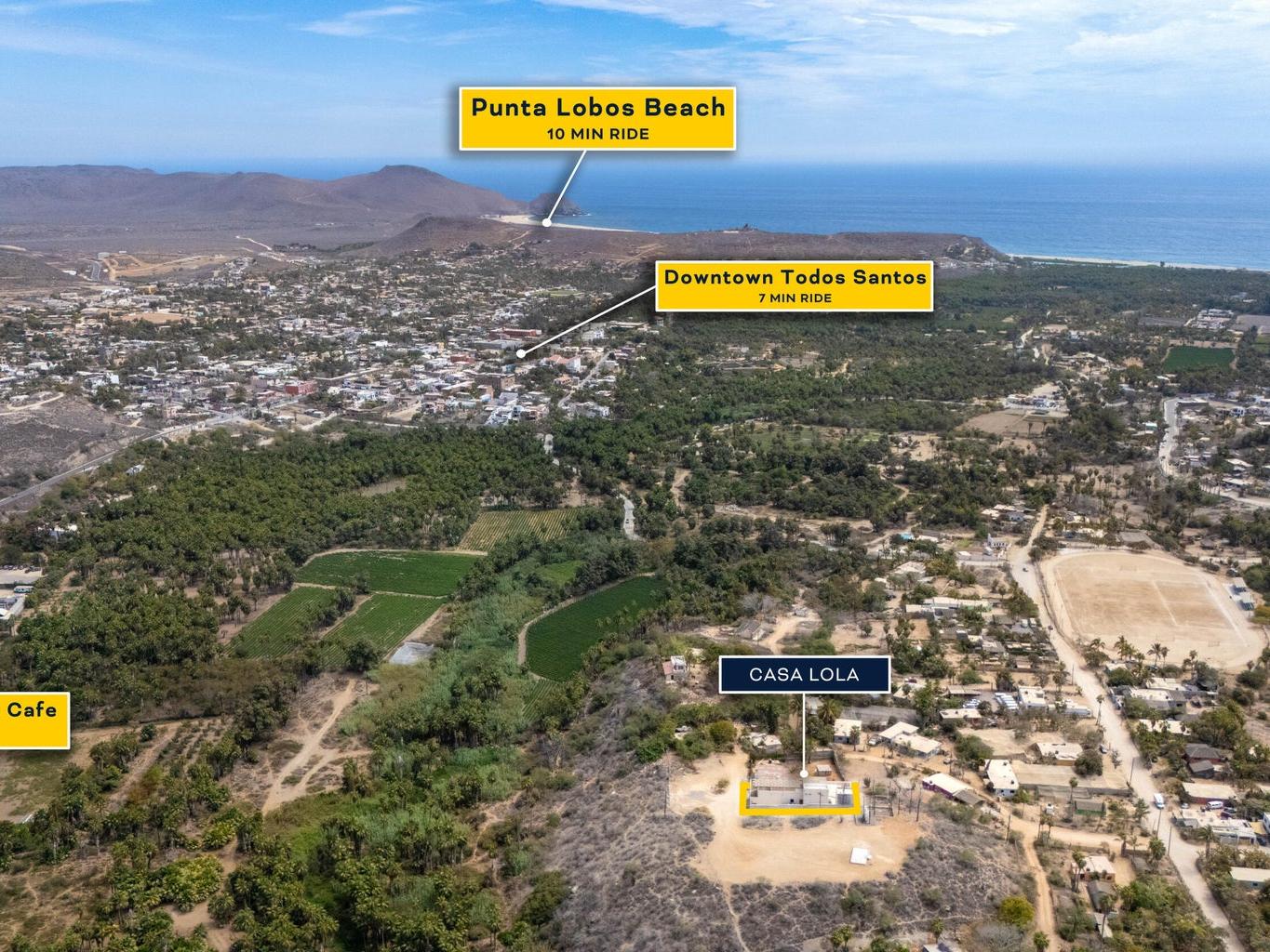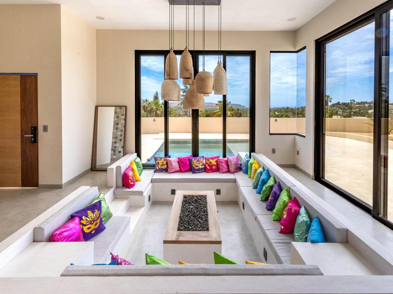 Welcome to Casa Lola, a modern hillside retreat in the Las Flores neighbourhood of Todos Santos, with sweeping views of lush palm groves to the Pacific ocean. This thoughtfully designed compound includes a 3500 sqf home with sunken living room with floor-to-ceiling glass that opens to the pool and patio, a gourmet kitchen ideal for entertaining, a luxurious primary suite with a spa like en-suite, large walk-in closet and private hot-tub garden escape. Two separate guest casitas with full en suites offer comfort and privacy for guests, while the giant rooftop patio with kitchen and dining space invites sunset gatherings with friends. The oversized garage and maid's quarters add flexibility. Minutes from town, Dolce Cuarenta and highway 19, Casa Lola is a must see property in todays market.