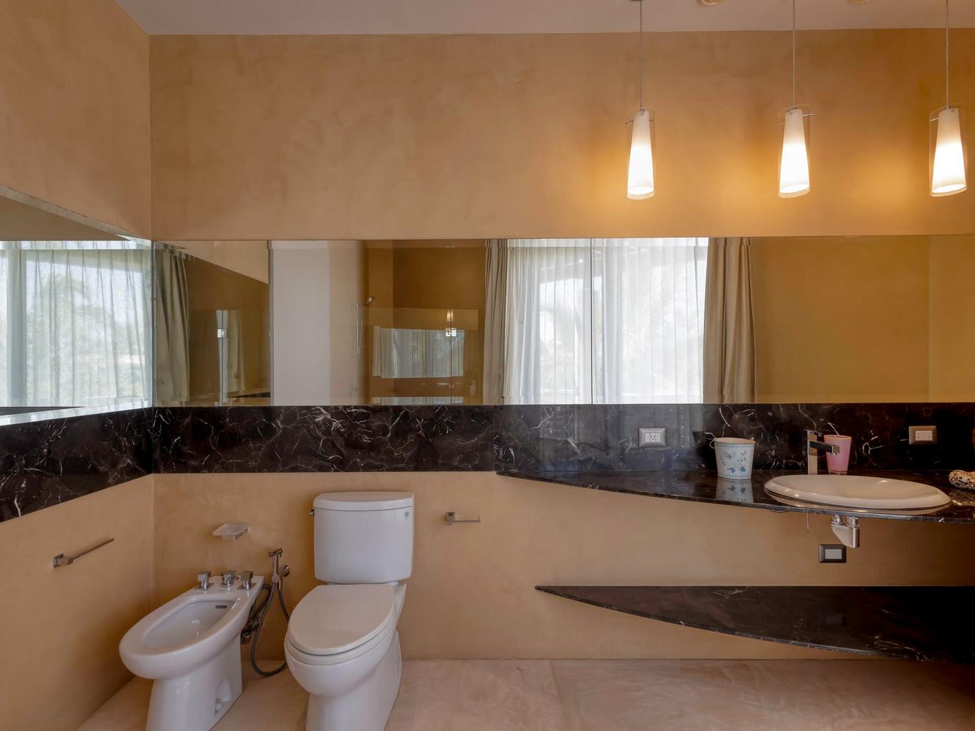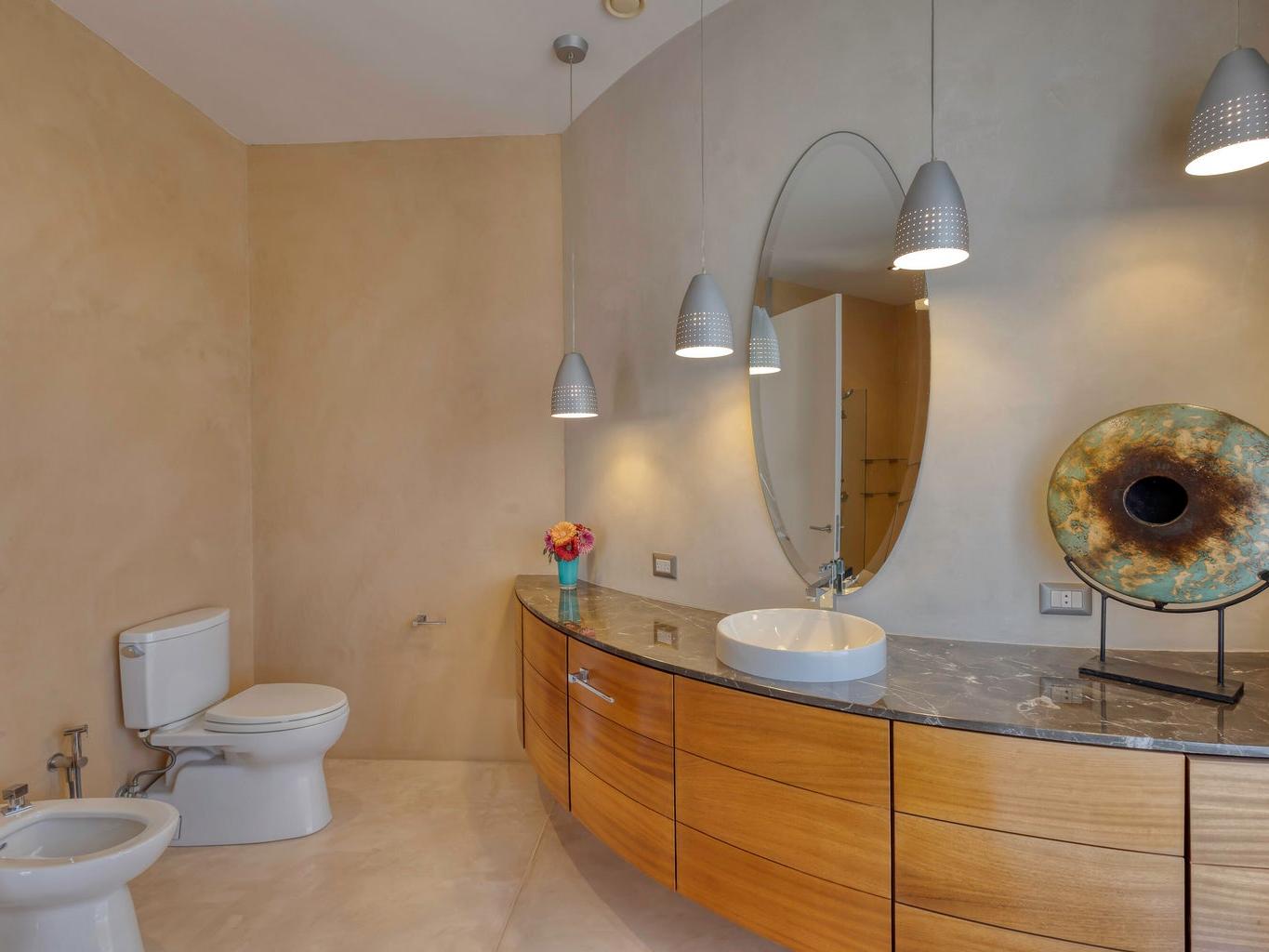 open-concept living area, chef's kitchen, and five bedrooms, each with its own bathroom. A