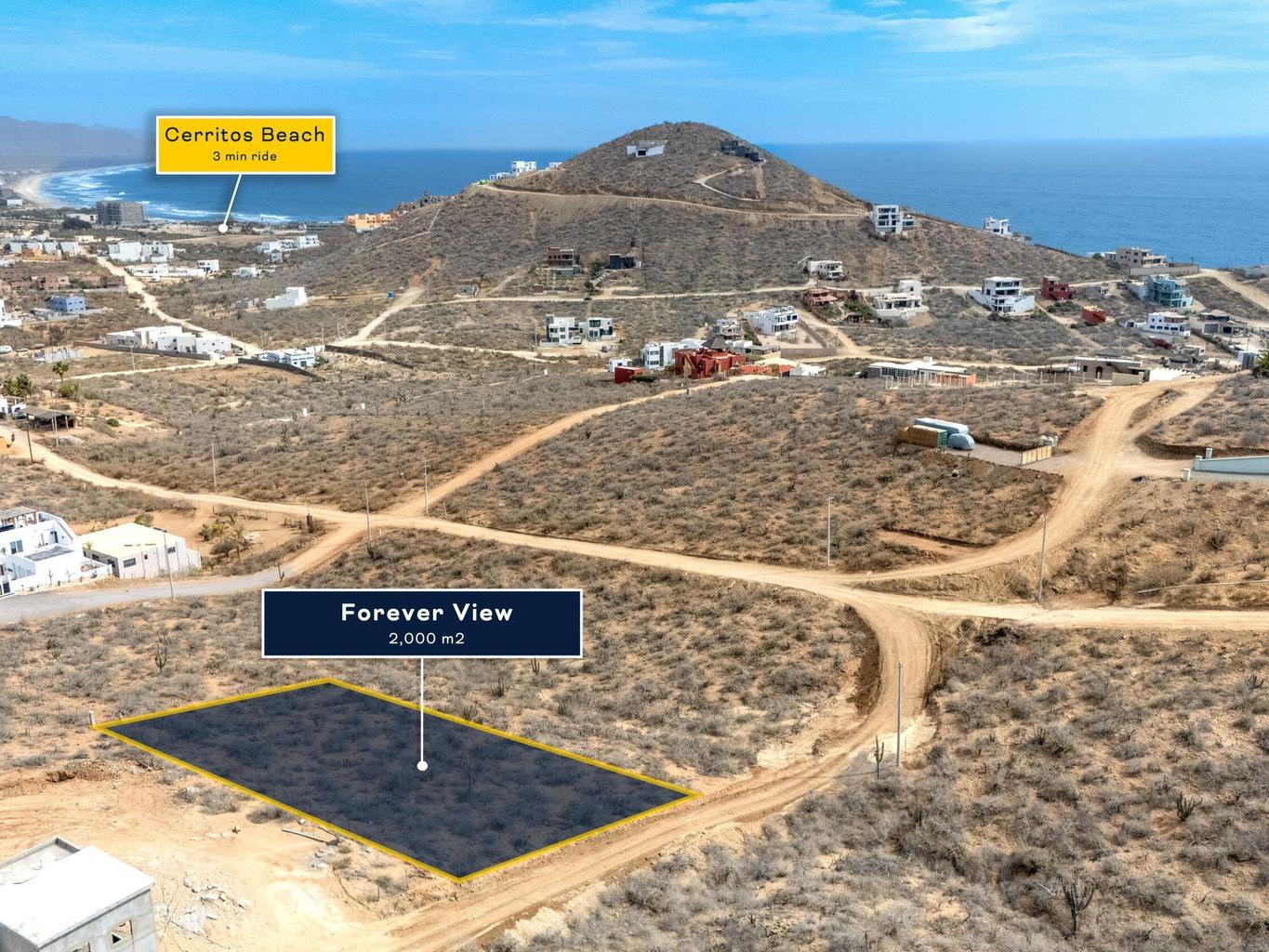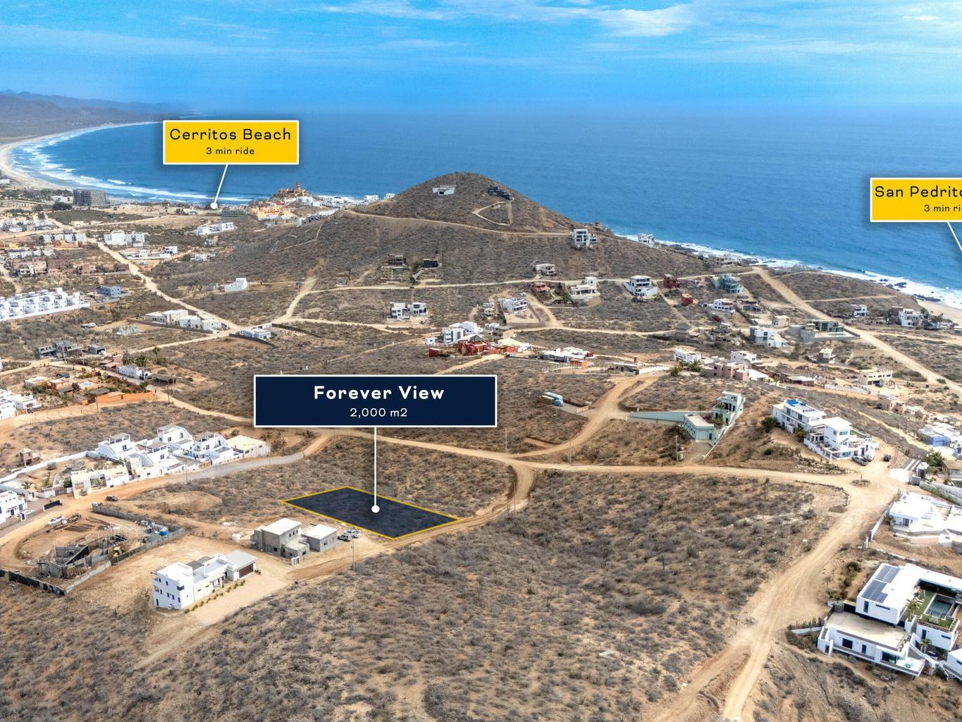 MOTIVATED SELLER - BELOW MARKET VALUE! An awesome piece of land set high on the hill, offering forever Cerritos Beach views and panoramic rooftop views stretching over the hill to Pescadero Beach. This half-acre (2,000 m2) parcel is located just a 2-minute drive to world famous Cerritos Surf Beach. With power already at the lot line for an easy CFE hookup, building your dream home has never been easier. The sellers have preliminary project plans and a trusted quality builder they can provide. Surrounded by million dollar homes, this property is a great investment for future development and land appreciation. Title is held in a new Mex corp that can be easily transferred to the new owners for a quick close and tax savings. You need to see this one in person to appreciate it.