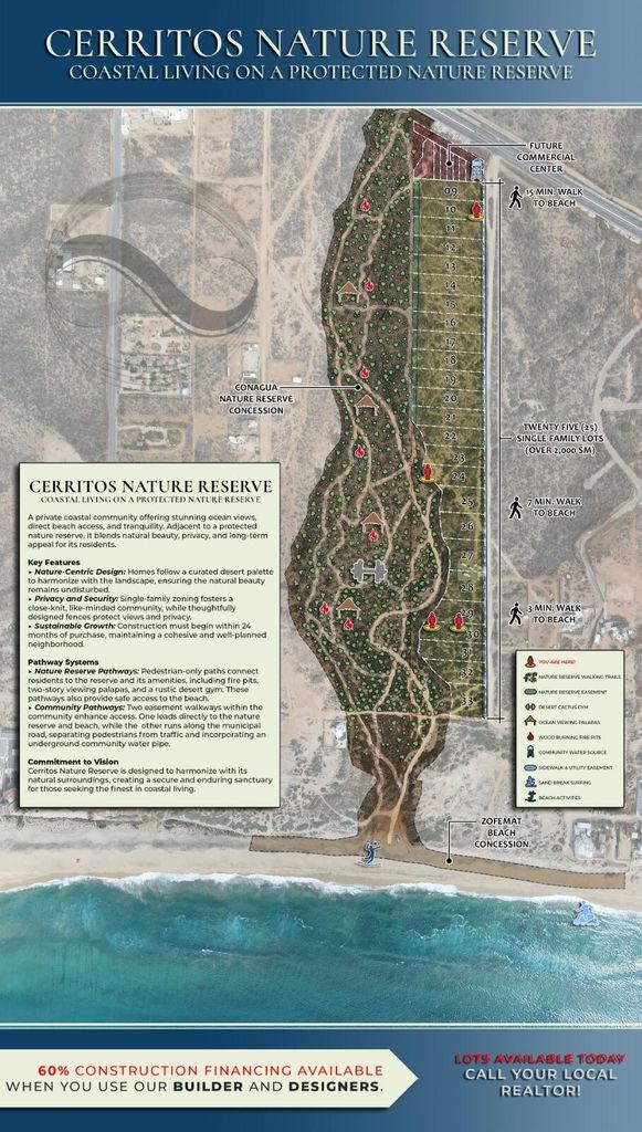 Cerritos Nature Reserve offers a unique blend of natural beauty, exclusivity, and a commitment to long-term community well-being. Nestled beside a breathtaking nature reserve, this exceptional community provides unparalleled privacy, stunning ocean views, and direct beach access.