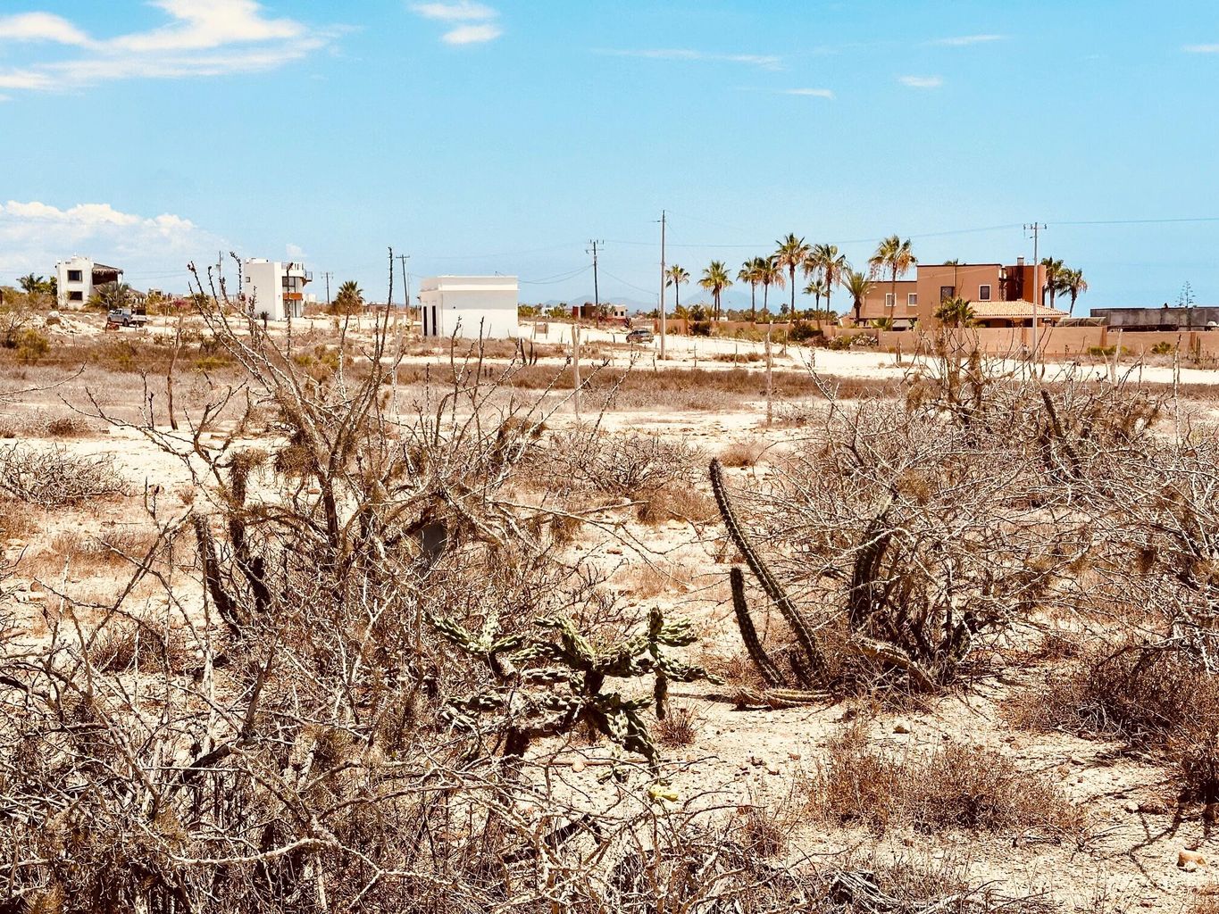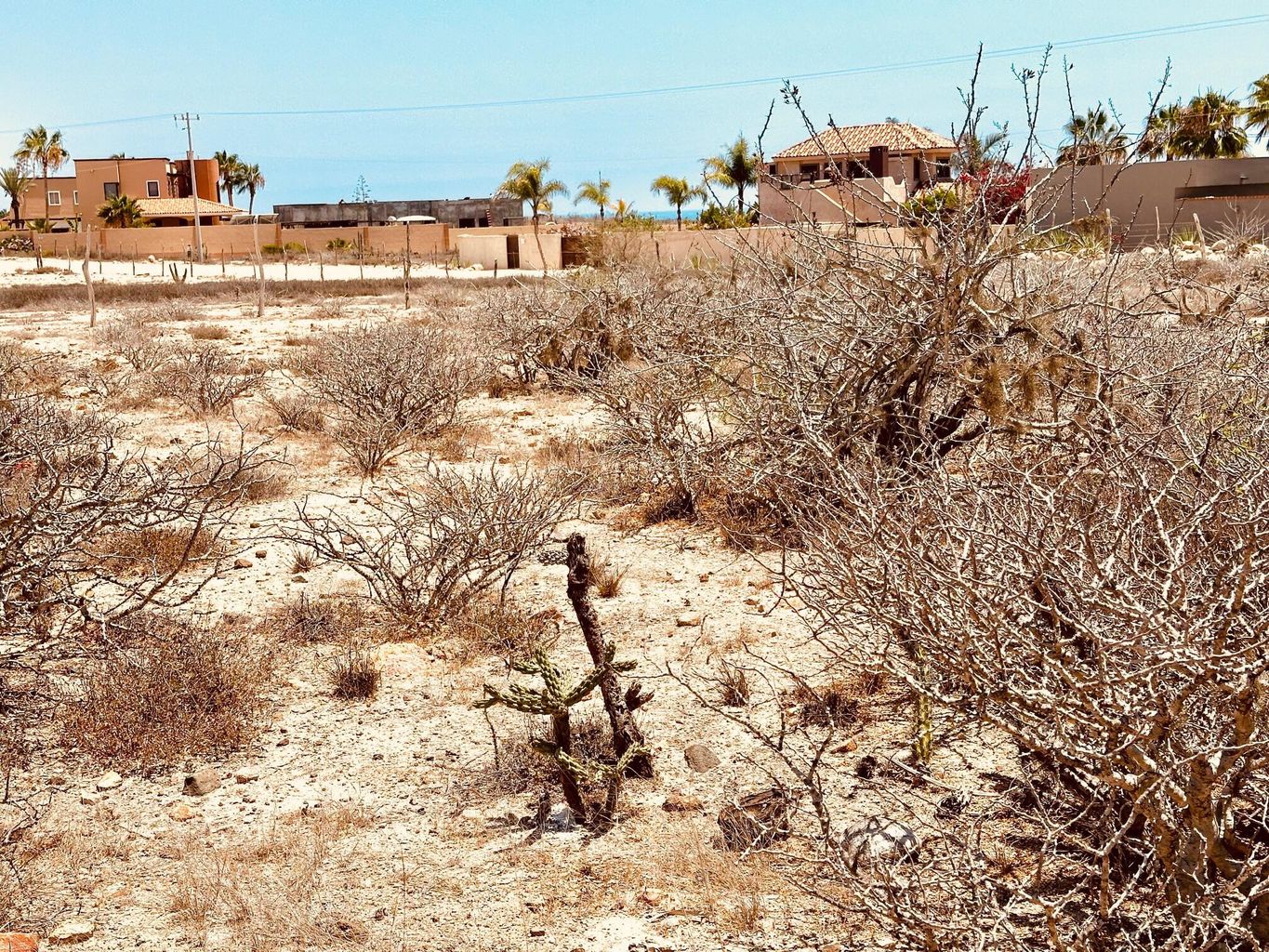 Desirable ½ acre lot in Todos Santos, BCS, located two lots south of Calle Torote in area of newly built homes within short drive to La Pastora beach, The Green Room and Villa Santa Cruz and Las Tunas shopping / restaurant districts. Level lot with partial ocean views from ground level, more so with two stories. Enjoy the serenity of Las Playitas