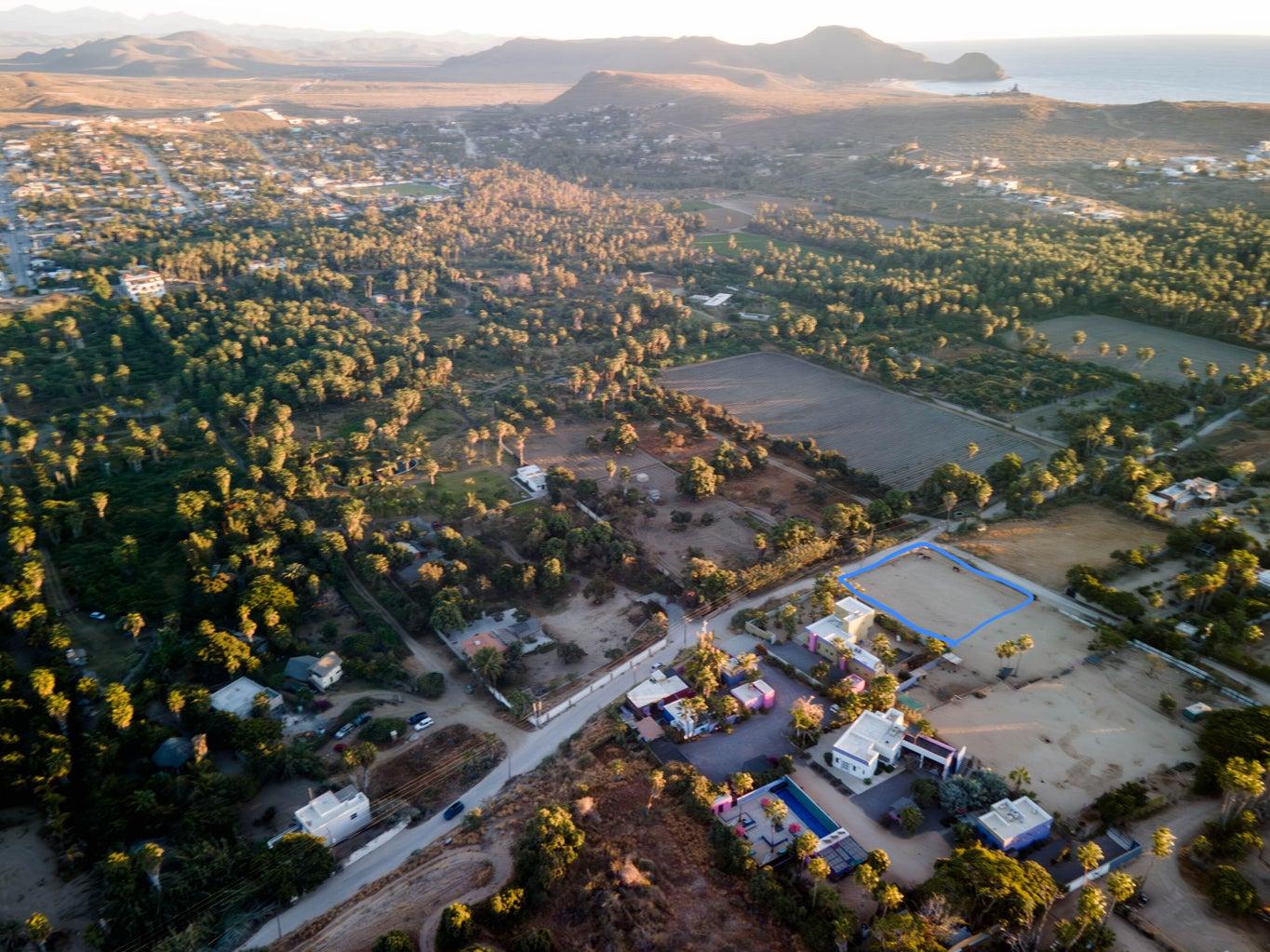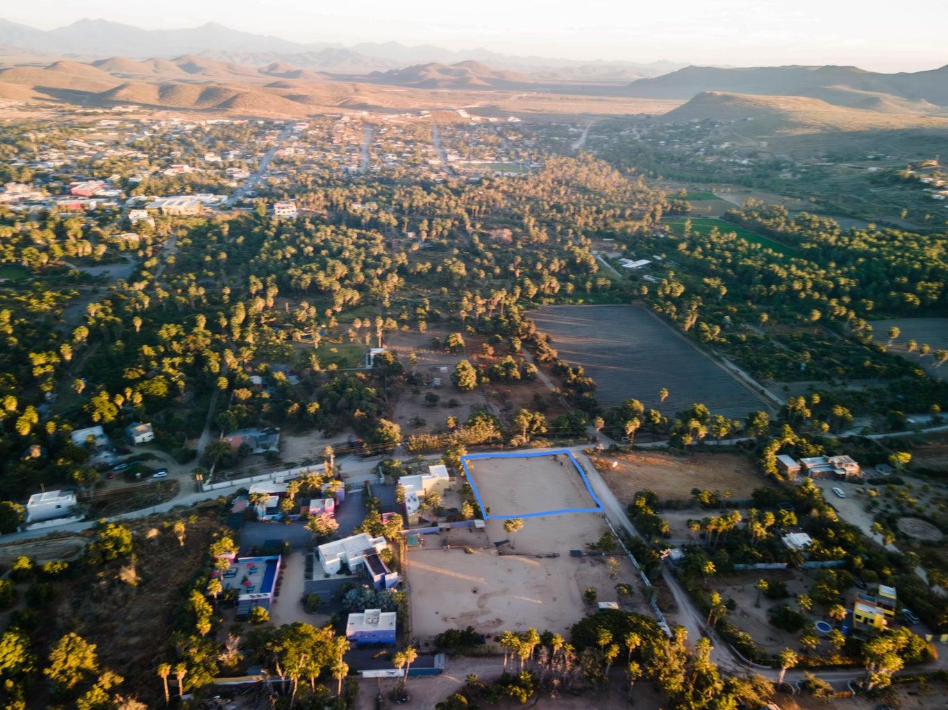 Fantastic lot located in the peaceful La Cachora neighborhood. Close to the beach, cafes, the stunning 4 Vientos yoga studio, restaurants and downtown Todos Santos. Flat lot, cleared and fenced with sewer hook up already in place and water and electric available right at the lot line. The location is right in the heart of this tranquil part of Todos Santos, with beautiful homes scattered around but mostly views of orchards, palms and greenery. This lot is the bigger of 3 contiguous lots available together totaling over 1 acre of land.A great location for home in beautiful Southern Baja!
