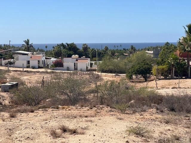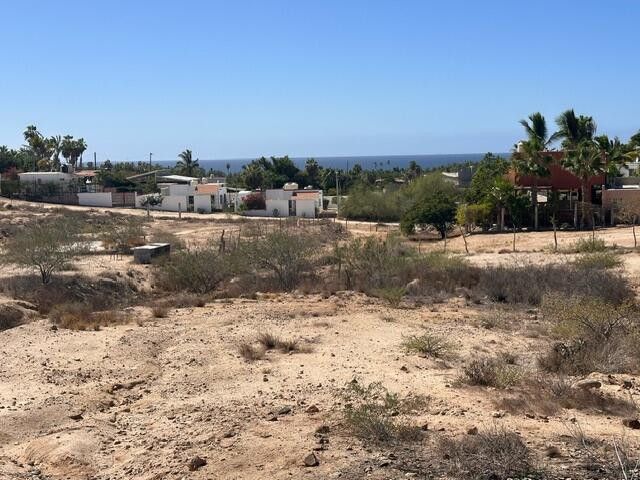 Oversized building lot with Ocean views from ground level and services in the Las Brisas neighborhood of Todos Santos. The generous size corner lot has multiple areas for building with ocean views from the southern half of the lot. Suitable for a comfortable and private residence, multiple dwellings, home with expansive gardens, or any number of options to suit. Services on the road and multiple access points as it is on a corner in this great Todos Santos neighborhood with convenient access to many conveniences, shops, restaurants, etc