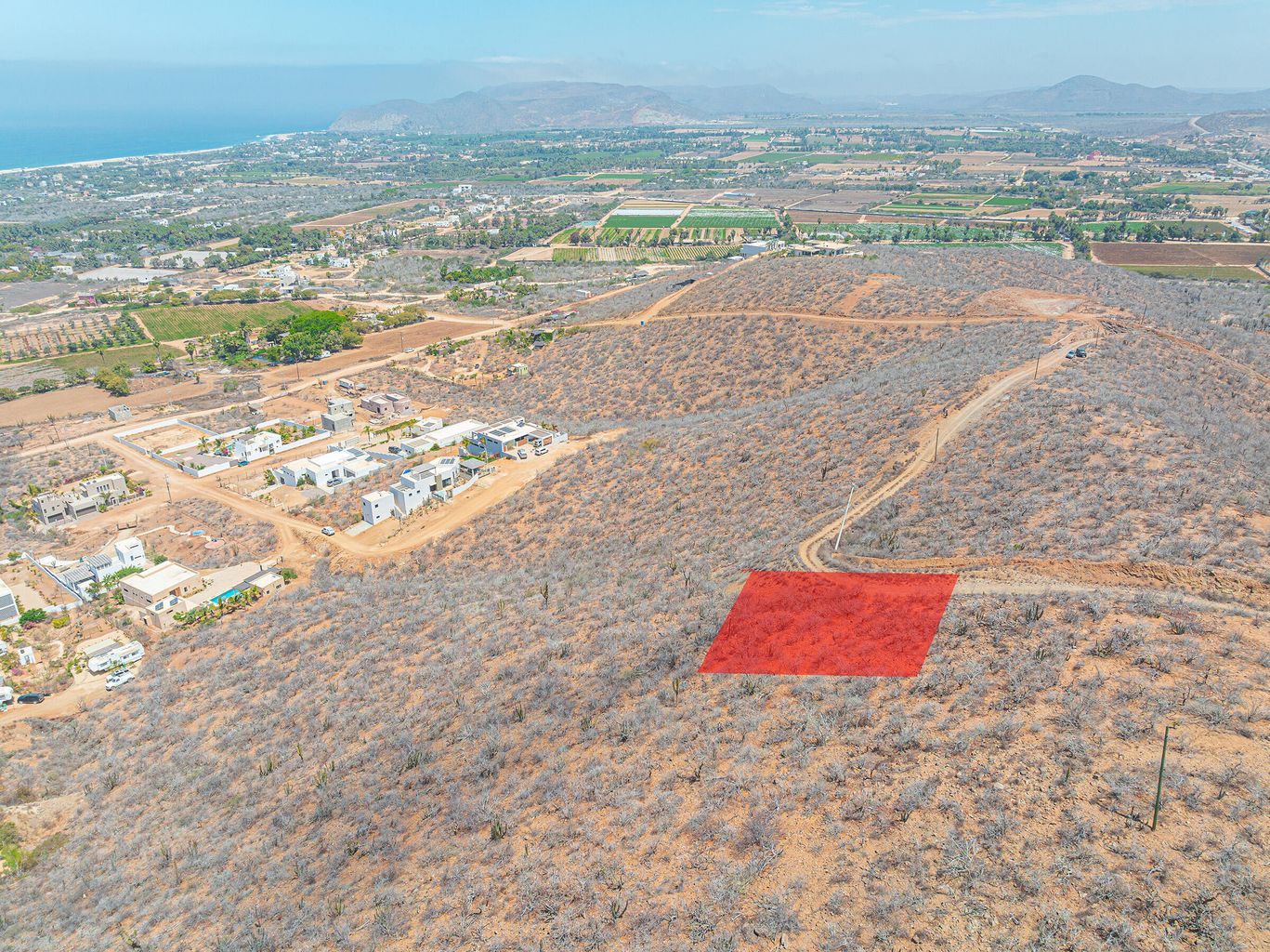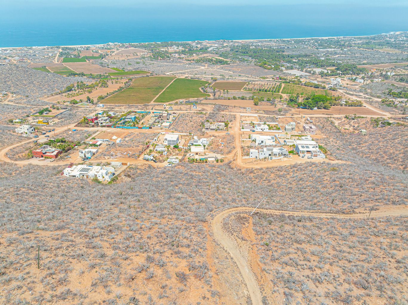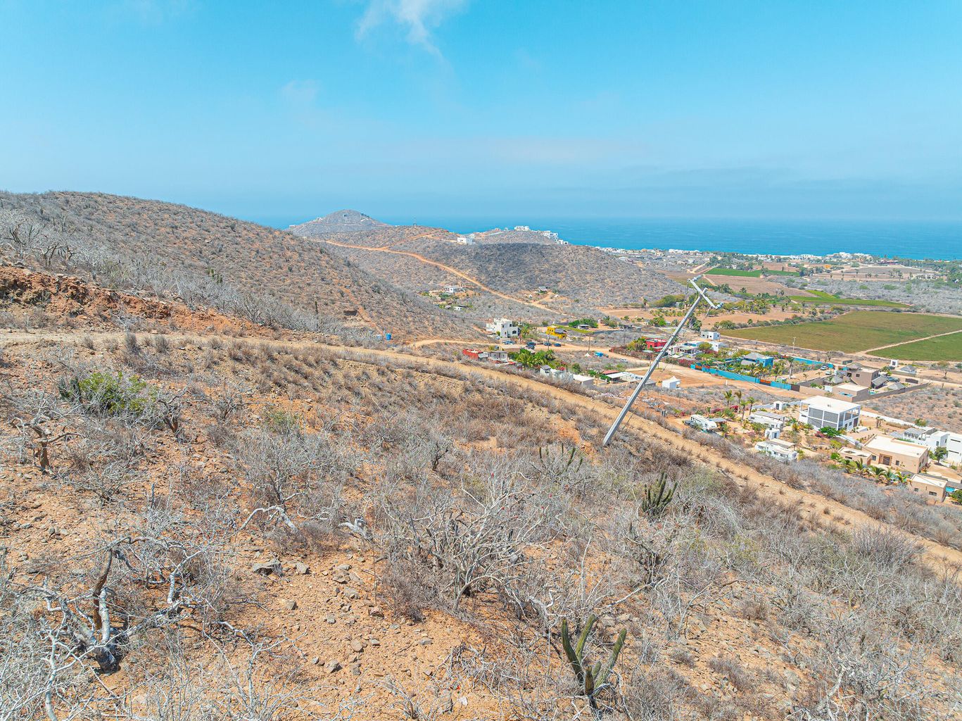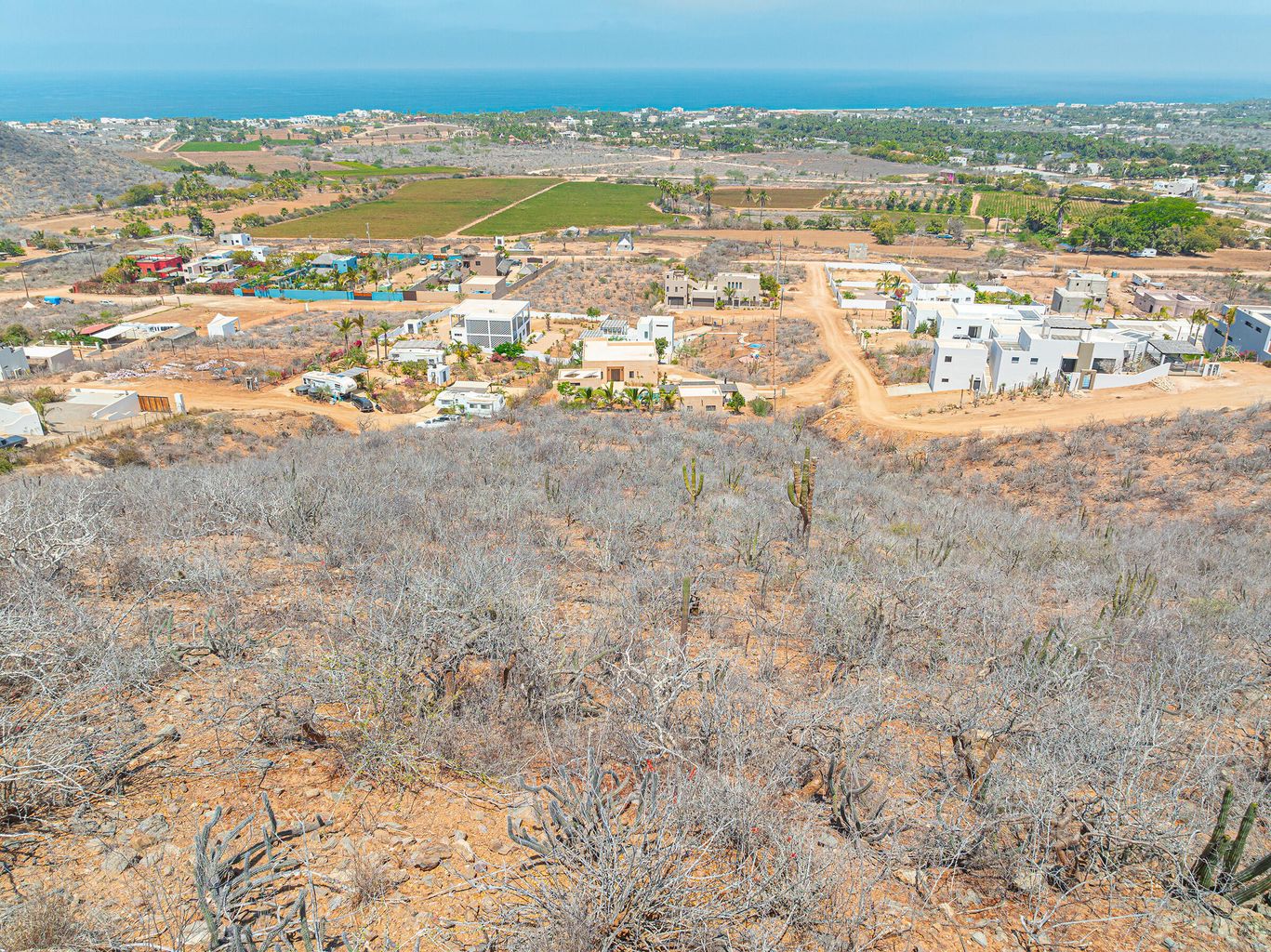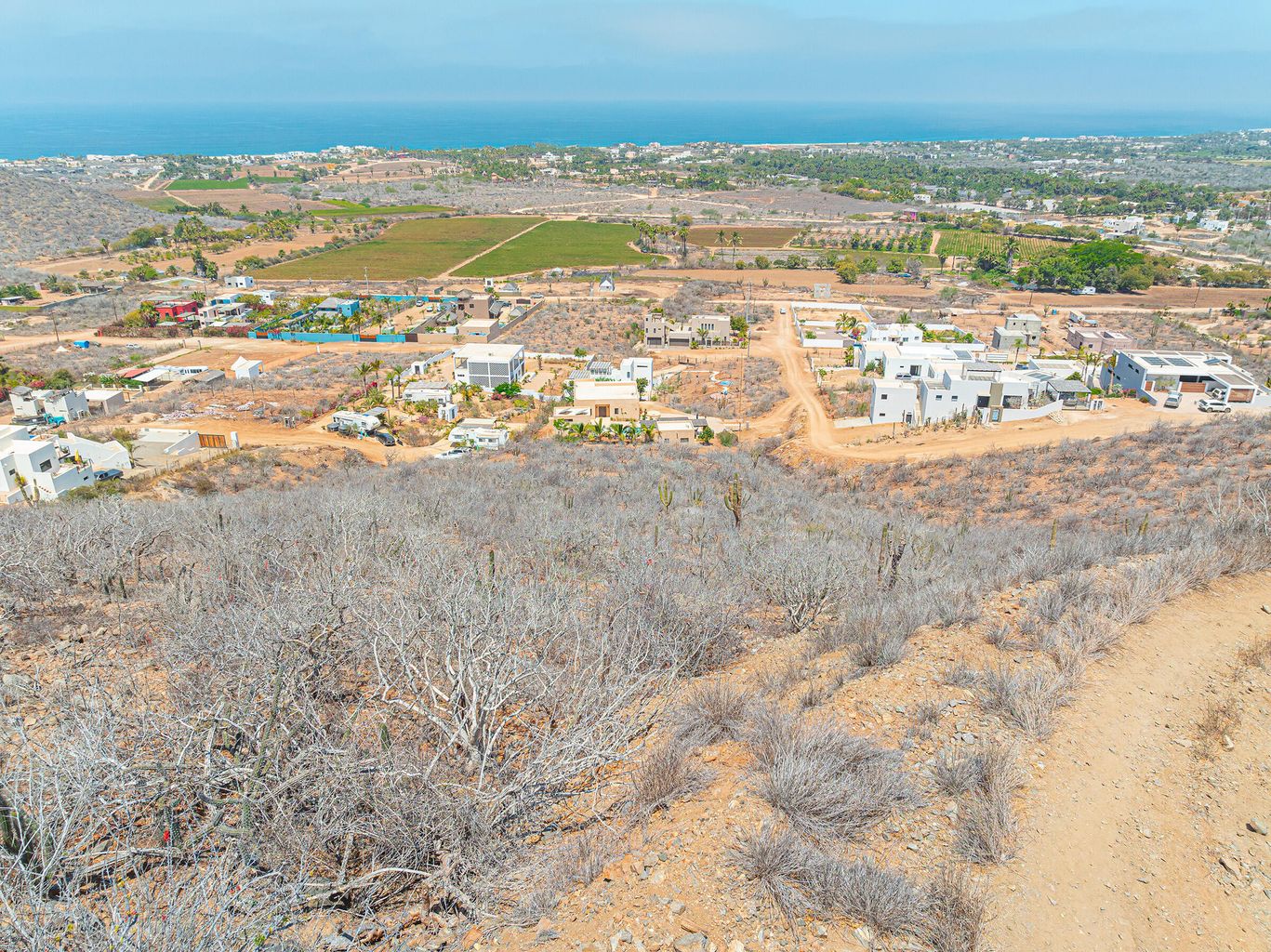 Above the palm groves and farms, on a hilltop in Pescadero's sought-after Potrero neighborhood, this homesite boasts breathtaking panoramic vistas of Pescadero's beach all the way to the point at San Pedrito, the town of Pescadero, and stretching as far as Todos Santos. A standout feature of this property is the inclusion of ''shovel ready''construction permits and engineered plans, providing a fast track to building and living in a your new home—an incredible value already baked into the sales price.The lot is conveniently located just 50 minutes from Los Cabos International Airport and 1.5 hours from La Paz Airport, situated in an up and coming neighborhood that is developing with pride of ownership luxury homes. Additionally, the seller has improved the road to ease of access.