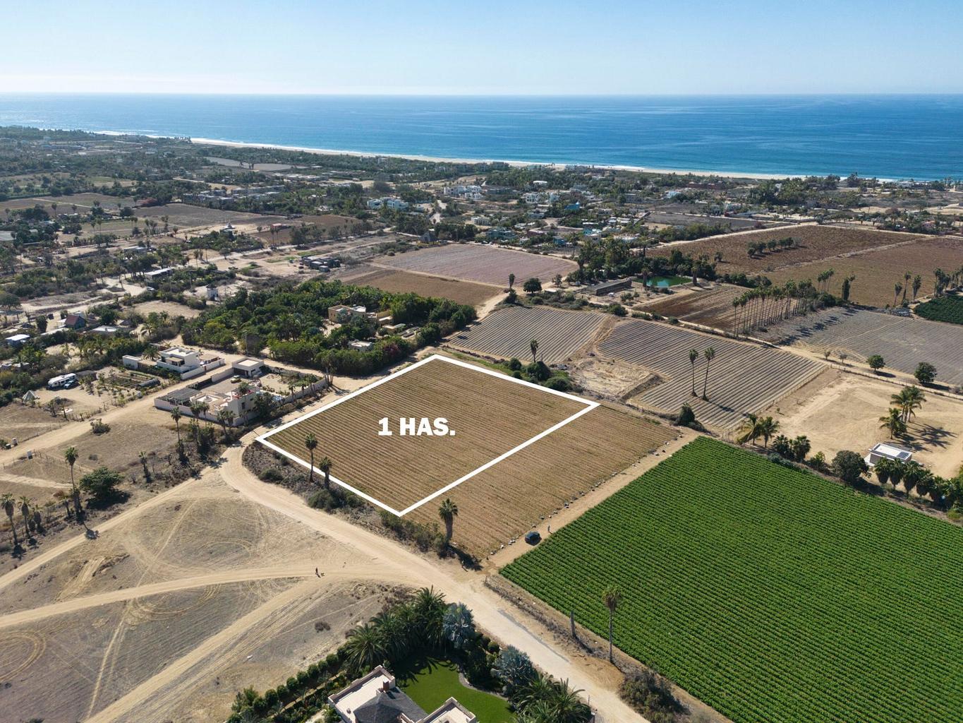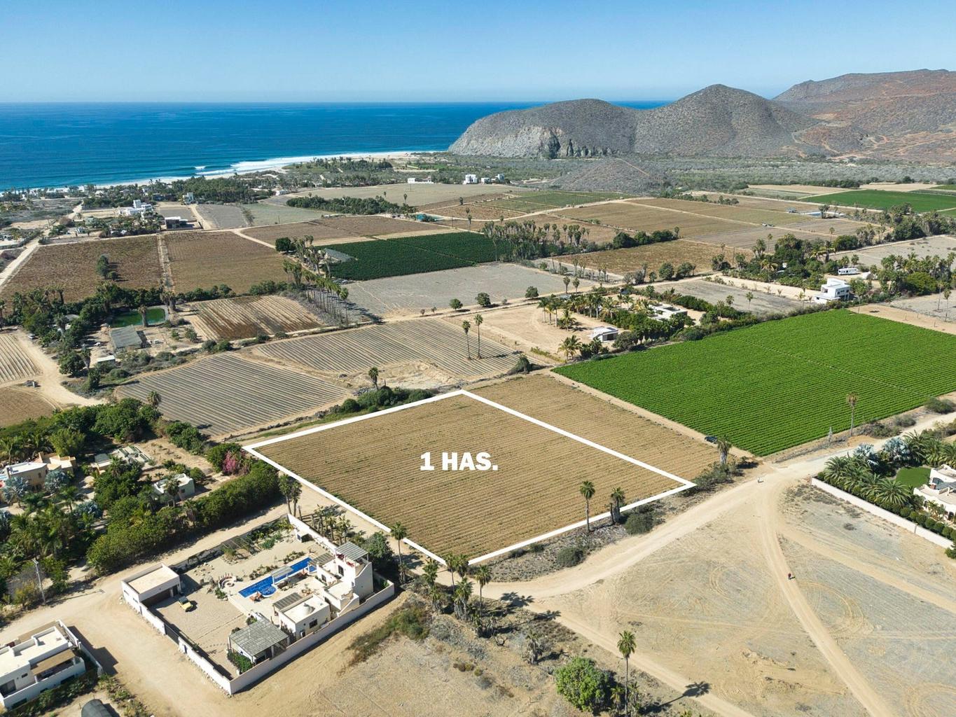 1 hectare in subdivision with land use Huerta Residential, surrounded by vegetation and houses of Residential level of high added value, only 1,500 meters / 4,921 Ft distance from the ocean in one of the best areas of Pescadero, Baja California Sur. Huerta Claudia is located on a corner with electricity in one of the fronts, currently used for planting, with water supplied by the ejido, more than 80 meters / 262 Ft of one of the fronts by 100 meters / 328 Ft of the second front. Perfect for community houses, orchards or land subdivision.
