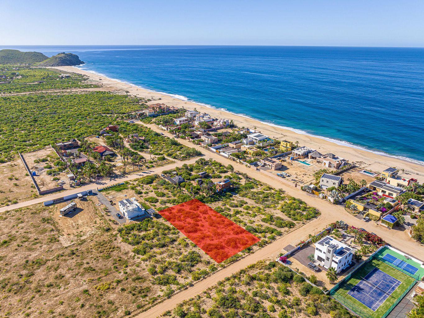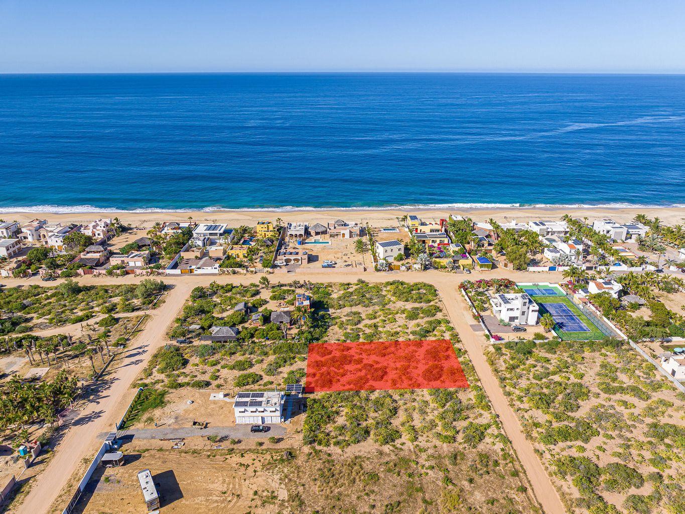 Create your own dream beach home on this 1250 m2 flat, third row from the beach, ready to build lot in Rancho Nuevo. Rancho Nuevo, located on the Pacific Ocean, is a gated enclave, just south of the famous Cerritos surf beach. It sits 40 minutes north of Cabo San Lucas and 12 minutes south of the artist community, Todos Santos. Rancho Nuevo has its own abundant supply of water and, although currently off-grid, the stunning homes in the exclusive community are readily powered by solar.