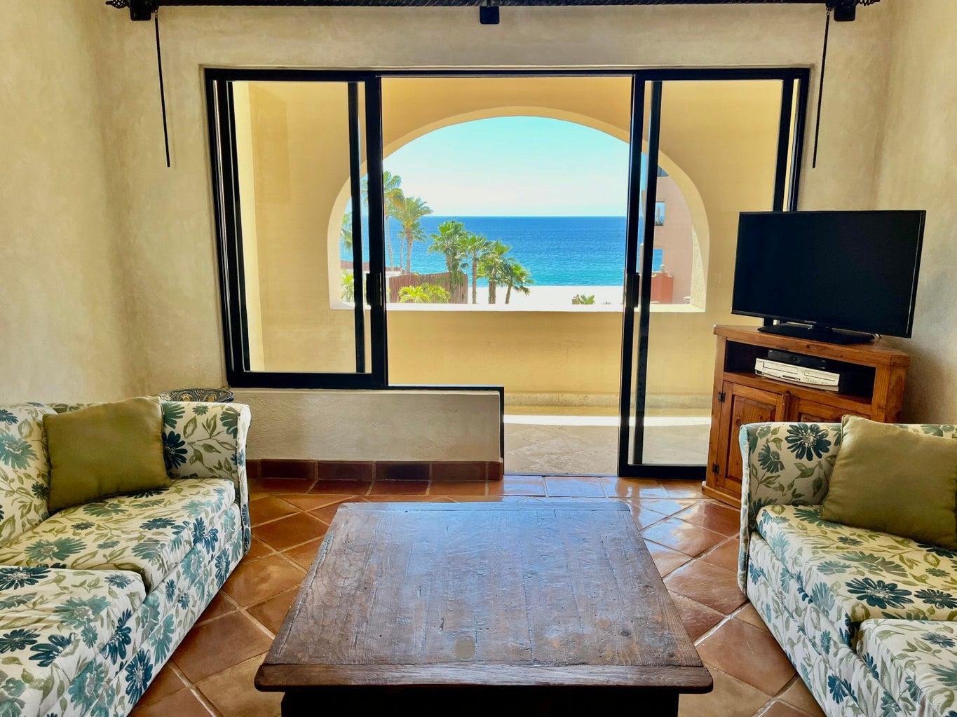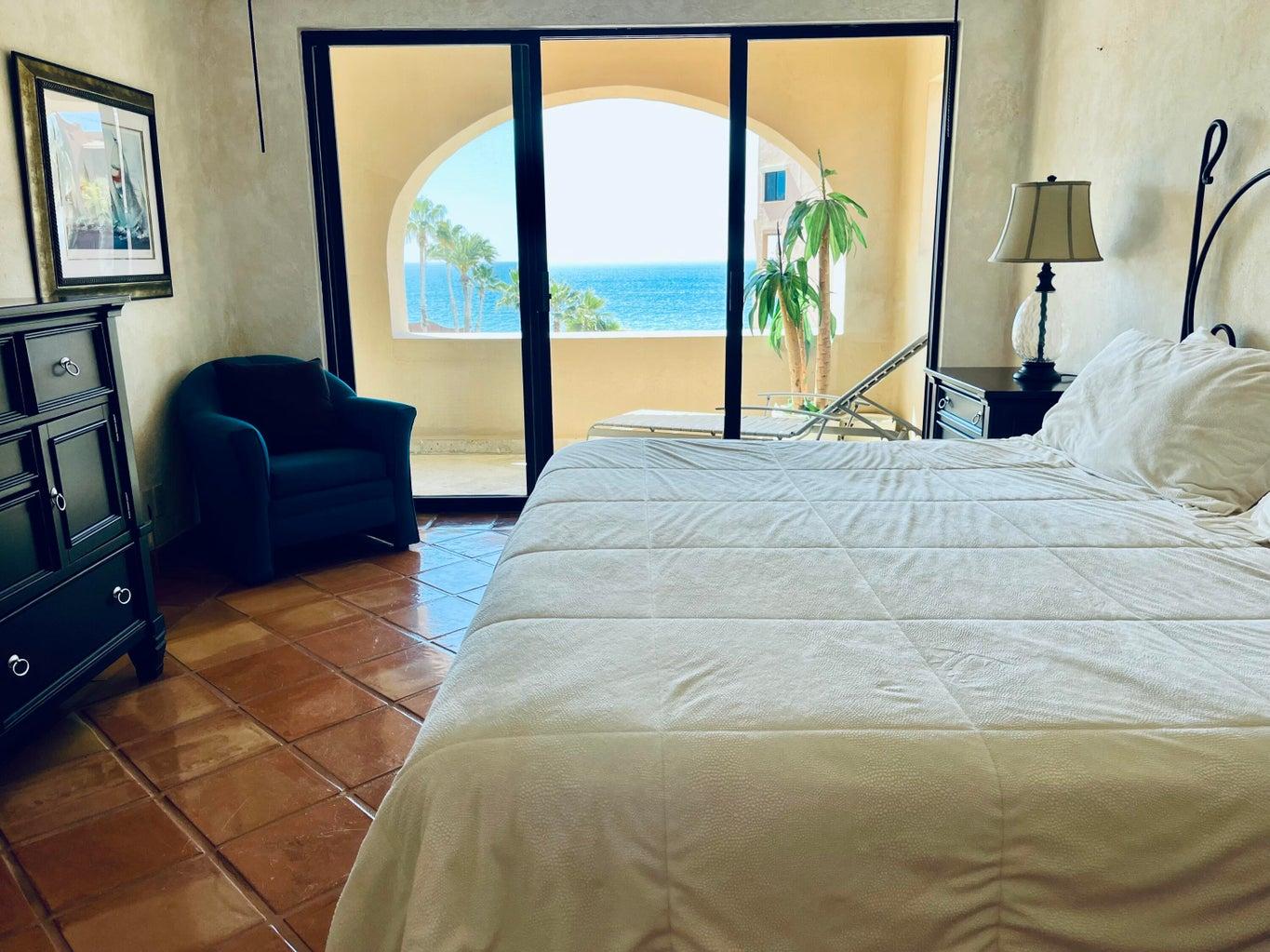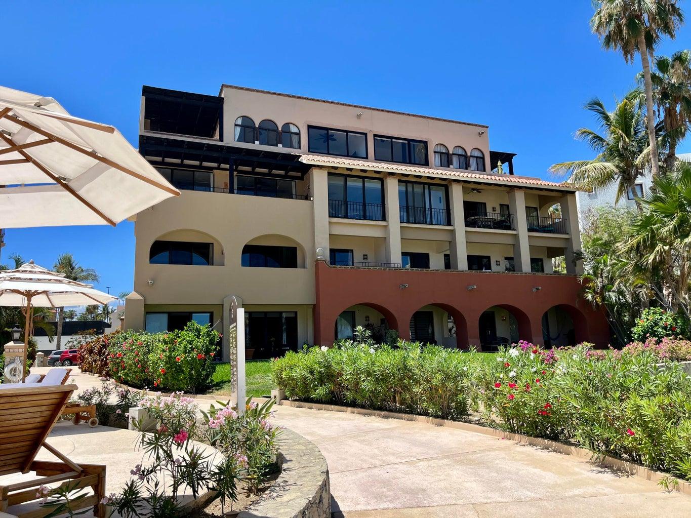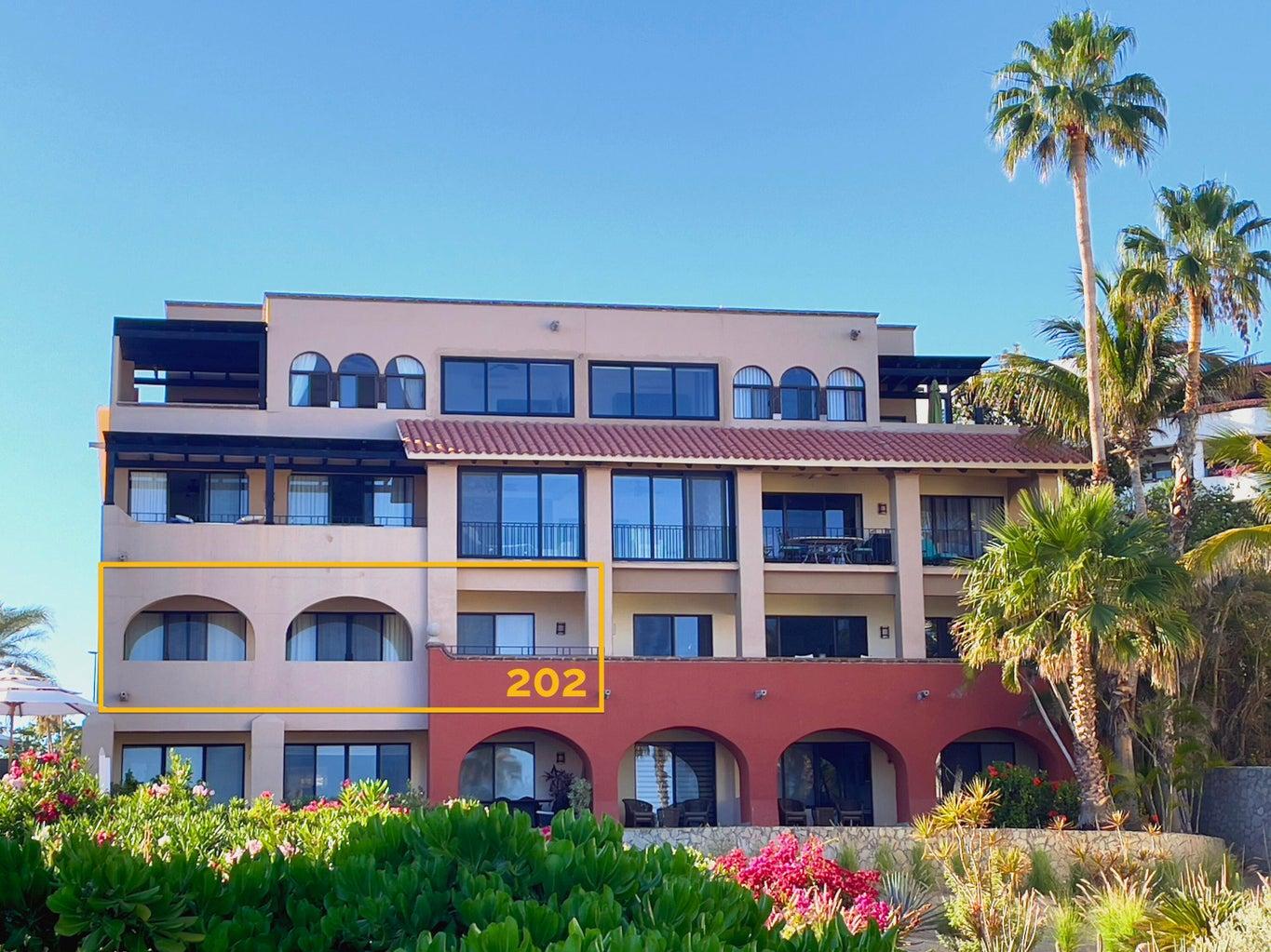 Delfin 202, an oceanfront two-bedroom condominium, is on the second floor, just steps from the beach. It is conveniently located within Phase I of the prestigious Casa del Mar. The unit is in its original state, with a practical spacious layout, featuring two mirrored ocean-view bedrooms with ensuite bathrooms. The large private terrace overlooks the serene desert garden. Perfect for immediate rental income with the potential for an upgraded-style vacation Dream Home. Adjacent to the Zoetry Hotel's beach club, gym, spa, and restaurants. Numerous common pools and tennis/pickleball courts are within short walking distance. Easy access to the world-class Cabo Real golf course elevates the resort living experience to one of the best Cabo has to offer.