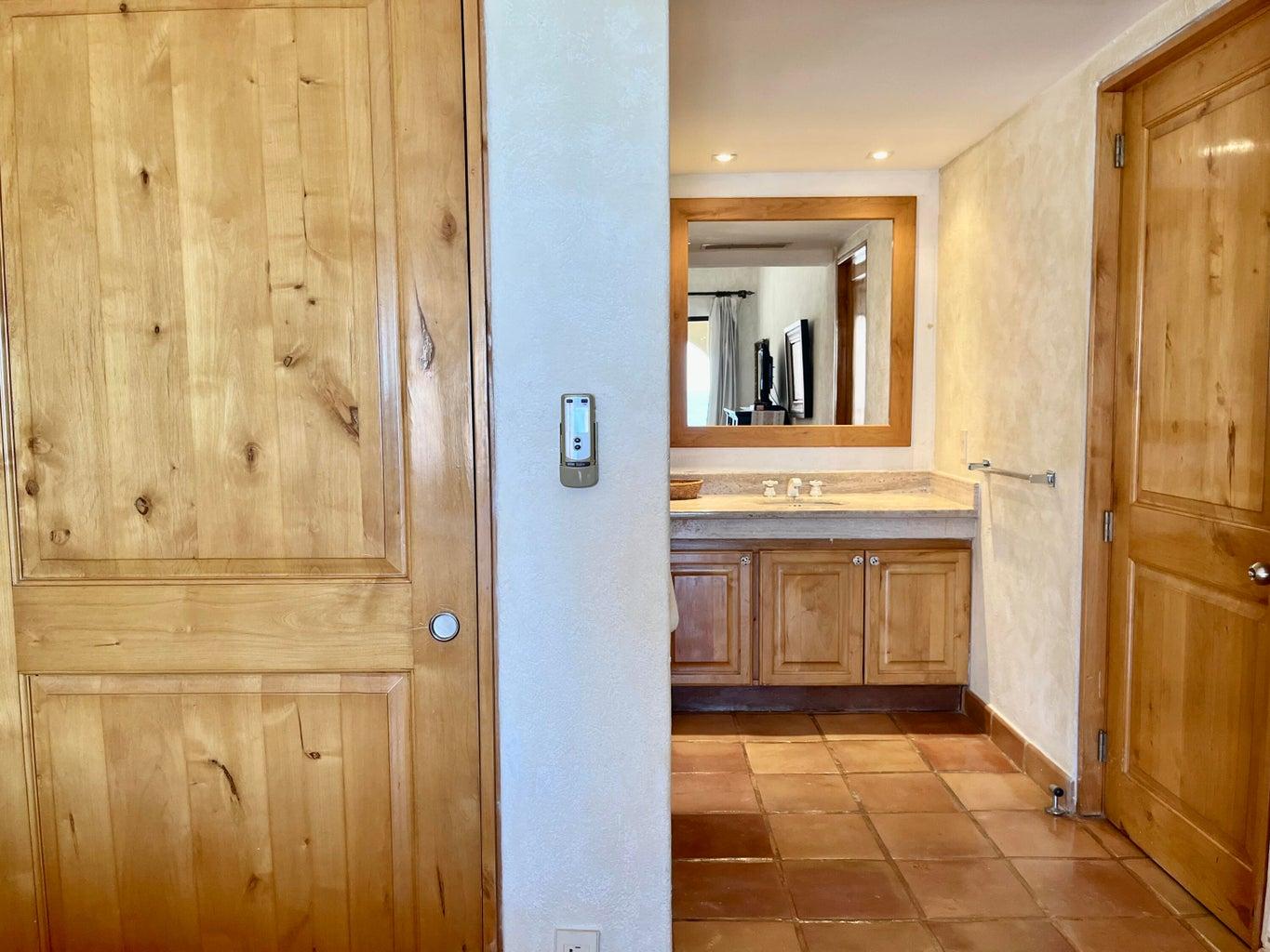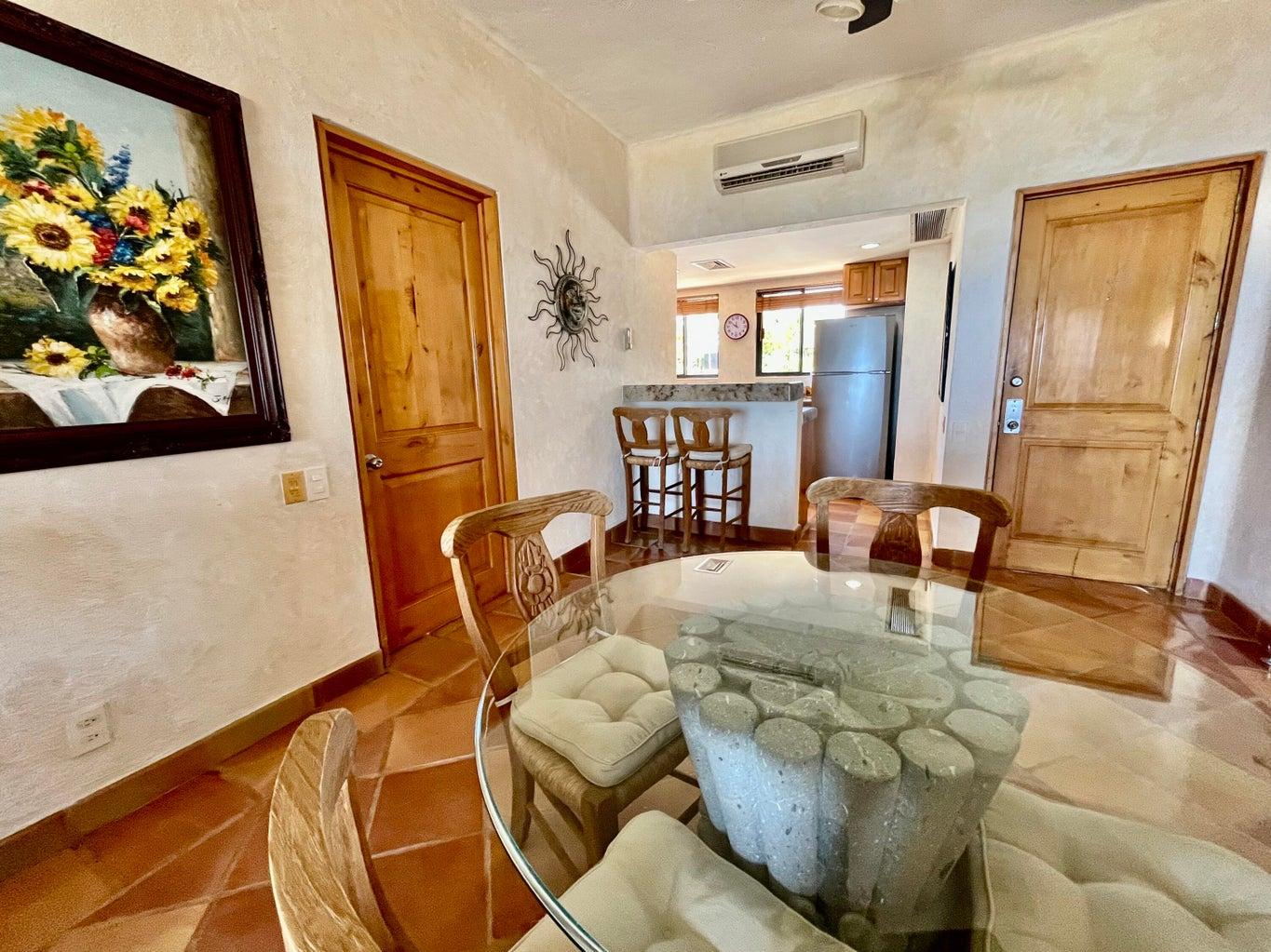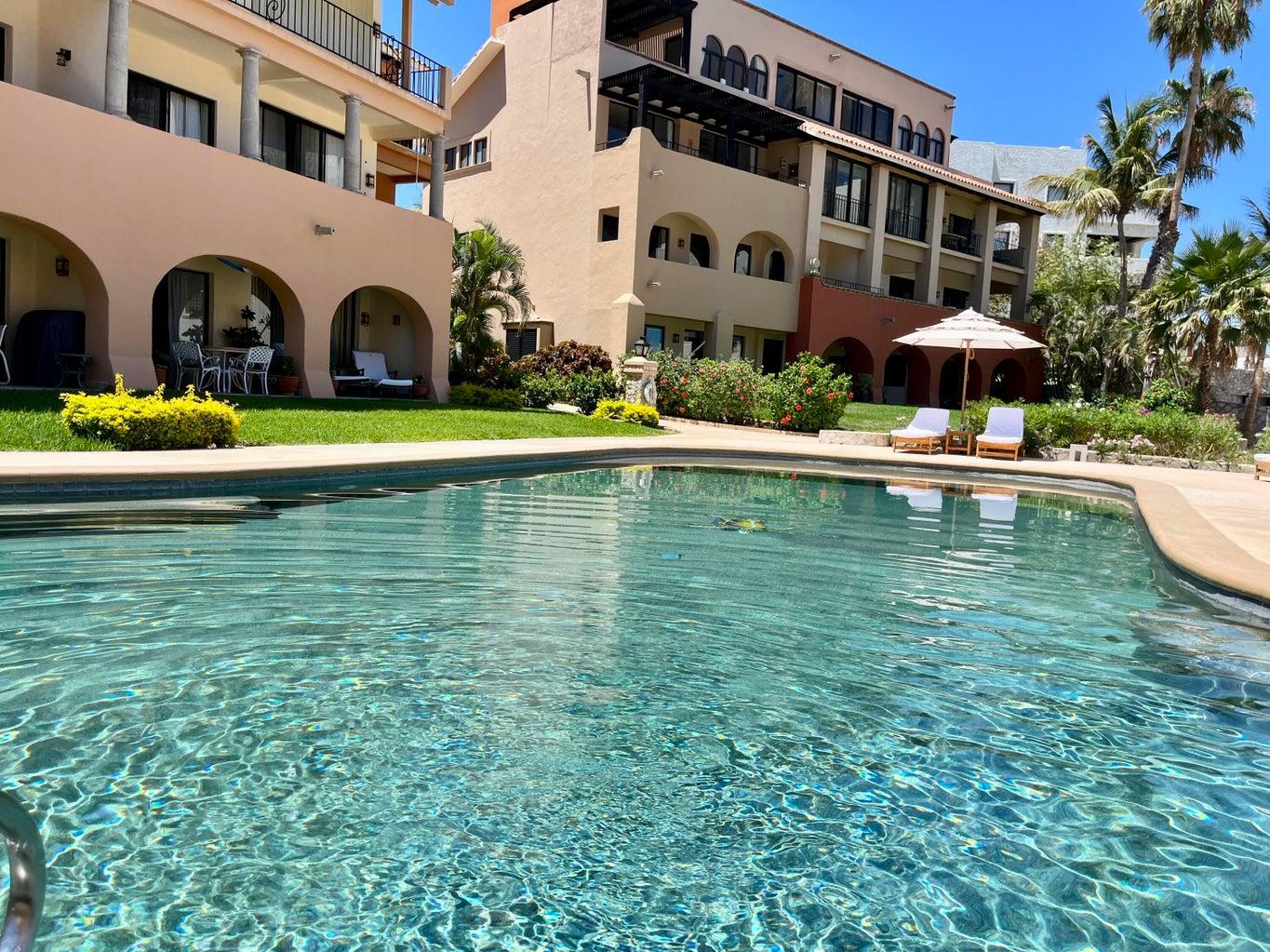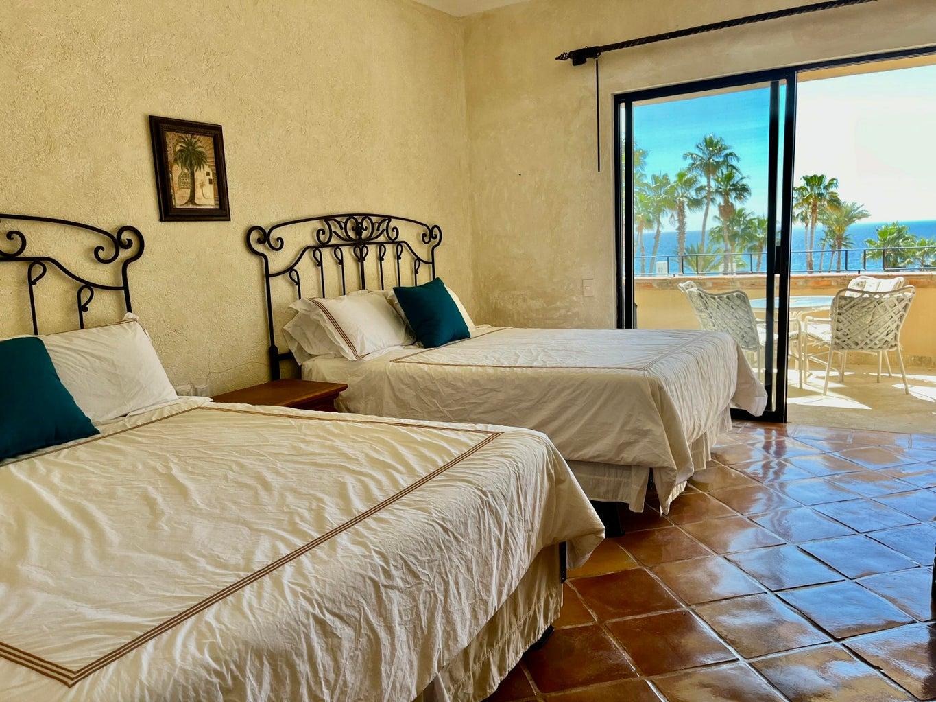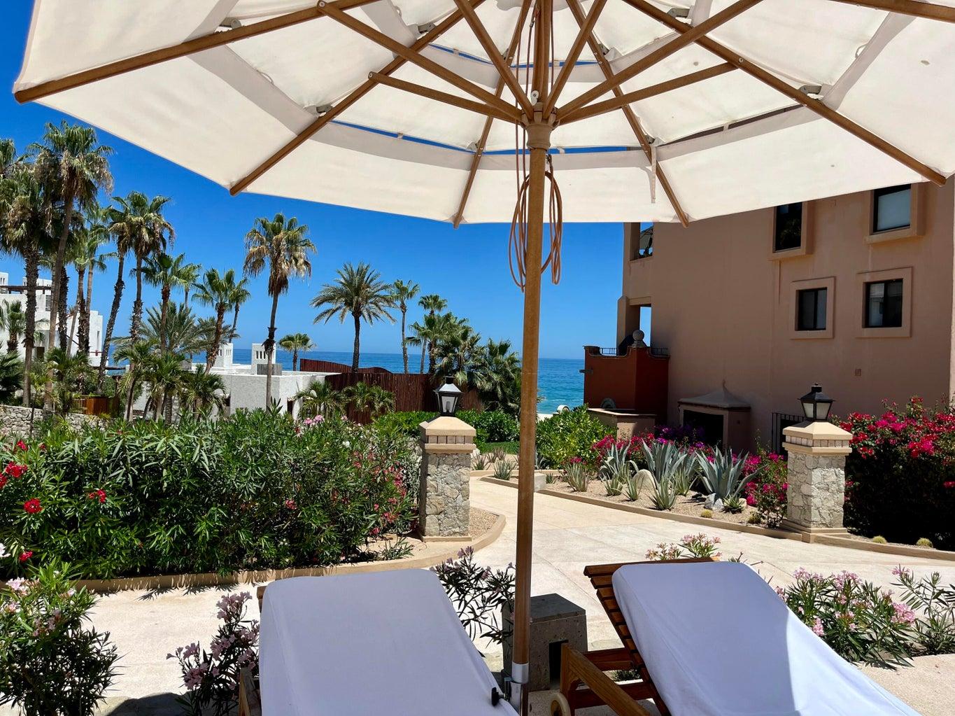 Delfin 202, an oceanfront two-bedroom condominium, is on the second floor, just steps from the beach. It is conveniently located within Phase I of the prestigious Casa del Mar. The unit is in its original state, with a practical spacious layout, featuring two mirrored ocean-view bedrooms with ensuite bathrooms. The large private terrace overlooks the serene desert garden. Perfect for immediate rental income with the potential for an upgraded-style vacation Dream Home. Adjacent to the Zoetry Hotel's beach club, gym, spa, and restaurants. Numerous common pools and tennis/pickleball courts are within short walking distance. Easy access to the world-class Cabo Real golf course elevates the resort living experience to one of the best Cabo has to offer.