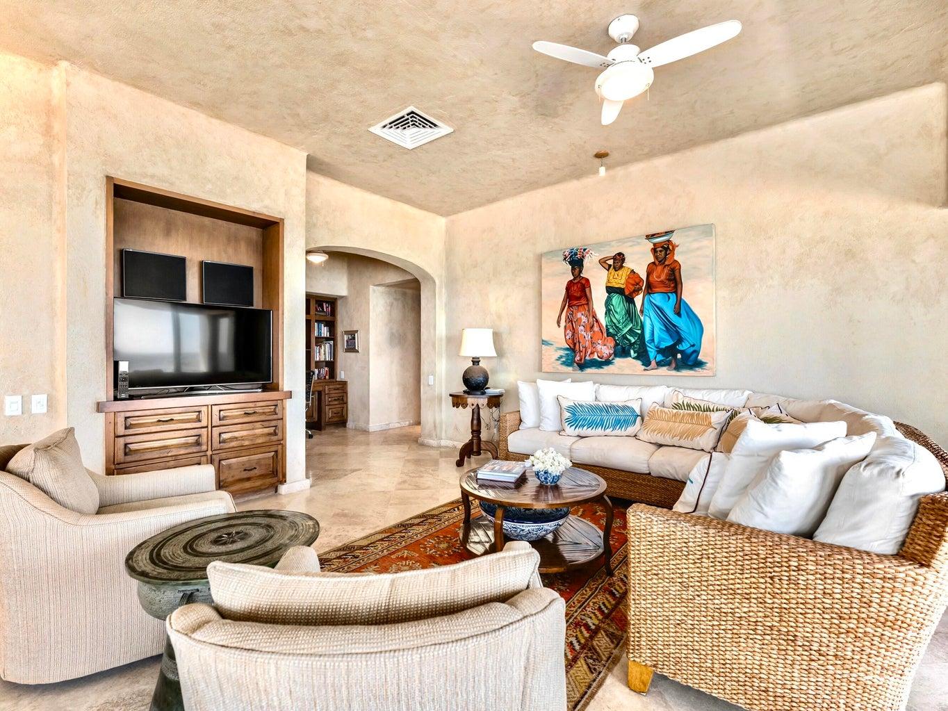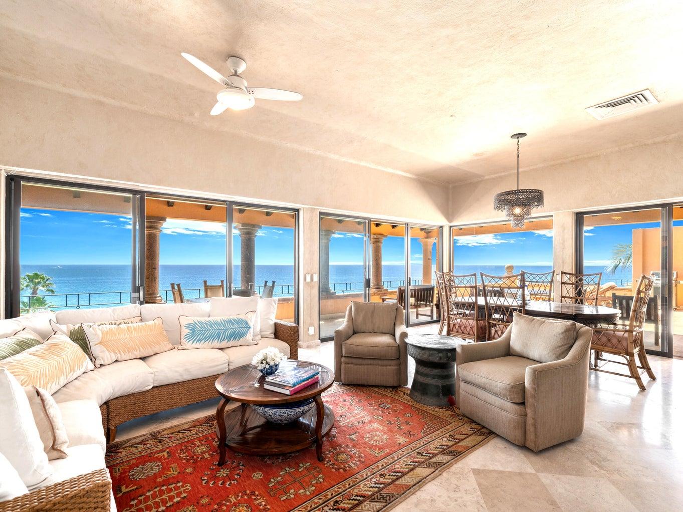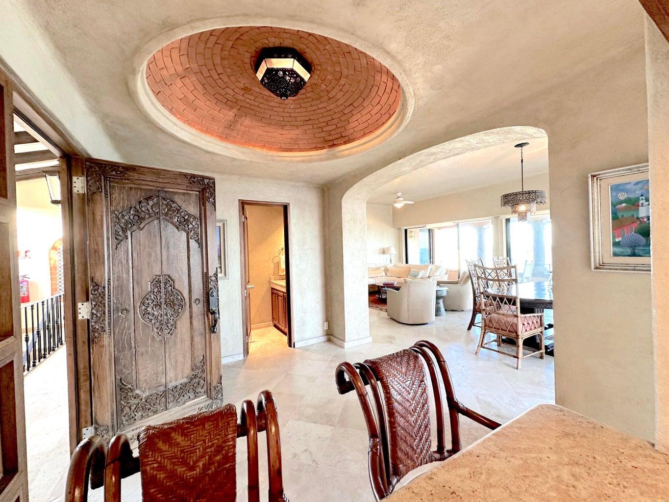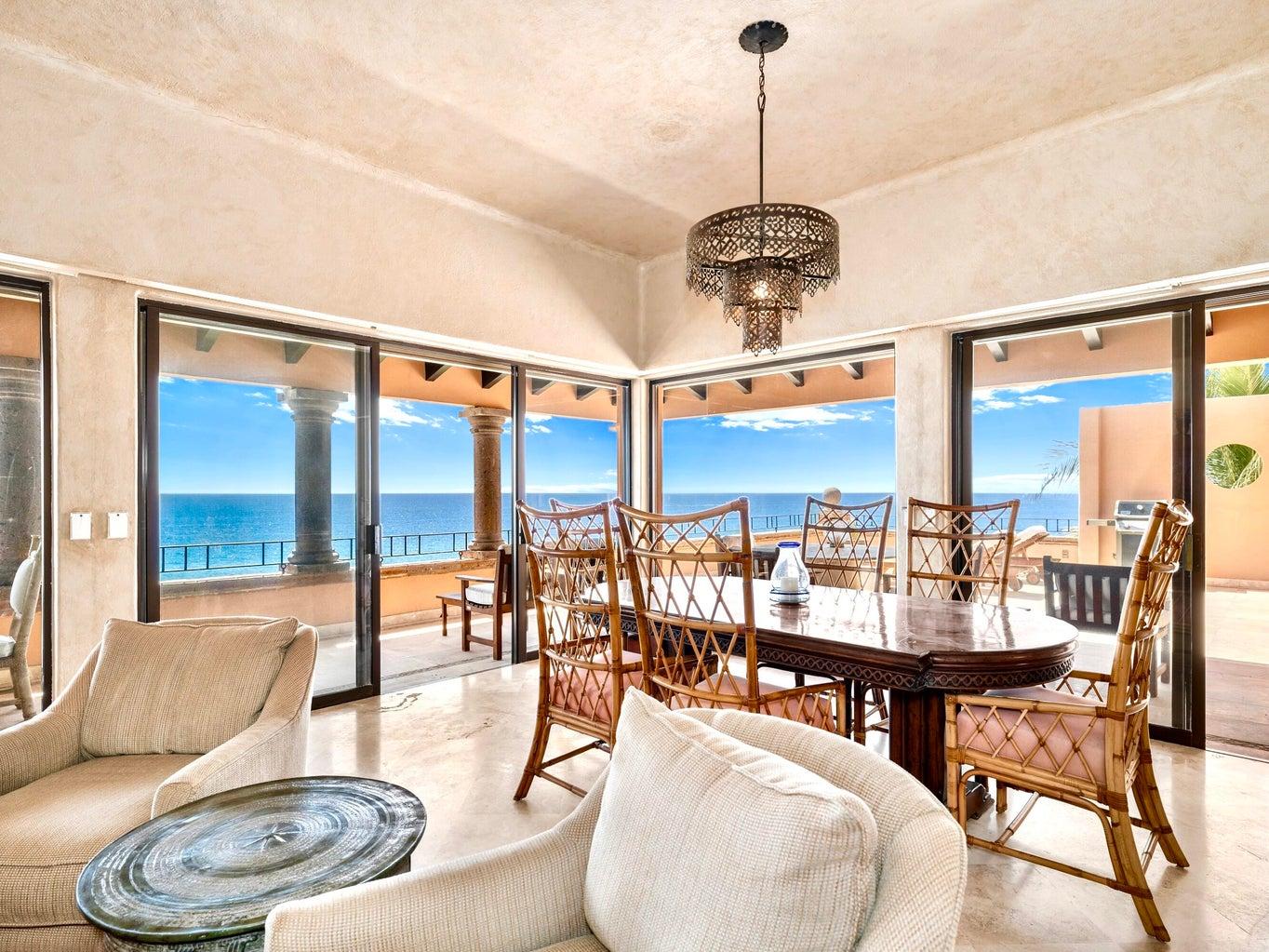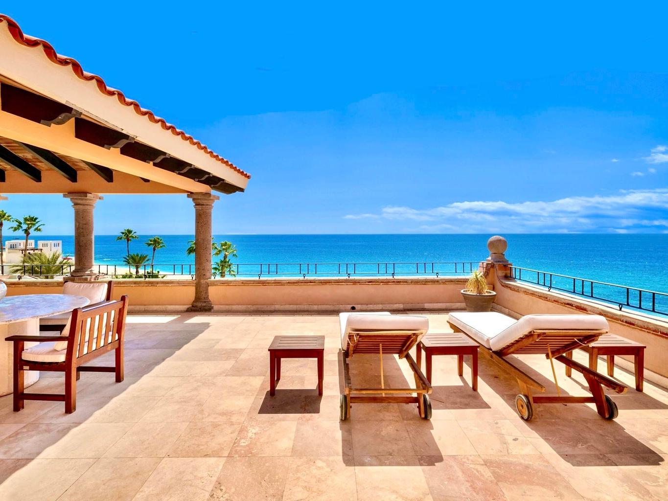 Villa La Playa one-of-a-kind Oceanfront Penthouse, a hidden gem of Los Cabos prestigious Golden Corridor. Privately situated on the Entire floor with an elevator that opens up right at your front door. One level Hacienda-style Villa, overlooking the Sea of Cortez with breathtaking panoramic blue water views that stretches out from El Dorado to Chileno Bay. Private large wrap-around outdoor terrace offering an unparalleled lifestyle with stunning sunrises and romantic sunsets. Full access to amenities of Zoëtry Resort & Spa and Casa del Mar: 8 swimming pools, swim-up bar, restaurants, beach club, spa, gym, tennis & pickle-ball courts, dining at the beach & Cabo Real championship golf course right across the street. Two garages with storage available for additional $40K each.