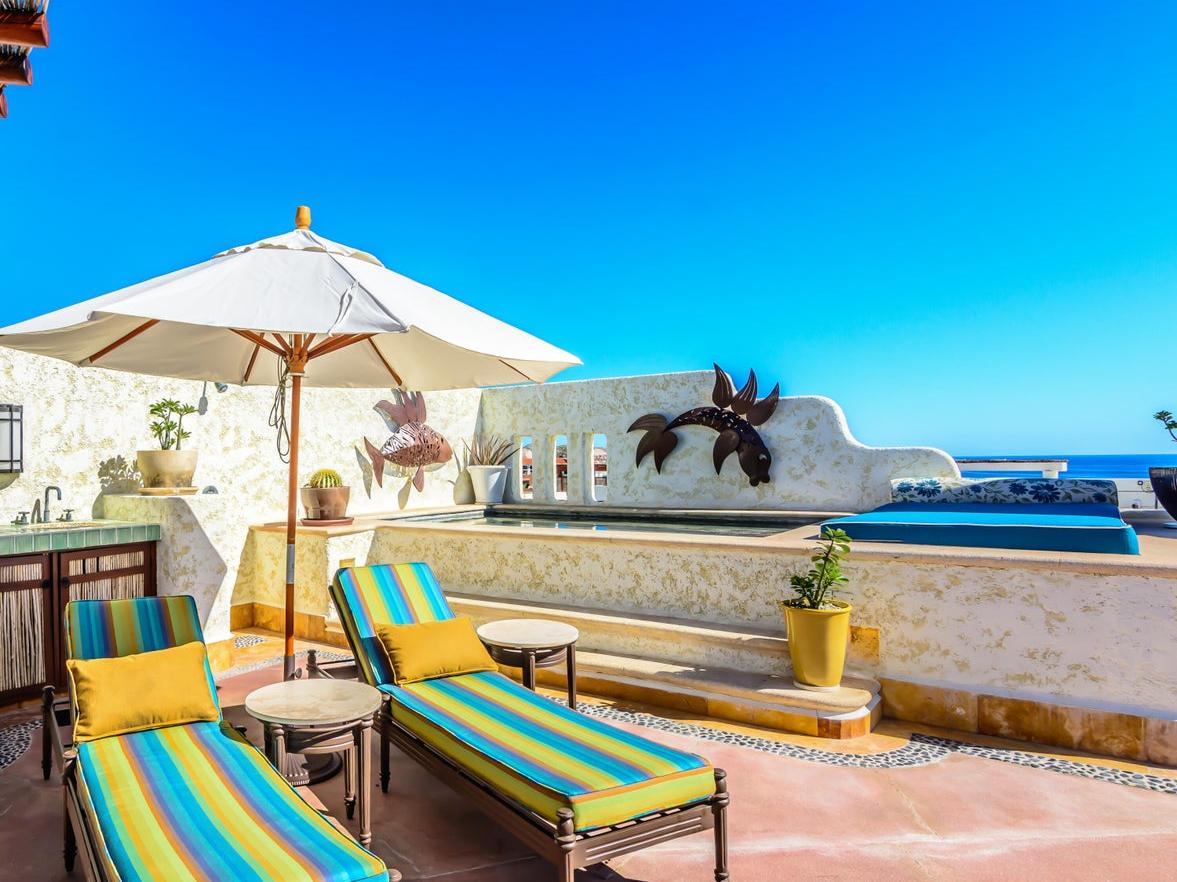 Featuring 4,900 sq. ft. of living space, this exceptional penthouse villa offers two master suites in addition to a guest bedroom. The expansive living room connects to a private dining area and full kitchen with with every modern convenience. Outdoors, two suite-level terraces and an inviting rooftop terrace, complete with loungers and a plunge pool with spa, present magnificent views of the Los Cabos coastline. Accessed by a private elevator, this one of a kind luxury three bedroom penthouse in Las Ventanas is truly unmatched.