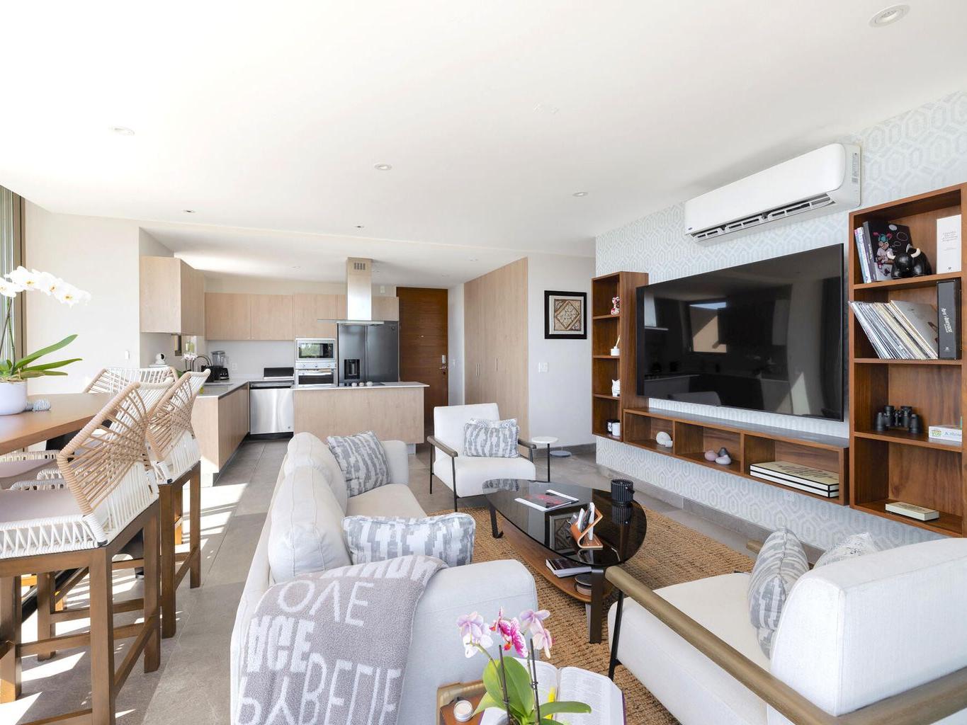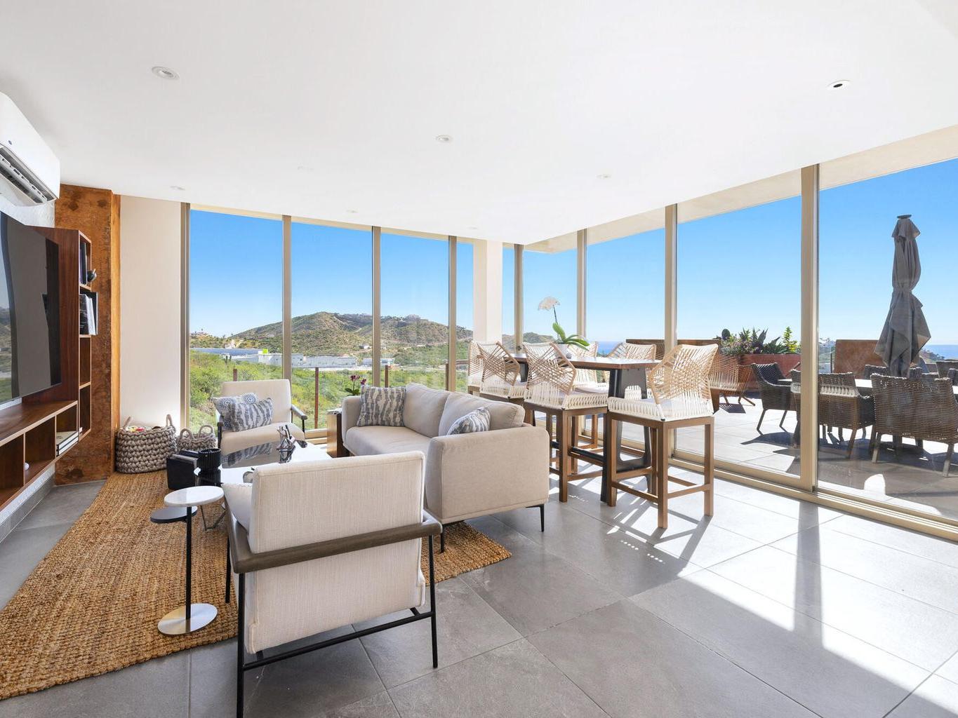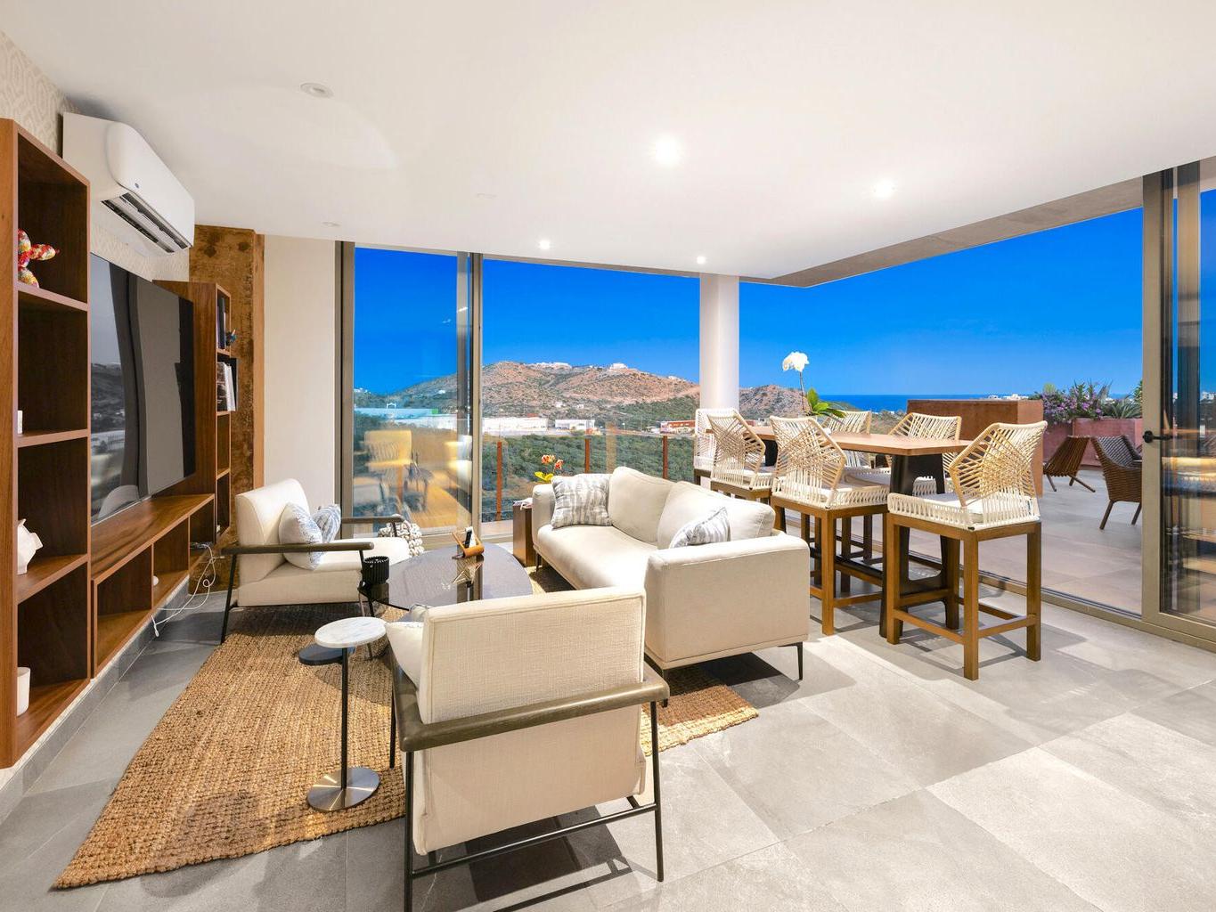 Stunning Contemporary-style Penthouse located within the exclusive community of Ladera. This penthouse situated on the entire floor, offers three bedrooms and three bathrooms, with each bedroom featuring a private terrace that boasts breathtaking mountain and ocean views. The design embraces a light and airy, open-concept layout, creating a seamless transition between indoor and outdoor living spaces. The interior effortlessly extends to a spacious outdoor Entertainment Terrace, complete with a dining and cocktail lounge area. This exceptional space provides spectacular ocean views, making it perfect for hosting dinner parties or family gatherings in style. It comes with brand new furniture, professionally decorated in a stylish contemporary design with high-end finishes and appliances.