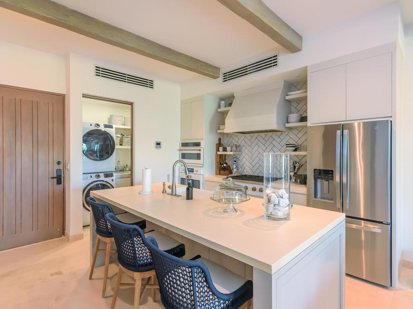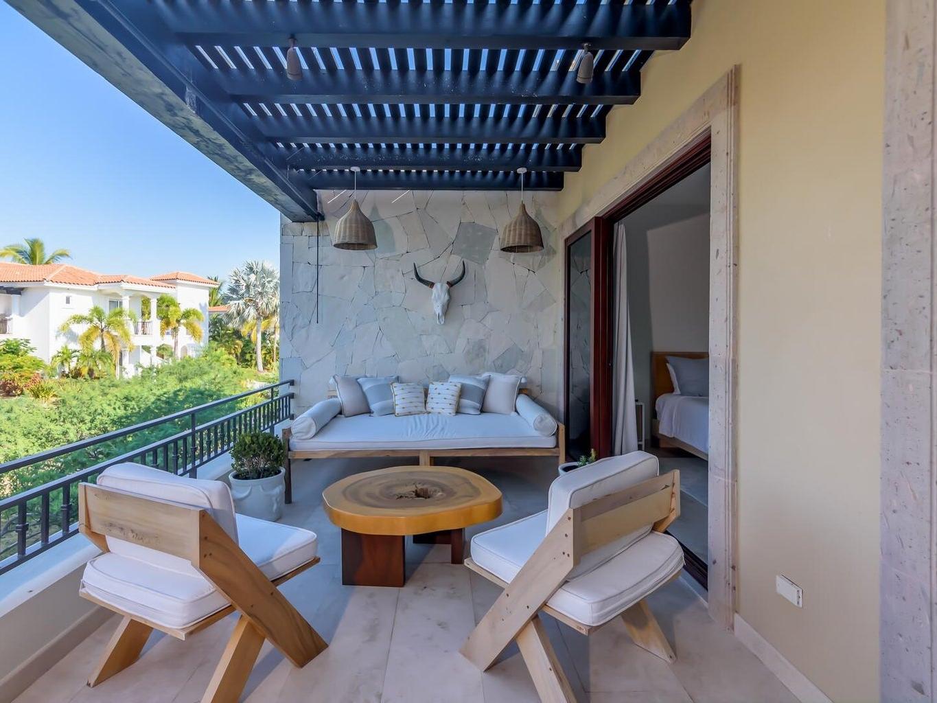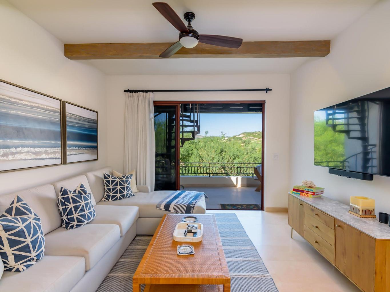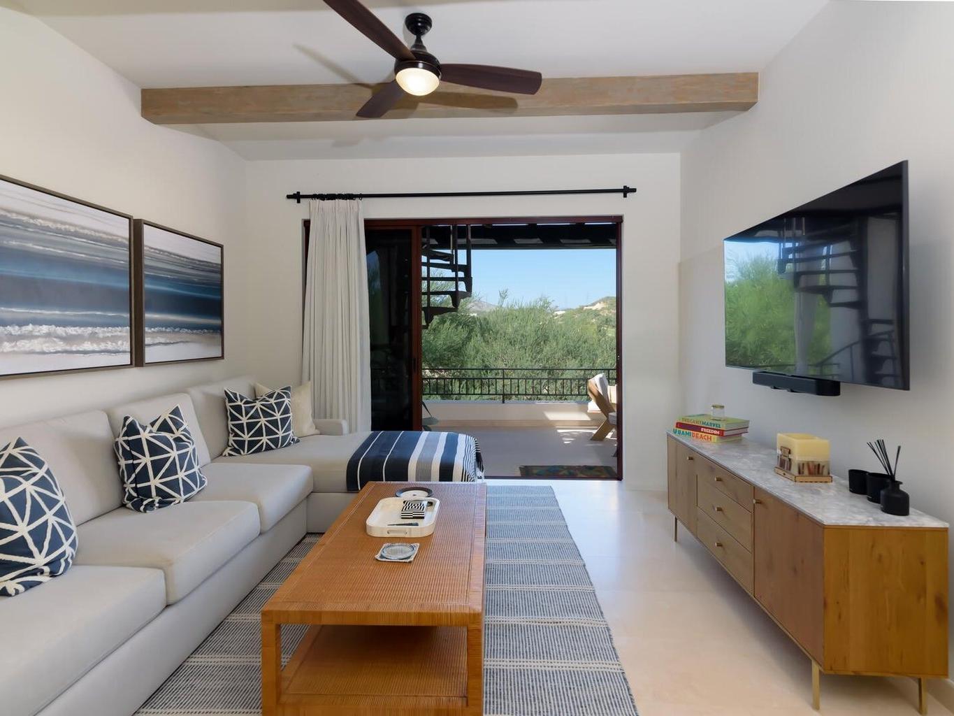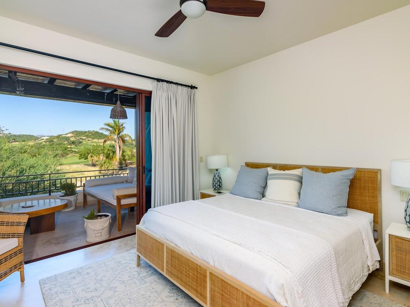 Palmilla, one of the most sought-after neighborhoods in San Jose. Beautifully decorated condo with clean lines and elegant finishes at Palmilla Dunes. No expense was spared in the upgrades, beginning with the beautiful all-white and gold accented kitchen with Travertine flooring, Quartz countertops and top of the line GE Café Appliances. Open concept floor plan leads from kitchen and dining room to the living room that is perfect for entertaining. Serena Lilly and custom-made furniture completes the look. Two large bedrooms, ensuite baths and ample size closets. Furniture package sold separately and negotiable directly with seller.