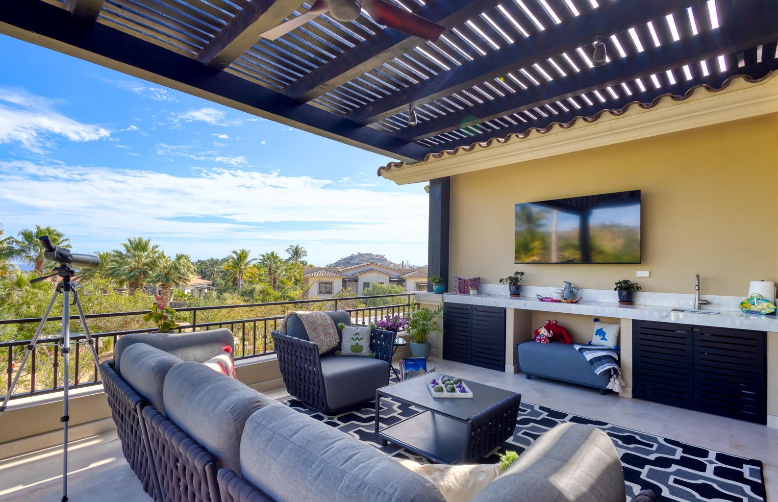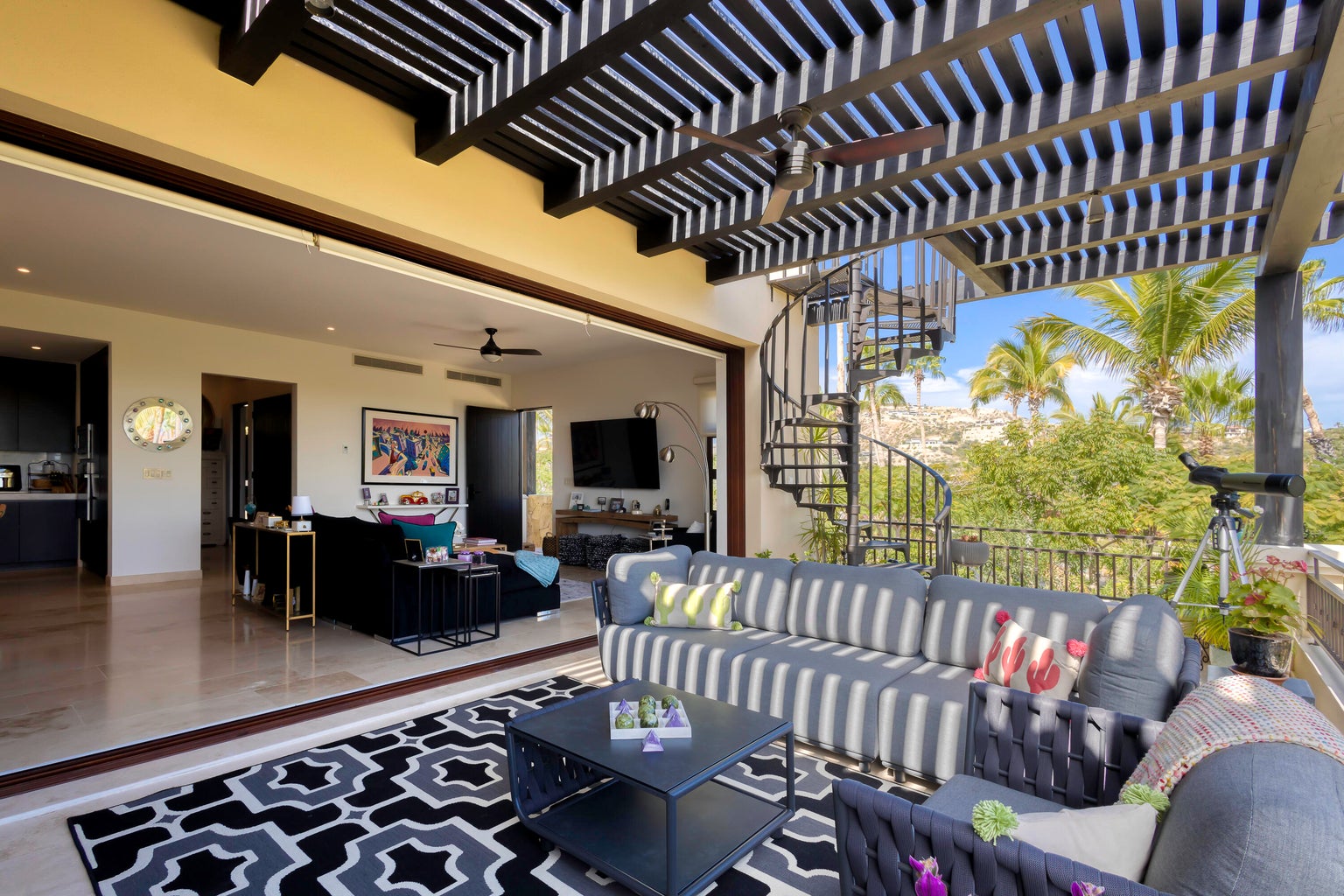 On the rooftop you'll enjoy an outdoor living space perfect for relaxation and entertaining. Featuring a built-in stone firepit, a brand-new, 5-person, Hot Spring Jacuzzi ($20,000), and outdoor furnishings outfitted with custom Sunbrella cushions and coordinating pillows.
