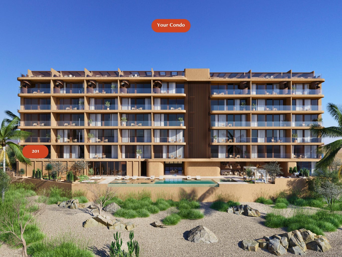 Welcome to Santarena, an exclusive development in the prestigious Cerro Colorado area, where luxury meets the beauty of Baja California Sur. Located on the 2nd floor, Condo 201, part of the Santarena Plus (Model B), offers a well-designed layout with stunning ocean views. Featuring 2 spacious bedrooms and 2 bathrooms, this unit perfectly balances comfort and sophistication. Residents enjoy access to high-end amenities, including a gym, Zen garden, fire pit, BBQ area, swimming pool, and Jacuzzi. The property also includes an on-site restaurant and café, providing the ultimate luxury coastal living experience. Whether for a serene retreat or an active lifestyle, Condo 201 at Santarena is ideal for those seeking elegance and convenience in Los Cabos.