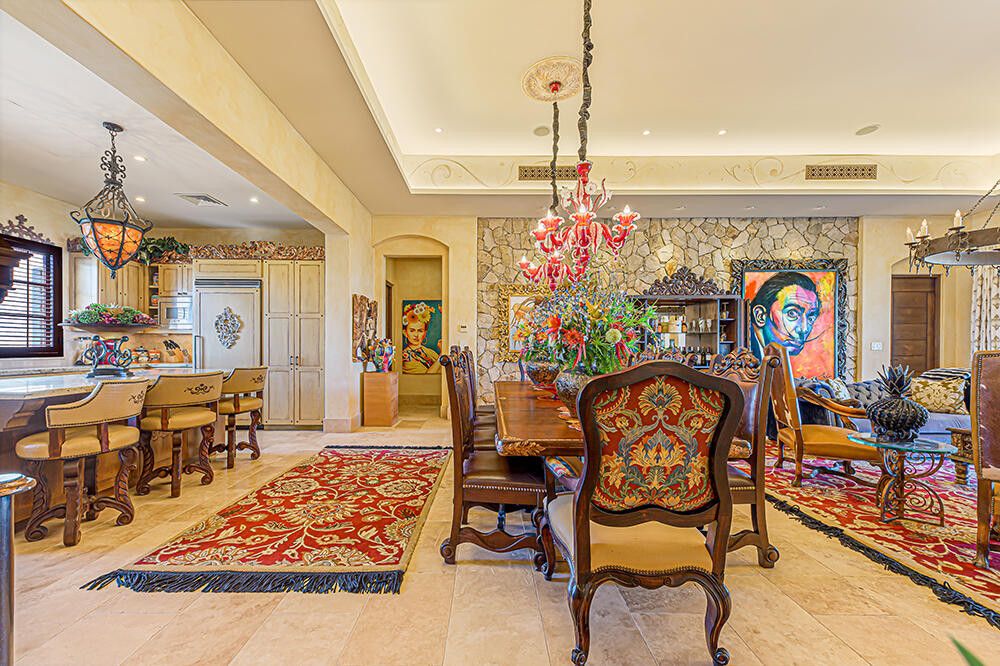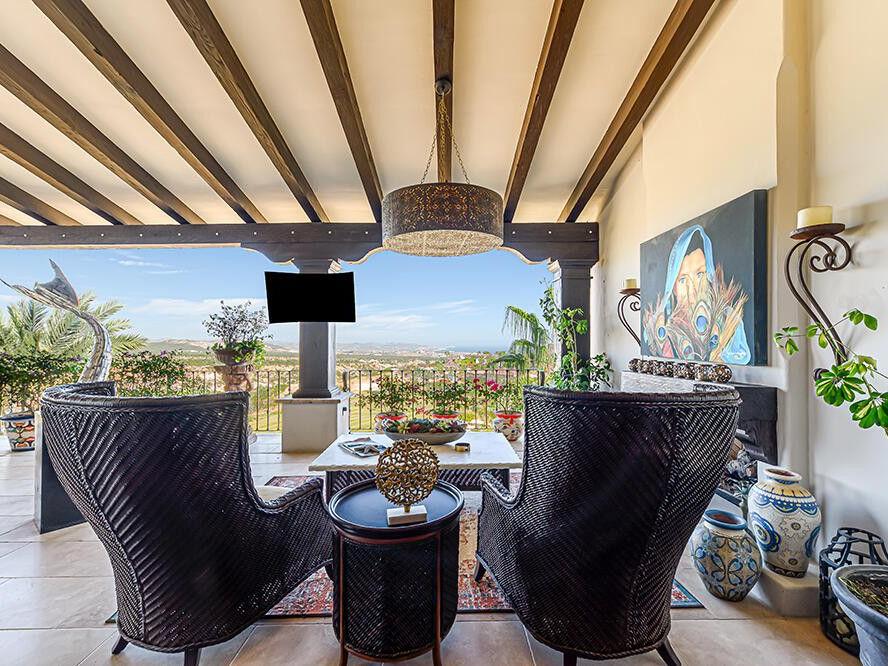 This partially-furnished Verandas Penthouse maintains its Latin roots with a fun, colorful, cozy transitional style that is synonymous with Mexico! The living room features lofty 13' coffered ceilings, a charming kitchen and living area that expands seamlessly onto a shaded terrace, capturing the azure waters of the Sea of Cortez. Veranda A-301 has custom finishes and features throughout, located steps away from Querencia´s world-class Clubhouse Village, making the amenities truly an extension of your home.