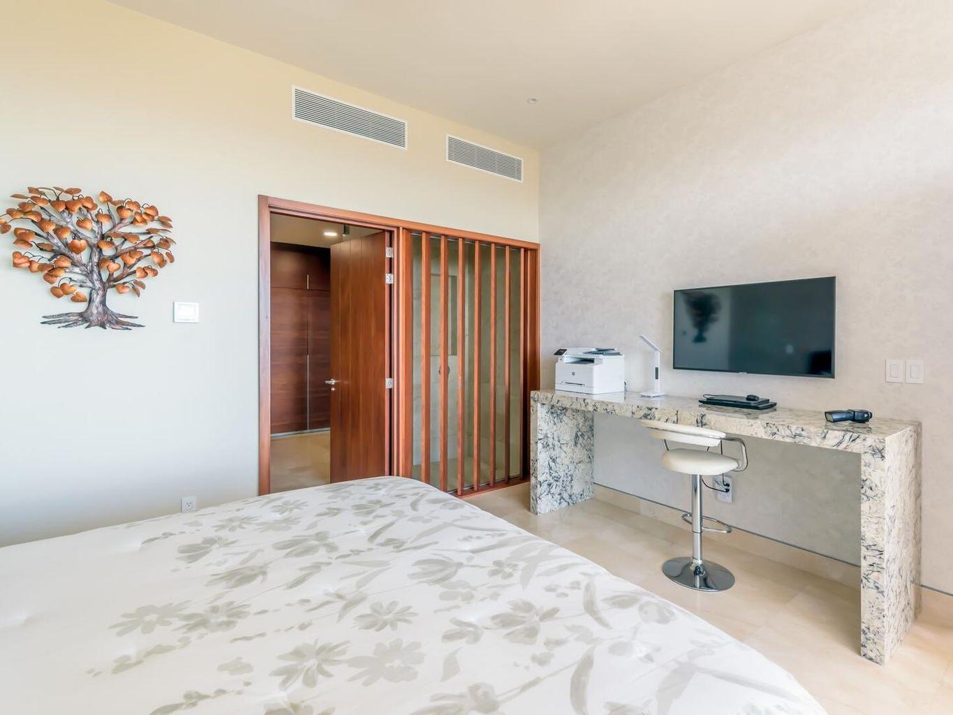 This exquisite 3 bedroom 3 bathroom penthouse condo sets itself apart from the rest. Located in the first building the Velamar development in Rancho Los Tules. The location is perfectly nestled in the middle of the corridor close to San Jose dining and Los Cabos beaches. This unit is delivered fully furnished complete with all the upgrades. Artwork included by various Mexican artists, built in dry bar,completely finished rooftop terrace with finished kitchen and outdoor dining table perfect for entertaining. Lounge area with a firepit and jacuzzi to enjoy the sunsets at night. Get lost in these spectacular views and watch the whales breach! A perfect piece of paradise to call home. Membership to the Grand Velas resort included giving access to pools, gym, spa and various restaurant