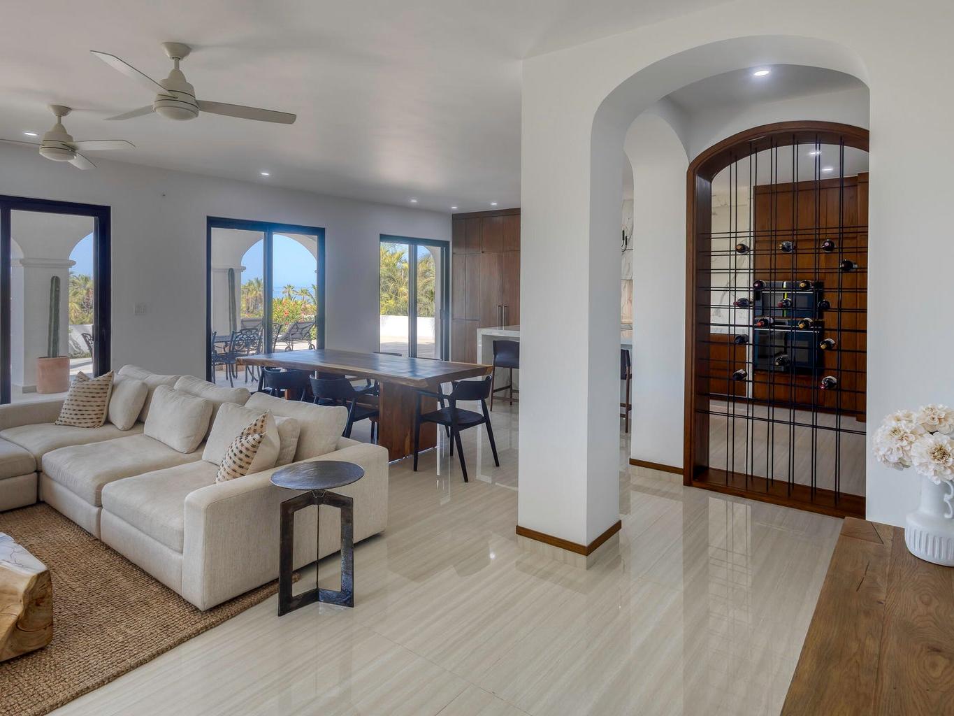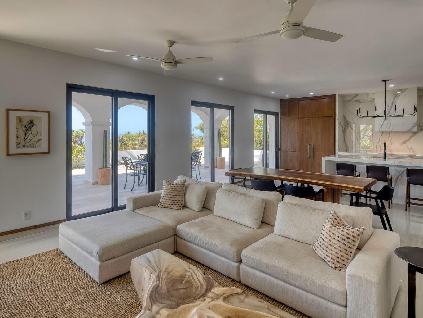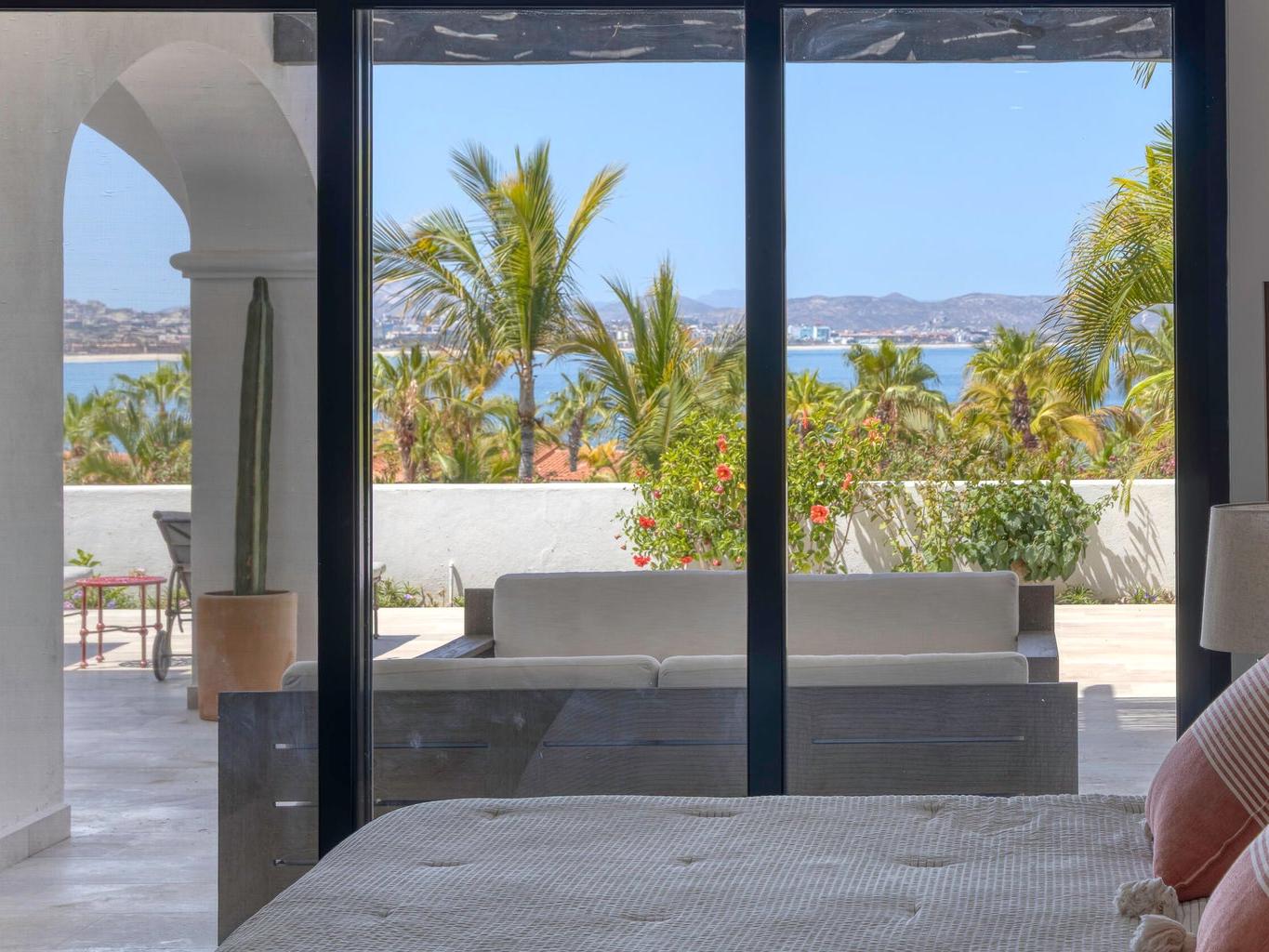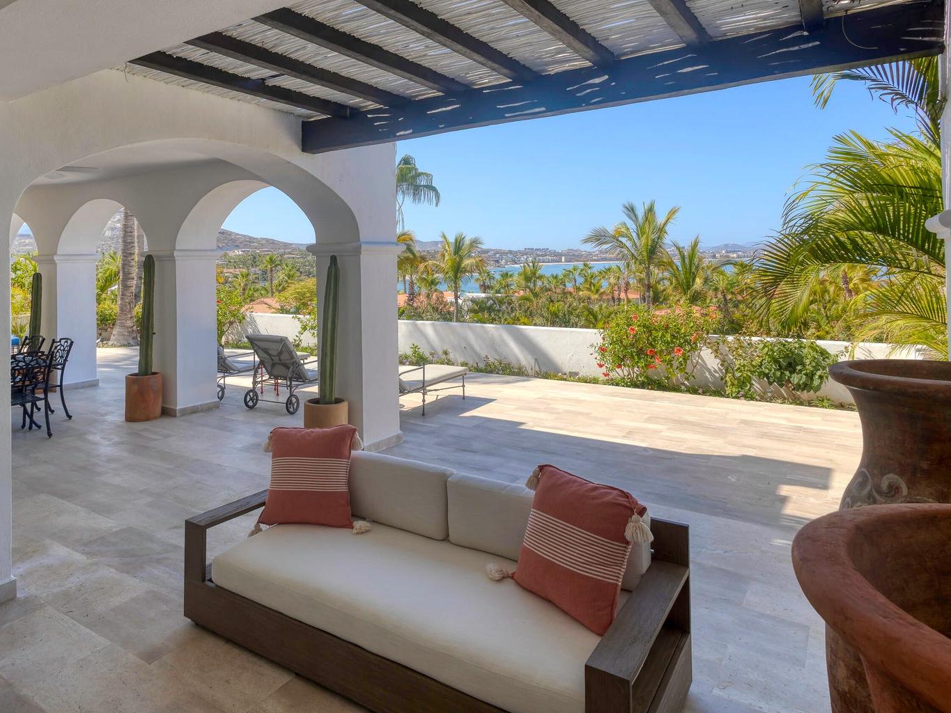 Iconic Palmilla Bay ocean and mountain views from this newly renovated villa. Styled to a high spec and modern palate with attention to detail and comfort being paramount. This three-bedroom, three bath condo is truly sumptuous. An open kitchen living plan overlooks a massive terrace patio with both covered and full sun areas. Third bedroom with a full ensuite bathroom has been seamlessly incorporated for your family and guest comfort. Master suite and bathroom feature an air-conditioned wet room with raised roman bathtub. All this comes with the enviable Palmilla lifestyle a double garage and views sure to please the most discriminating. A full $600,000 renovation has created this sleek modern view home on the ground floor
