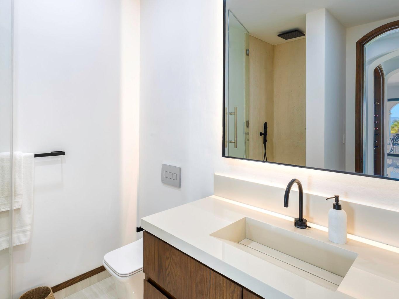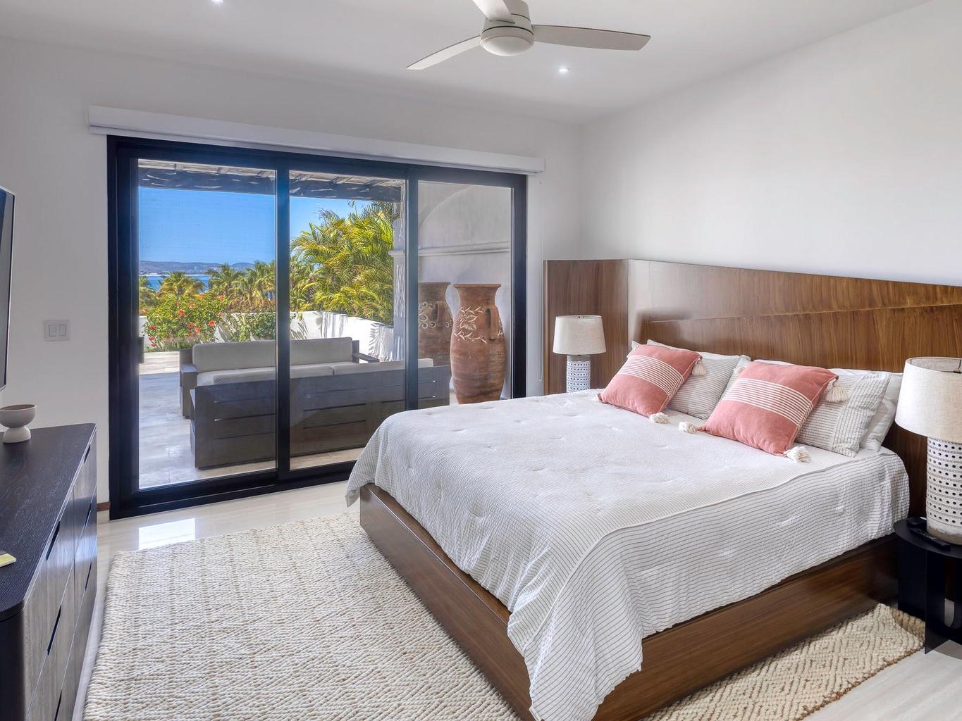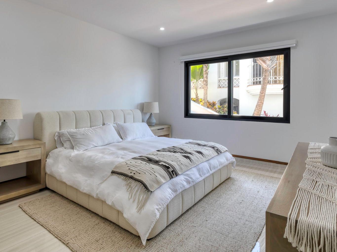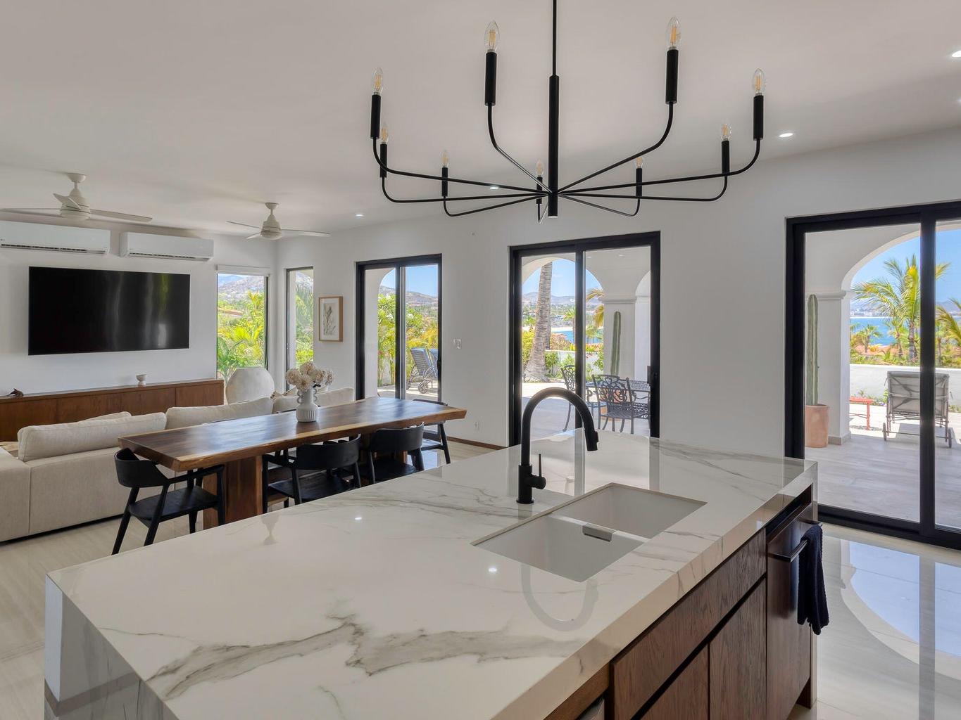 Iconic Palmilla Bay ocean and mountain views from this newly renovated villa. Styled to a high spec and modern palate with attention to detail and comfort being paramount. This three-bedroom, three bath condo is truly sumptuous. An open kitchen living plan overlooks a massive terrace patio with both covered and full sun areas. Third bedroom with a full ensuite bathroom has been seamlessly incorporated for your family and guest comfort. Master suite and bathroom feature an air-conditioned wet room with raised roman bathtub. All this comes with the enviable Palmilla lifestyle a double garage and views sure to please the most discriminating. A full $600,000 renovation has created this sleek modern view home on the ground floor