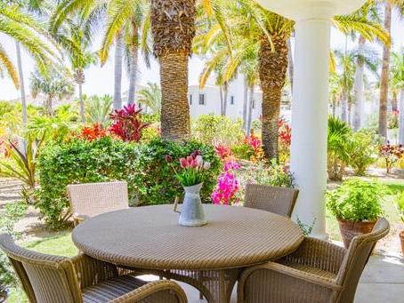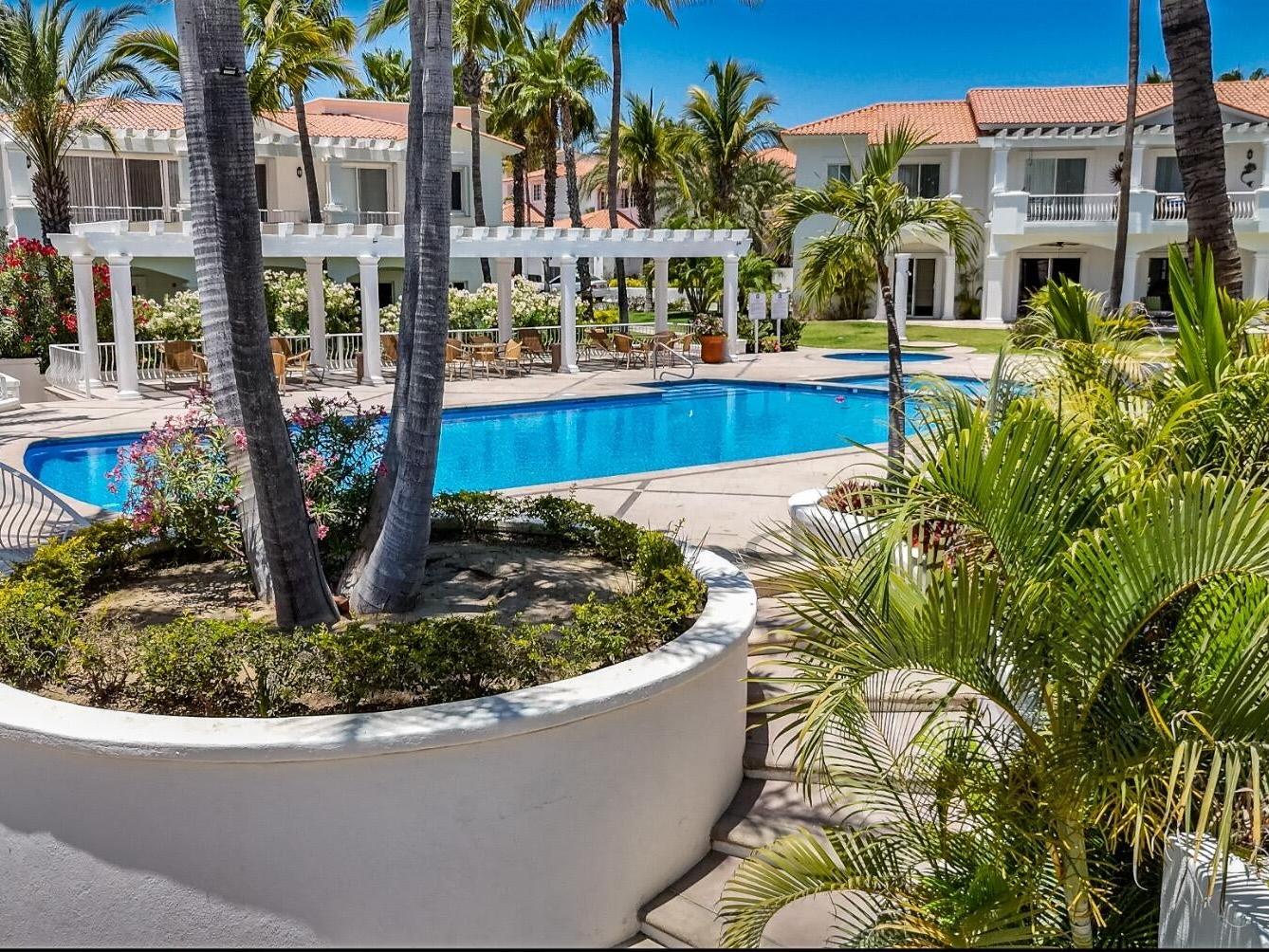 VILLA on a corner lot with a wrap around shaded patio offering a private, lush, tropical oasis that embraces southern Baja´s outdoor living. A 2BD/ 2BA with enclosed GARAGE has the best location, close to the swimming pool & spa. A bright modern kitchen with granite countertops, custom cabinetry, s/s GE appliances, Venetian style floor to ceiling wall decor in the living room & principal BD. High ceilings, large indoor outdoor