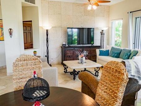( 2300 sq ft. ) floor plan. Fully Furnished. *Rental HIstory. Villas de Oro offers comfortable living for everyone in a gated, guarded community with walking access to the Palmilla´s golf course, swimmable beach, shops & restaurants. Close drive to historic downtown San Jose, marina, the airport & Cabo.
