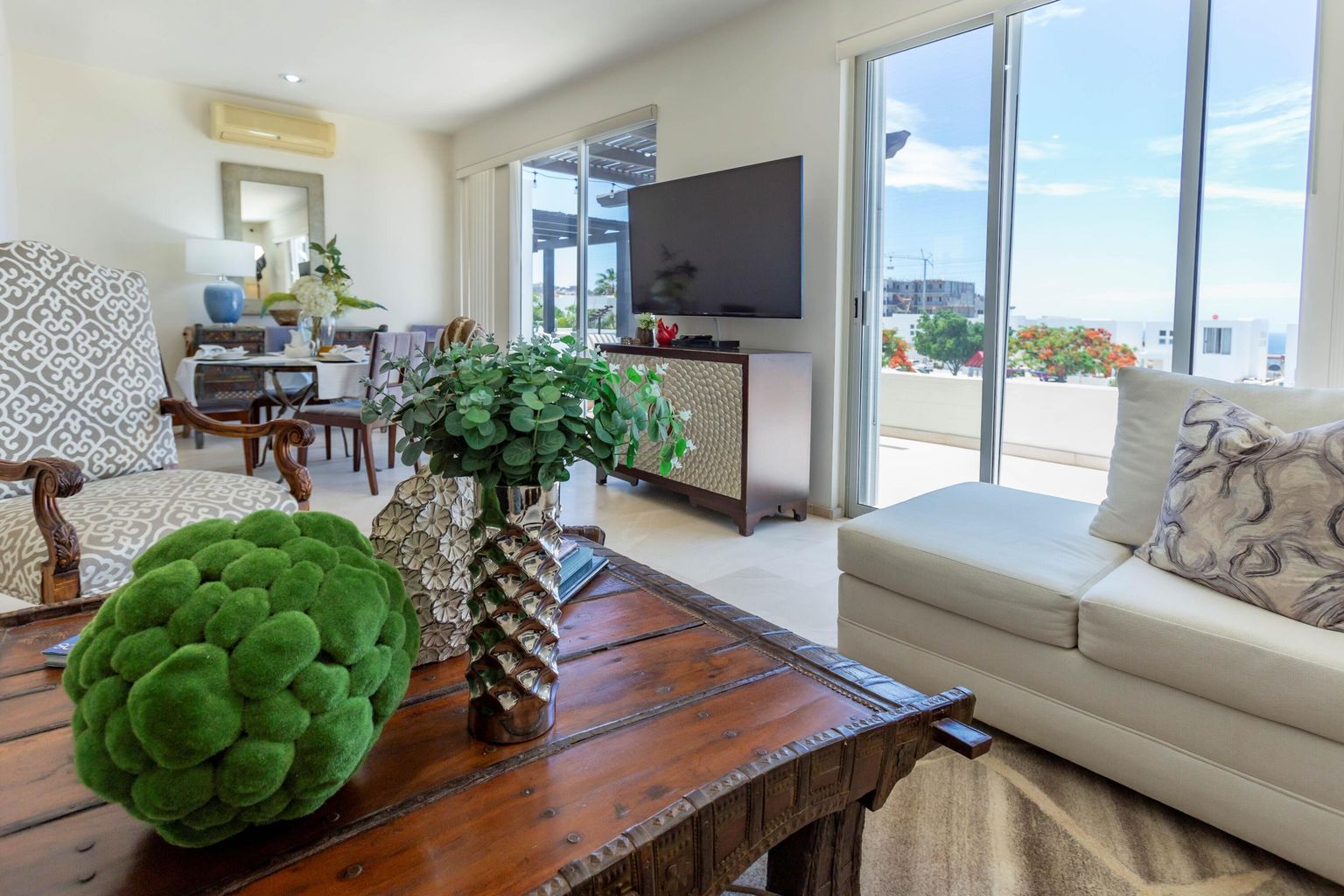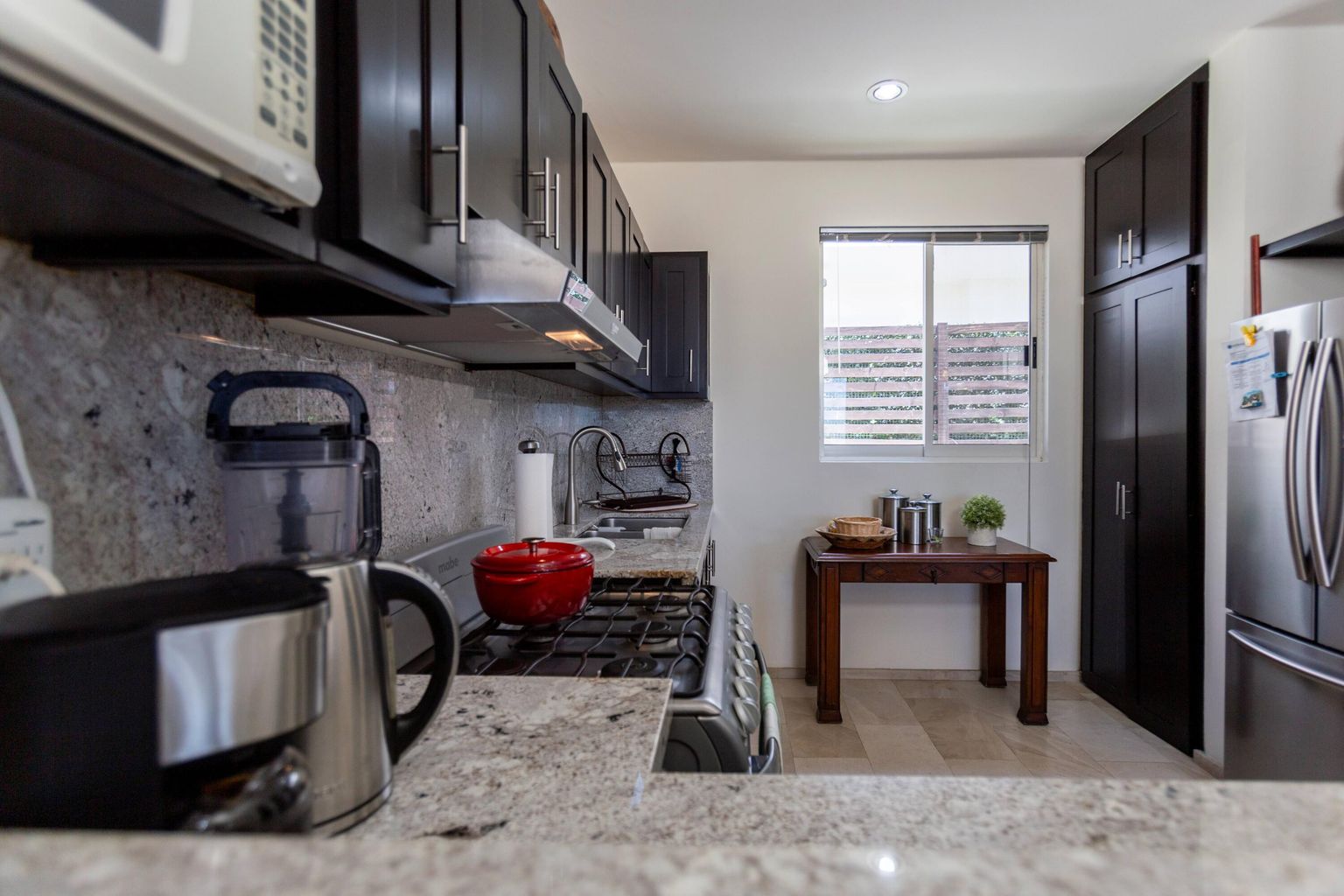 Located in the private community of Antigua, this stylish three-bedroom home offers the perfect blend of comfort and convenience in a premium location. Enjoy ocean views from the terrace and a tastefully decorated living room, creating a warm and inviting atmosphere. The home features newly repolished floors, brand-new appliances, and hurricane shutters. The beautifully landscaped surroundings enhance the charm of this exceptional property. The community offers 24-hour security, a children's playground, and a communal pool, making it ideal for family living. This dog-friendly neighborhood is just moments away from El Mercado and Palmilla shops, providing access to top-notch restaurants, medical facilities, and one of the area's best schools. Don't miss this opportunity.