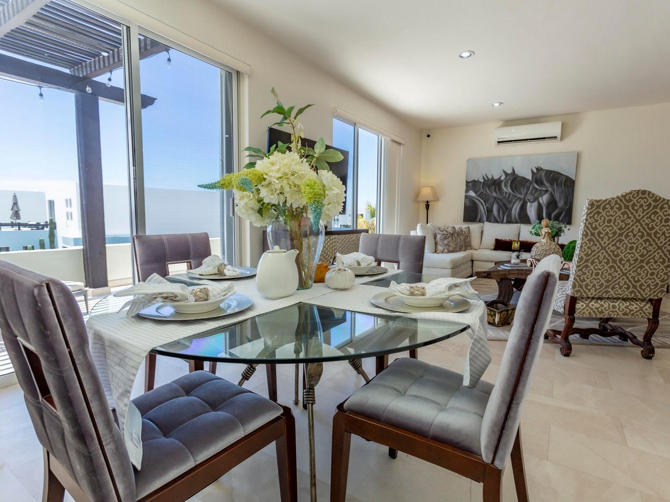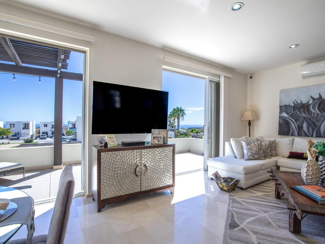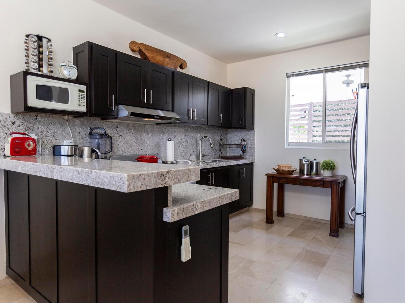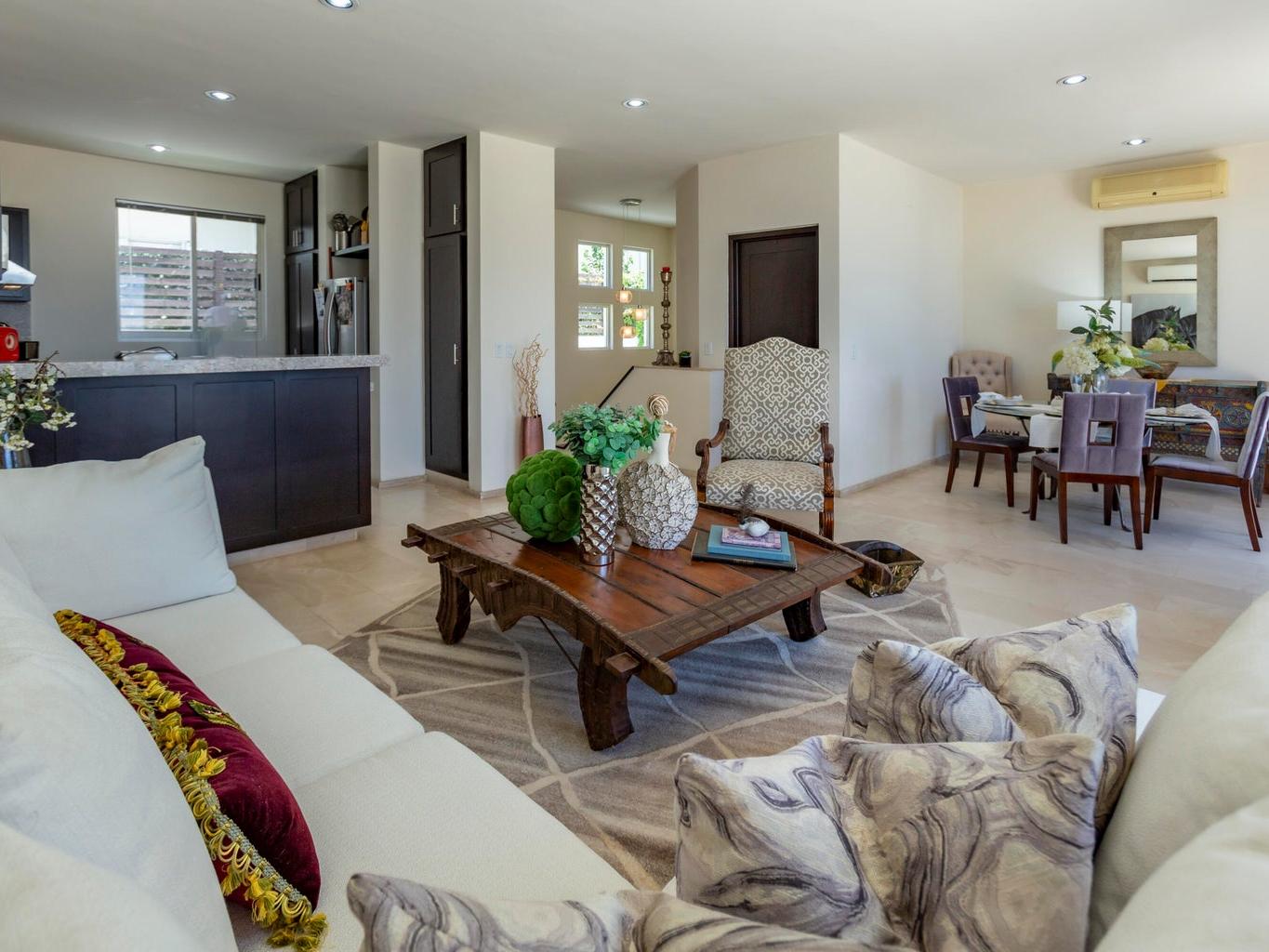 Located in the private community of Antigua, this stylish three-bedroom home offers the perfect blend of comfort and convenience in a premium location. Enjoy ocean views from the terrace and a tastefully decorated living room, creating a warm and inviting atmosphere. The home features newly repolished floors, brand-new appliances, and hurricane shutters. The beautifully landscaped surroundings enhance the charm of this exceptional property. The community offers 24-hour security, a children's playground, and a communal pool, making it ideal for family living. This dog-friendly neighborhood is just moments away from El Mercado and Palmilla shops, providing access to top-notch restaurants, medical facilities, and one of the area's best schools. Don't miss this opportunity.