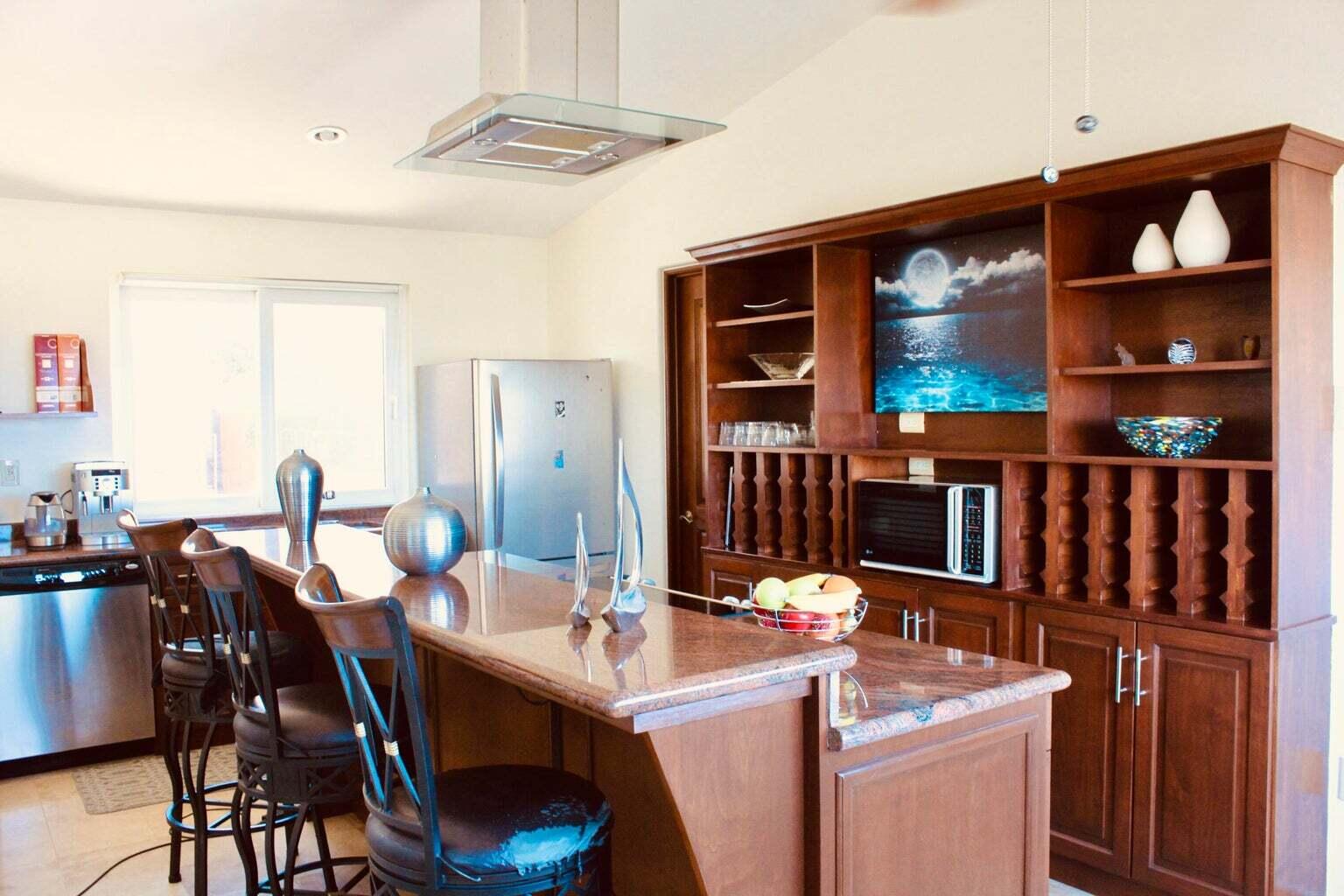 Welcome to this luxury resort style home in the prestigious El Tule neighborhood. The neighborhood is safe, quiet and security gated 24x7 with no contracted HOA fees attached to the house title. You have beautiful clear ocean views from anywhere in the house and clear viewing over Chileno Bay. El Tule is located between San Jose and Cabo San Lucas and both are accessible within 15mins. The house has excellent curb/street appeal and is a high-quality construction inside and out. Marble flooring throughout which includes the balcony and patio, cathedral ceilings, 3 bedrooms have their own bathroom and walk in closet, Main bedroom en suite has a jetted bath. An additional 4th bedroom has its own bathroom and a half bathroom for guests. Two-way opening doubled paned windows.